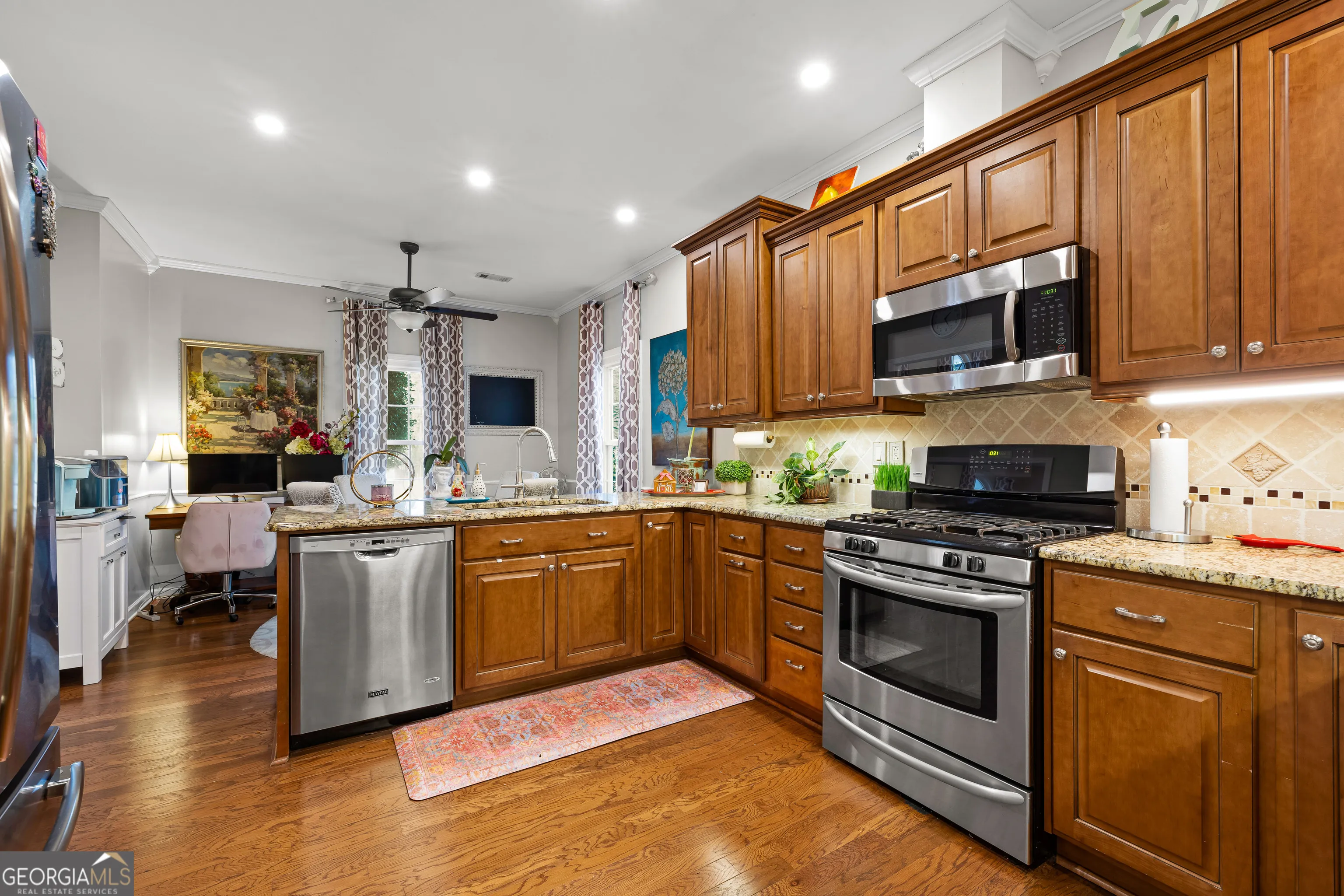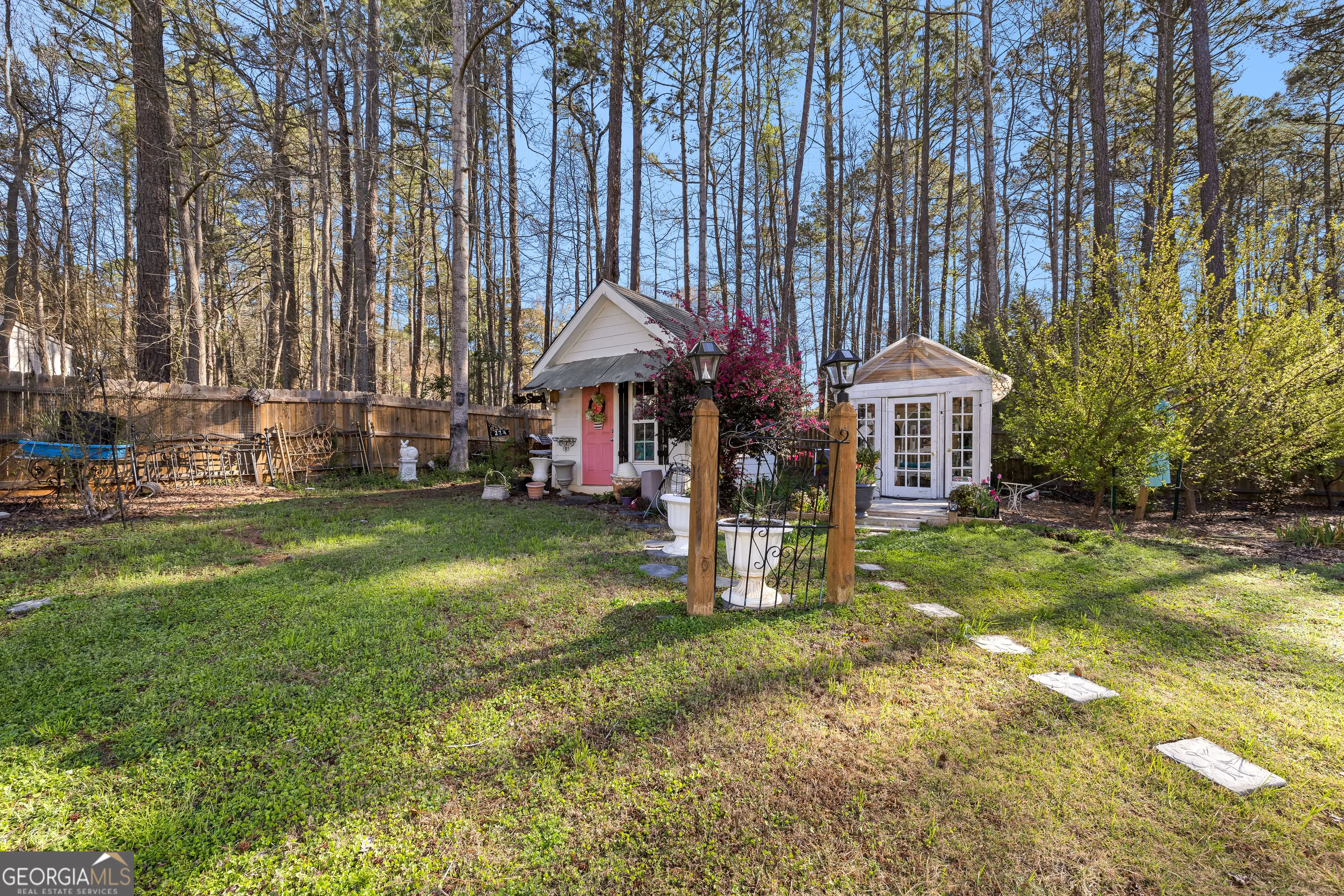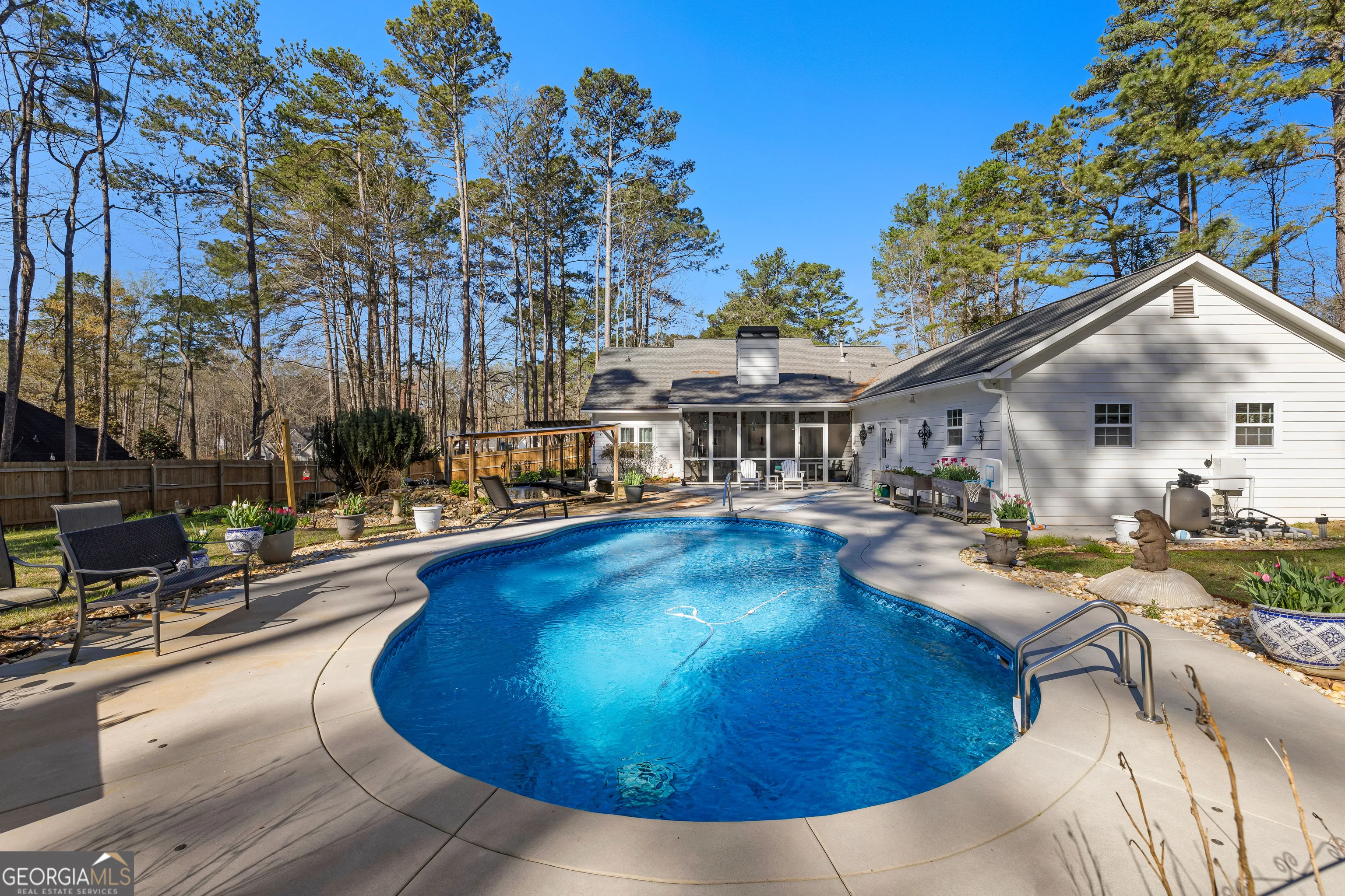 Tucked within the established Indian Bluff community of Sharpsburg, this beautifully maintained ranch home offers the rare combination of comfortable living and a truly extraordinary outdoor retreat. Inside, the thoughtfully designed split-bedroom floor plan offers both openness and privacy across 1,936 square feet of inviting living space. Warm hardwood floors carry through the main living areas, while the family room centers around a gas fireplace, creating a welcoming space to gather and unwind. The kitchen blends function and style with granite countertops, stainless steel appliances, a gas range, and an inviting eat in breakfast area, while a separate dining room provides the perfect setting for more formal gatherings and celebrations or use the space for a home office. The primary suite is a spacious and relaxing retreat featuring double vanities, a soaking tub, separate shower, and a walk-in closet designed for everyday comfort. Two additional generously sized bedrooms share a full bath and offer flexibility for guests or family.. It is outdoors where this property truly becomes something special. Just beyond the screened porch lies a private, secret garden oasis designed for both relaxation and beauty. The landscaped backyard features a sparkling in-ground swimming pool and a stunning 4,000-gallon koi pond filled with more than 30 mature koi fish, creating a peaceful setting that feels worlds away from the pace of everyday life. Surrounding the pond and pool are blooming flowers, lush plantings, and quiet spaces to enjoy nature. A mini greenhouse and charming she-shed add both character and versatility to the space. Additional highlights include a rare 3-car garage and the freedom of no HOA, with only a small annual fee supporting neighborhood street lighting. Residents of Indian Bluff enjoy quiet streets perfect for evening walks, all while being conveniently located just minutes from the interstate, shopping, and local dining. This is more than a home, it is a place to slow down, recharge, and enjoy the beauty of your own private retreat.