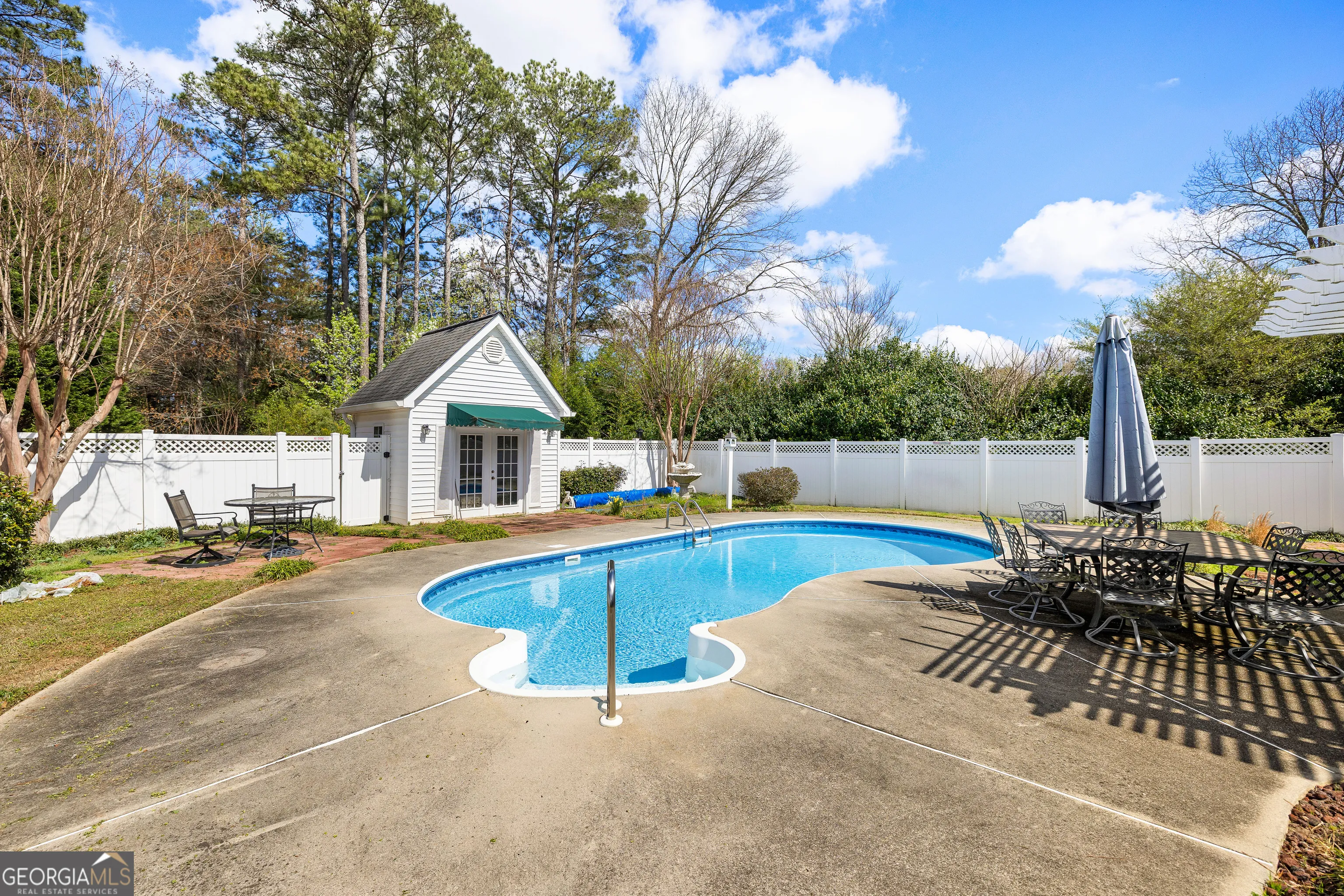 Custom-built home in a desirable 55+ community offering easy main-level living with 3 bedrooms and 2 full baths on the main floor, plus a spacious bonus room upstairs perfect for an office, hobby room, or guest space. Hardwood flooring runs throughout the main living areas, creating a warm and inviting feel. Enjoy relaxing on the screened-in back porch overlooking a well-maintained saltwater pool and private backyard. The property also features a pool house with electricity, ideal for storage or a workshop. Conveniently located near shopping, dining, and Piedmont Fayette Hospital, this home offers comfort, convenience, and low-maintenance living in an active adult community.