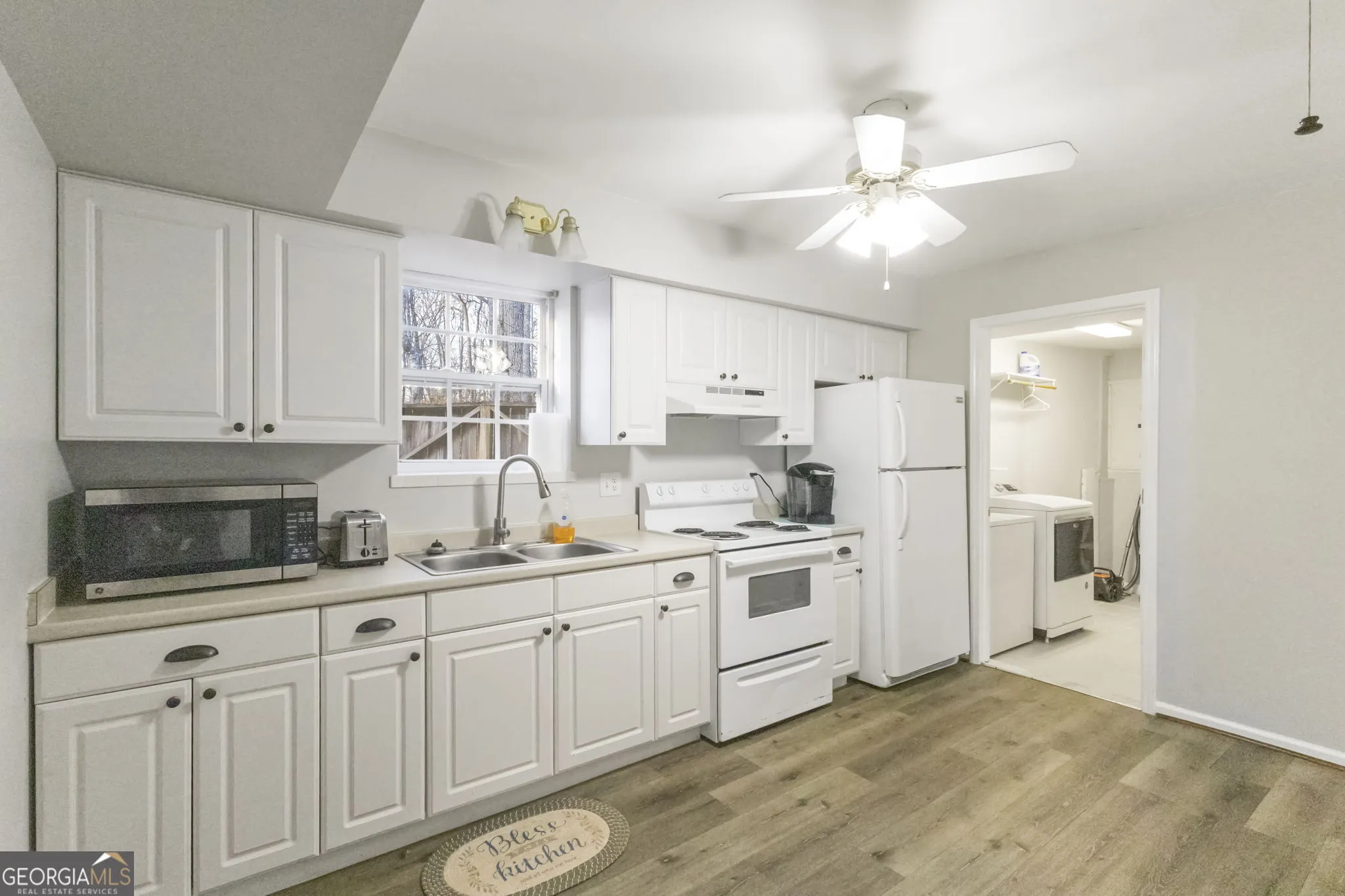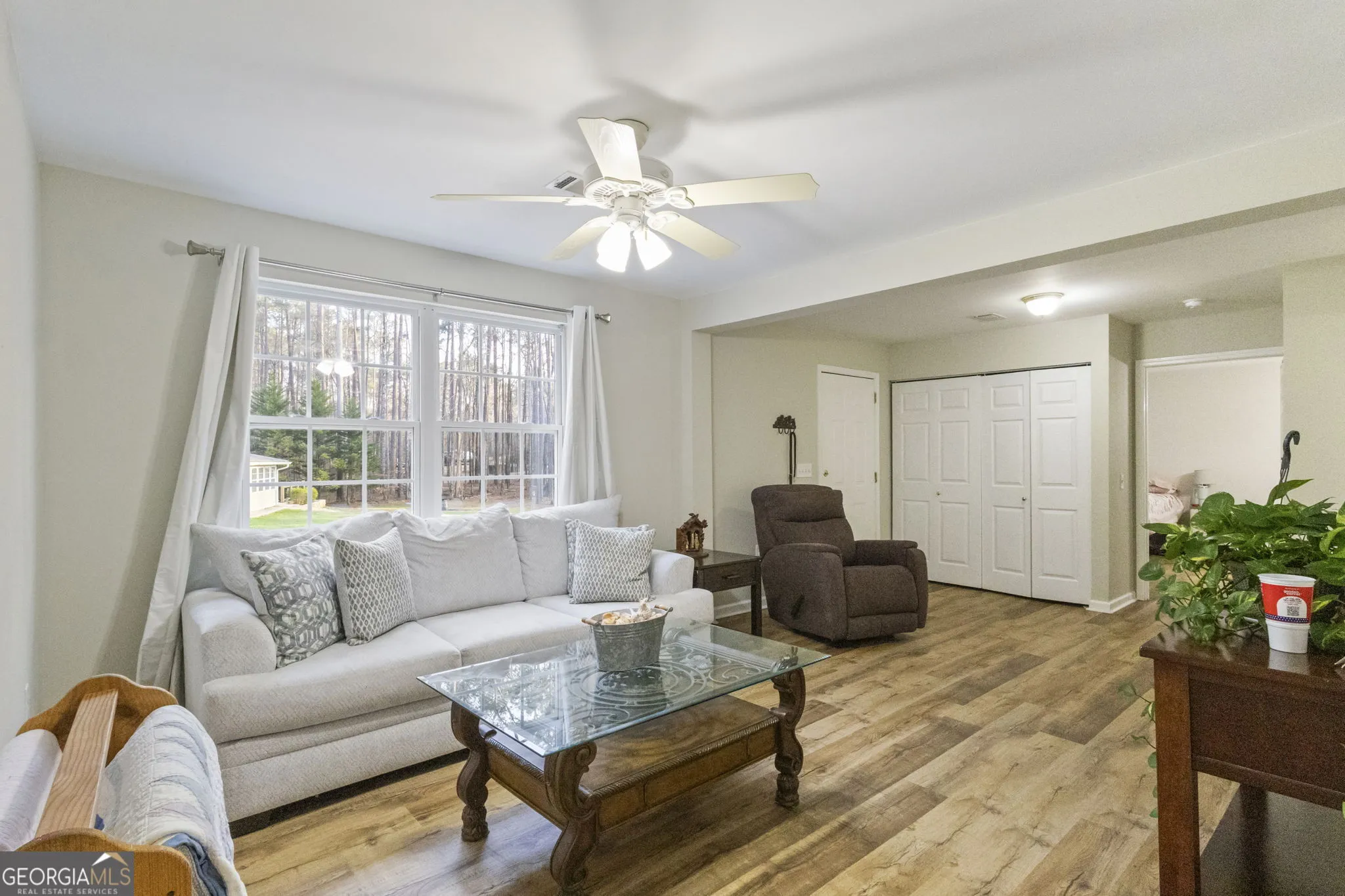 **$25k seller concession available for the in-law/secondary home** Tucked away on nearly 4 private acres in Sharpsburg, this unique property offers two homes, a large workshop, and endless possibilities-all just 5 minutes from Peachtree City and 10 minutes from Newnan. A horseshoe driveway welcomes you to the main home, where recent updates and thoughtful features create a warm, functional living space. Inside the two-story main home, you’ll find high ceilings, built-in bookcases, and a cozy gas-log fireplace that anchors the living area. The country-style kitchen offers a breakfast area, solid surface counters, walk-in pantry, and stainless steel appliances-perfect for everyday living and entertaining. A bright sunroom on the main level provides a peaceful space to relax, along with a convenient half bath. Upstairs features 4 bedrooms and 2 full baths, including a spacious primary suite with double vanity and walk-in closets, plus a bonus/laundry room for added flexibility. Recent improvements include new flooring on the main level, plantation shutters, new HVAC, new gutters, and updated ceiling fans. Step outside to enjoy the private setting from the deck or patio, with plenty of room to spread out, garden, or simply enjoy the quiet surroundings. The property also includes a separate guest or in-law home, complete with 2 bedrooms, 1 bath, living room, eat-in kitchen, laundry area, and fenced backyard-ideal for multi-generational living, guest quarters, or potential rental income. For hobbyists, entrepreneurs, or anyone needing extra space, the large workshop and additional garage space provide incredible versatility for projects, storage, or a home-based business. With two homes, multiple outbuildings, and nearly four acres of privacy, this property offers the rare opportunity to enjoy space, flexibility, and convenience all in one.