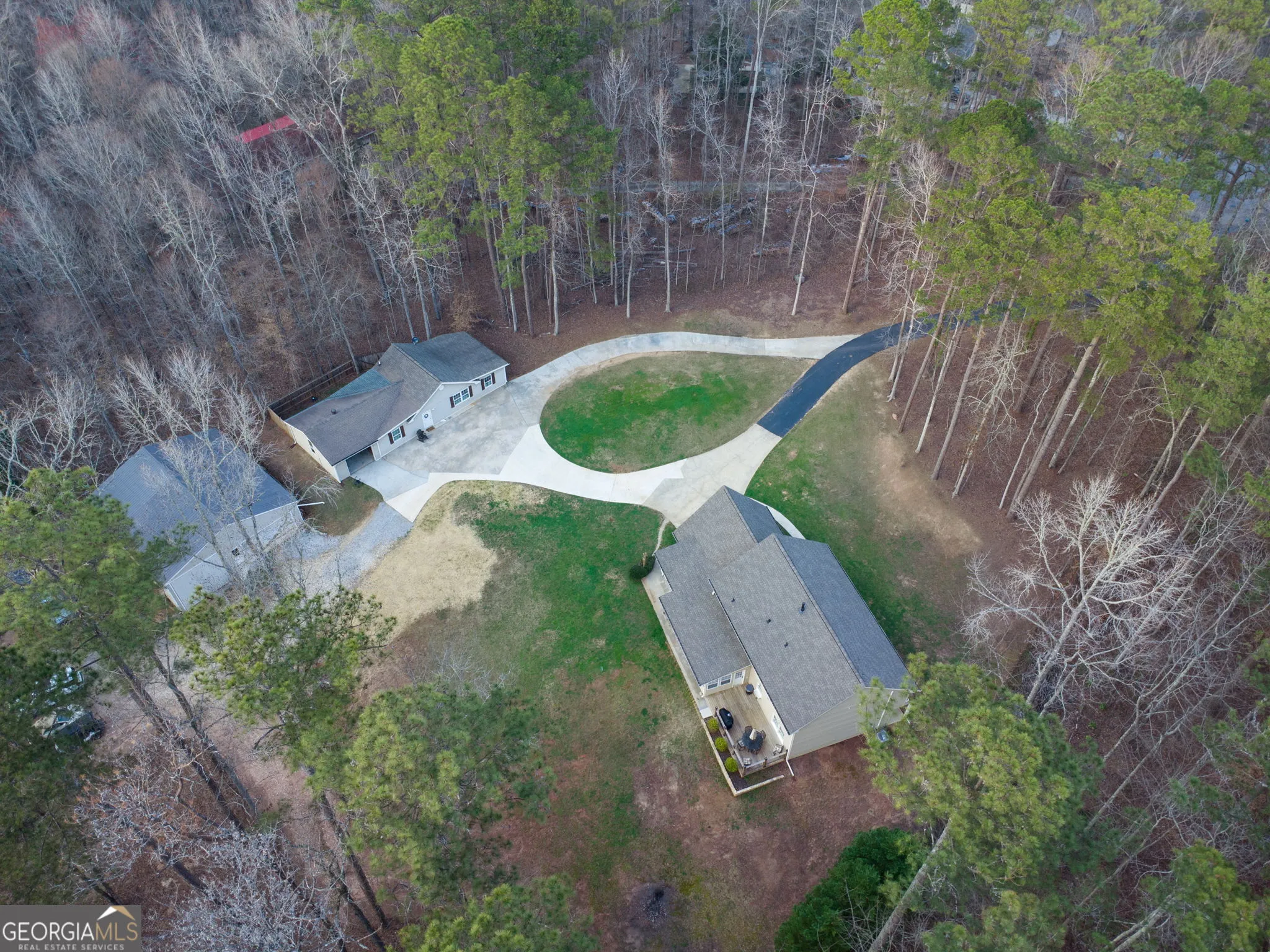 **$25k seller concession available for the in-law/secondary home** Tucked away on nearly 4 private acres in Sharpsburg, this unique property offers two homes, a large workshop, and endless possibilities-all just 5 minutes from Peachtree City and 10 minutes from Newnan. A horseshoe driveway welcomes you to the main home, where recent updates and thoughtful features create a warm, functional living space. Inside the two-story main home, you’ll find high ceilings, built-in bookcases, and a cozy gas-log fireplace that anchors the living area. The country-style kitchen offers a breakfast area, solid surface counters, walk-in pantry, and stainless steel appliances-perfect for everyday living and entertaining. A bright sunroom on the main level provides a peaceful space to relax, along with a convenient half bath. Upstairs features 4 bedrooms and 2 full baths, including a spacious primary suite with double vanity and walk-in closets, plus a bonus/laundry room for added flexibility. Recent improvements include new flooring on the main level, plantation shutters, new HVAC, new gutters, and updated ceiling fans. Step outside to enjoy the private setting from the deck or patio, with plenty of room to spread out, garden, or simply enjoy the quiet surroundings. The property also includes a separate guest or in-law home, complete with 2 bedrooms, 1 bath, living room, eat-in kitchen, laundry area, and fenced backyard-ideal for multi-generational living, guest quarters, or potential rental income. For hobbyists, entrepreneurs, or anyone needing extra space, the large workshop and additional garage space provide incredible versatility for projects, storage, or a home-based business. With two homes, multiple outbuildings, and nearly four acres of privacy, this property offers the rare opportunity to enjoy space, flexibility, and convenience all in one.
