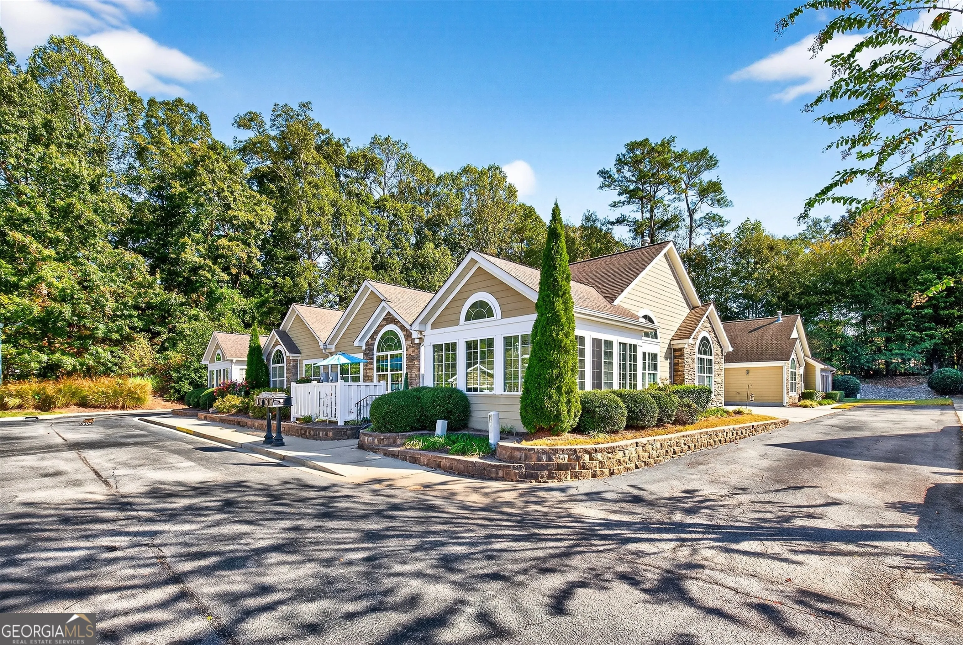 Welcome to this beautifully maintained 2-bedroom home with multiple flex spaces, located in the Villas of Gingercake 55+ active adult community. A charming front patio beside the entry offers a warm welcome and the perfect spot to relax outdoors. Inside, the living room features tall ceilings, rich hardwood floors, and a cozy fireplace, creating an inviting central gathering space. Just off the living room, you’ll find a private office with double doors along with an all-season sunroom. The dining room flows into the kitchen, which is equipped with granite countertops, tile backsplash, stainless steel appliances, and plenty of cabinetry. A built-in desk area in the hallway adds convenience before leading to the laundry room complete with a utility sink. The primary suite offers vaulted ceilings, a walk-in closet, and an en suite bathroom with dual sinks and a walk-in shower. A guest bedroom is paired with an updated bathroom featuring a stylish tile shower. Residents enjoy access to fantastic community amenities including a pool, clubhouse, and fitness center. Southeast Mortgage is our preferred lender. If buyer chooses to work with them, Southeast Mortgage will provide 1% credit up to $5,000. Reach out to the listing agent for more information.