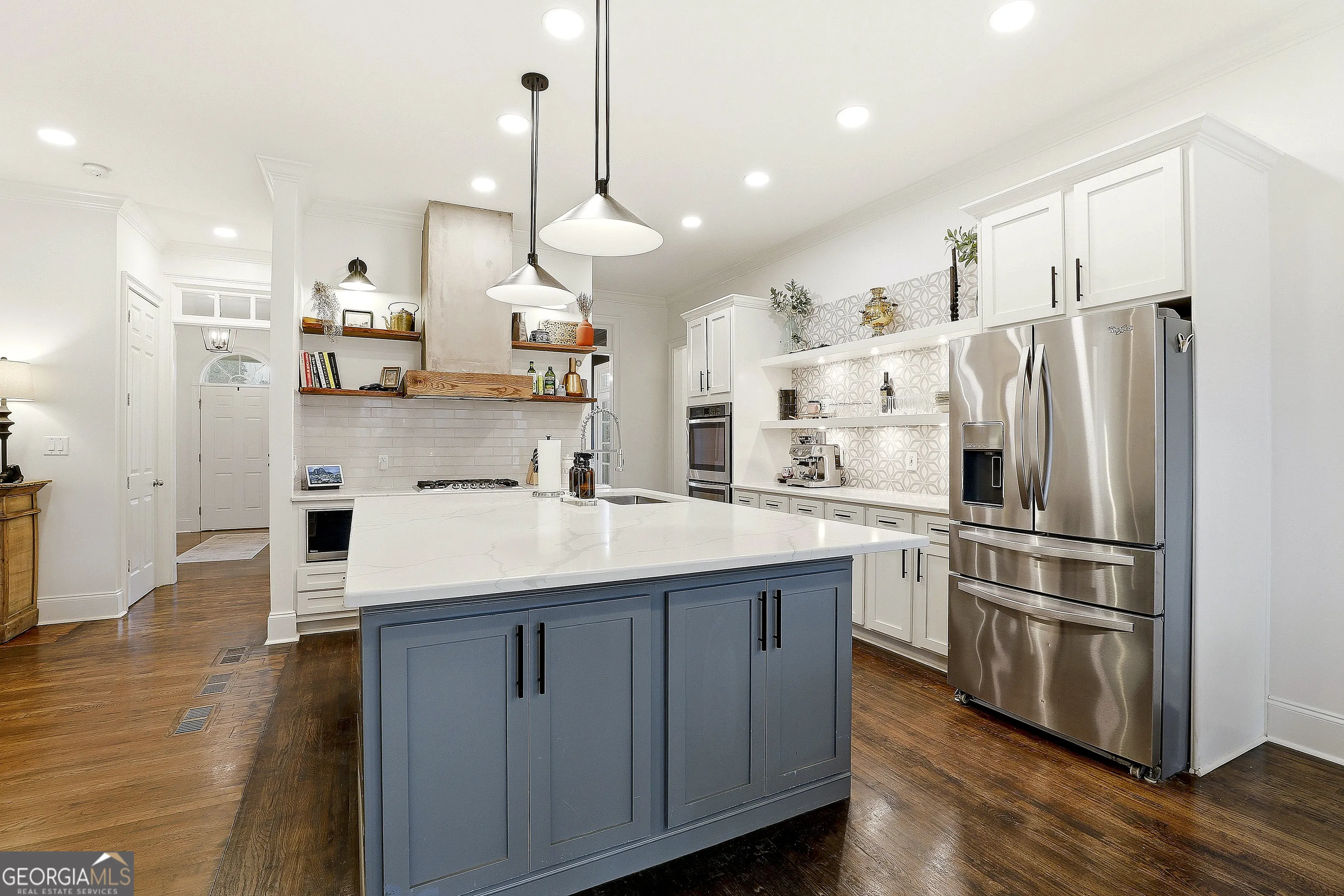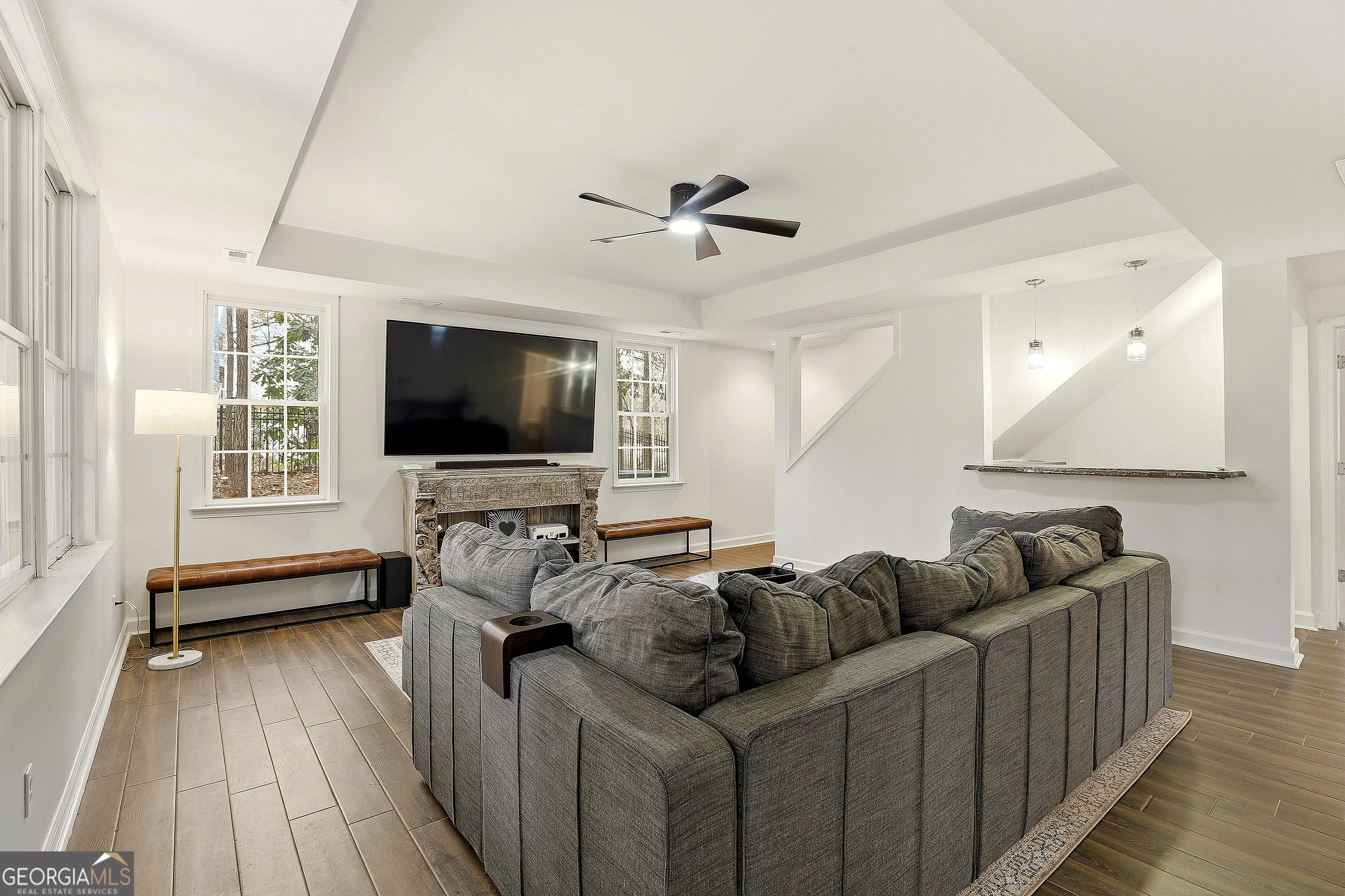 Welcome to this beautifully upgraded 4 bedroom, 4.5 bath home in Highgrove, situated on a rare double lot with a fully finished basement and exceptional outdoor space. From the moment you arrive, the circular driveway and additional side driveway leading to the 3-car garage offer both convenience and impressive curb appeal. Step into the welcoming foyer, where you’ll find a formal dining room and formal living room. The heart of the home is the spacious living room featuring a brick fireplace, opening to the chef’s kitchen. The kitchen showcases an oversized island with bar seating, detailed tile backsplash with exposed shelving, and an inviting eat-in dining area overlooking the backyard. There is also a convenient and fully remodeled half bath and recently updated laundry room with built-in shelving from a secondary front entry. The primary suite has tray ceilings and a luxurious en suite bath featuring dual sinks, a soaking tub, glass walk-in shower, and spacious walk-in closet. One guest bedroom includes its own private en suite bath, while two additional bedrooms share a well-appointed bathroom with dual sinks. A large bonus room offers flexibility for a fifth bedroom, media room, or home office. The entire upstairs has been updated with new LVP flooring. The finished basement expands your living space with a large living area featuring tray ceilings, a bar, a full bathroom, and an oversized flex room with access to the front patio, and an unfinished area with a sauna. Out back, enjoy a covered deck overlooking the expansive, flat backyard with plenty of room to design your dream pool oasis. Other recent upgrades include new light fixtures and paint throughout the home, new LVP flooring upstairs, new HVAC system for the upstairs as well as a newer roof. Located in the sought-after Highgrove community with amenities including a pool, tennis courts, playground, and fitness center. Southeast Mortgage is our preferred lender. If buyer chooses to work with them, Southeast Mortgage will provide 1% credit up to $5,000. Reach out to the listing agent for more information.
