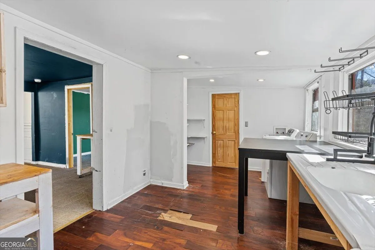 Discover a rare opportunity to own 6.3 beautiful, partially wooded acres in sought-after North Fayette featuring two homes and endless potential. Held in the same family for over 60 years, this unique property offers the perfect blend of character, flexibility, and future opportunity. Situated on two corner lots just one parcel off the high-visibility intersection of GA Hwy 138 and Hwy 314, and consisting of two parcels being sold together, the setting provides both privacy and excellent road frontage with strong visibility for possible future commercial consideration. The main residence, approximately 1,700 square feet, offers four bedrooms and two bathrooms with timeless mid-century touches including classic Pickwick paneling and original pine hardwood floors (currently beneath laminate in some rooms). The spacious kitchen features stainless steel appliances and ample cabinetry and countertop space, while the inviting den showcases a wood-burning fireplace, creating a warm and welcoming gathering space. A charming laundry room and mudroom serve as a functional bonus area overlooking the private, fenced backyard. Outdoors, enjoy a generous patio perfect for entertaining or relaxing evenings under the stars. A charming paver walkway leads to a second patio area, an ideal spot for roasting marshmallows around a cozy evening fire or create the perfect backyard BBQ setup. The main home also features a new water heater for added peace of mind. In addition to the main home, a separate 2-bedroom, 1-bath cottage of approximately 816 square feet provides exceptional versatility, ideal for an in-law suite, multi-generational living, guest quarters, or an income-producing rental. The cottage features a charming kitchen with engineered hardwood floors and an original farmhouse sink that adds warmth and character, complete with pantry shelving and stove, along with its own washer and dryer, a new electrical box and exterior meter installed in 2025, and a private gravel driveway for convenient, separate access. Each home is serviced by its own septic system. Both residences draw from a natural spring water system that has been in place for over 100 years, faithfully serving the property for generations. An in-ground fire pit enhances the outdoor experience, and additional features include a tool shed and an extra storage shed, offering ample space for equipment, hobbies, or storage needs. This property truly offers the best of both worlds: a peaceful rural atmosphere surrounded by nature, yet just minutes from Fayetteville’s charming downtown square and historic streetscapes, providing an easy escape from the big-city bustle of nearby Atlanta. Enjoy the serenity of country living while remaining less than 30 minutes to Downtown Atlanta, approximately 20 minutes to Hartsfield-Jackson Atlanta International Airport, and just 10 minutes from I-85 and I-285 for easy commuting. You’re also only 15 minutes from Trilith Studios, designed for the film and creative industries, this unprecedented community features filmmaking studios, homes, shopping and dining, as well as scenic trails and parks, making this location as convenient as it is inspiring. Whether you envision a private estate, multi-generational retreat, or strategic investment opportunity, this North Fayette property delivers location, flexibility, and long-term potential. All its missing is you!