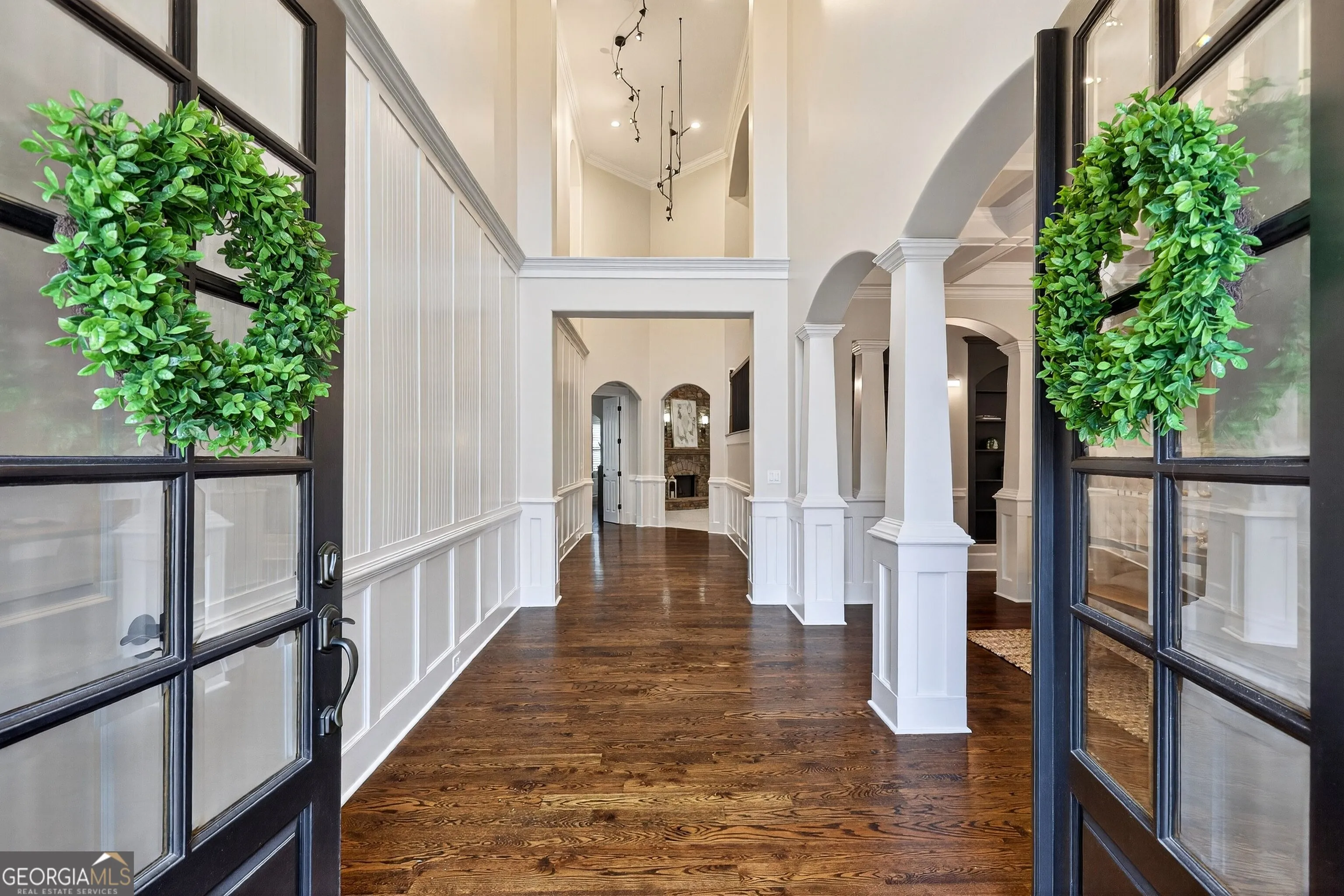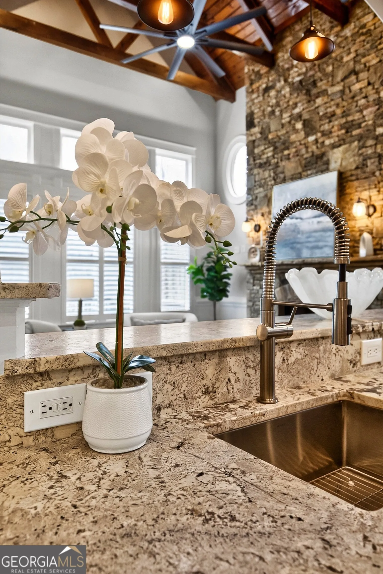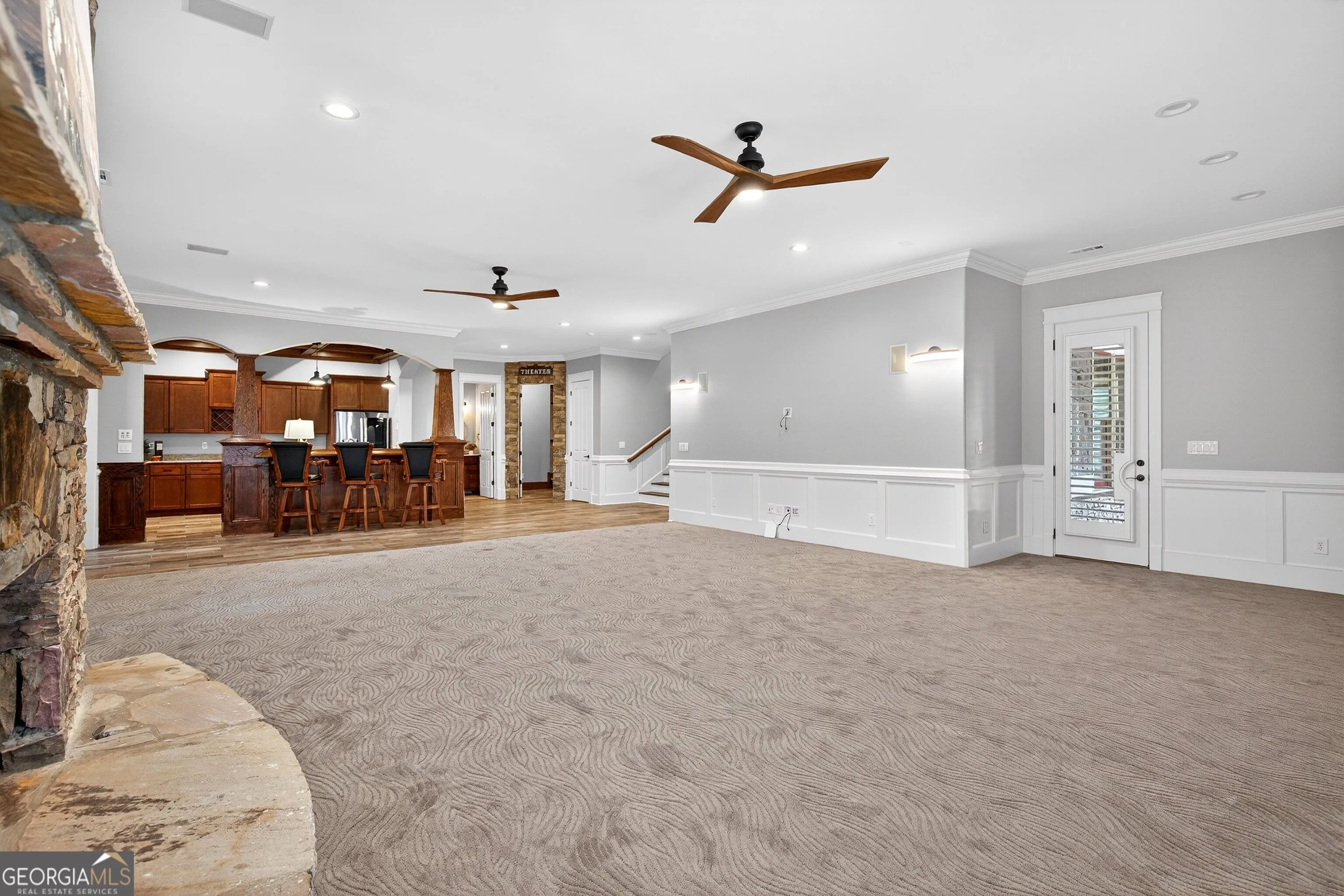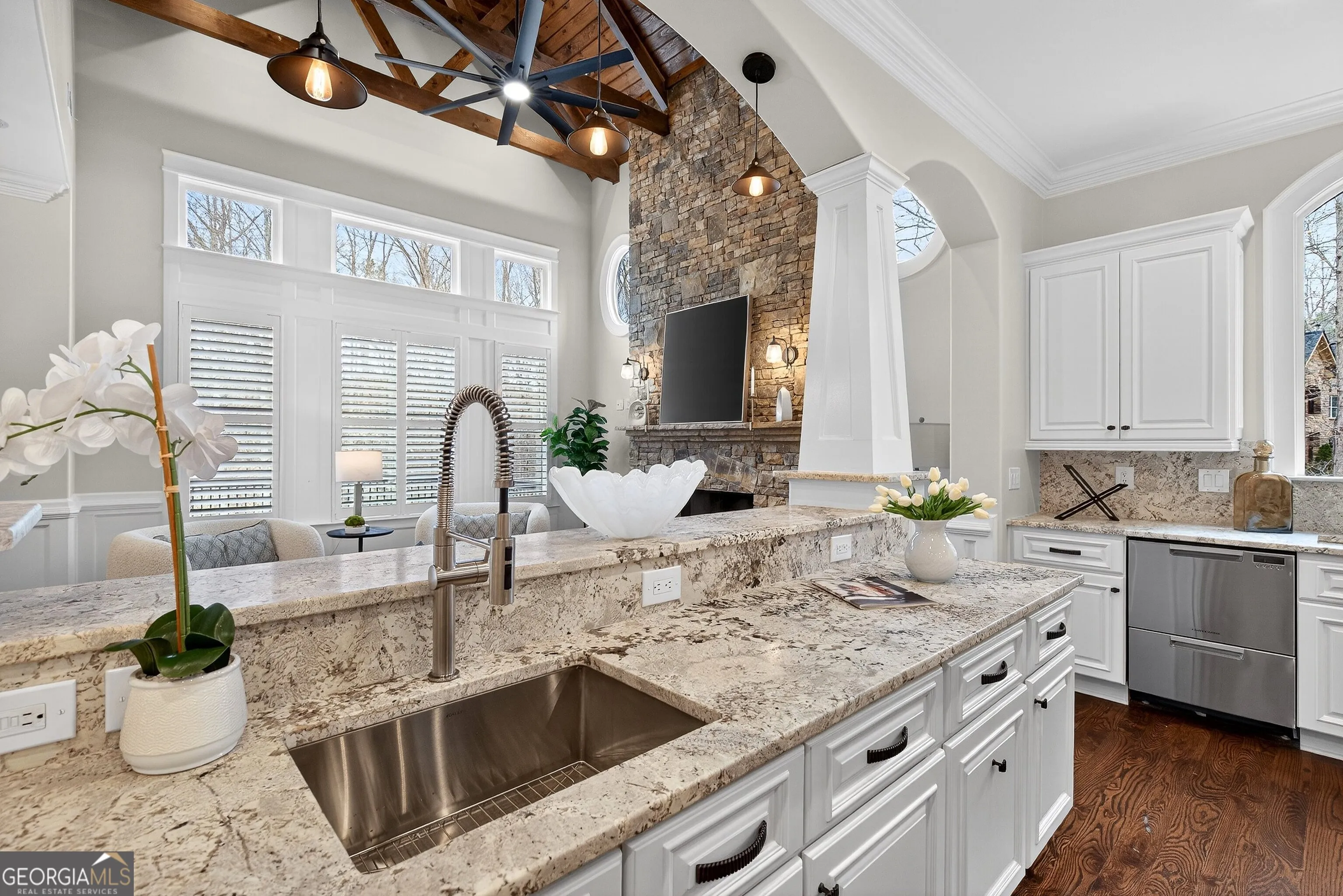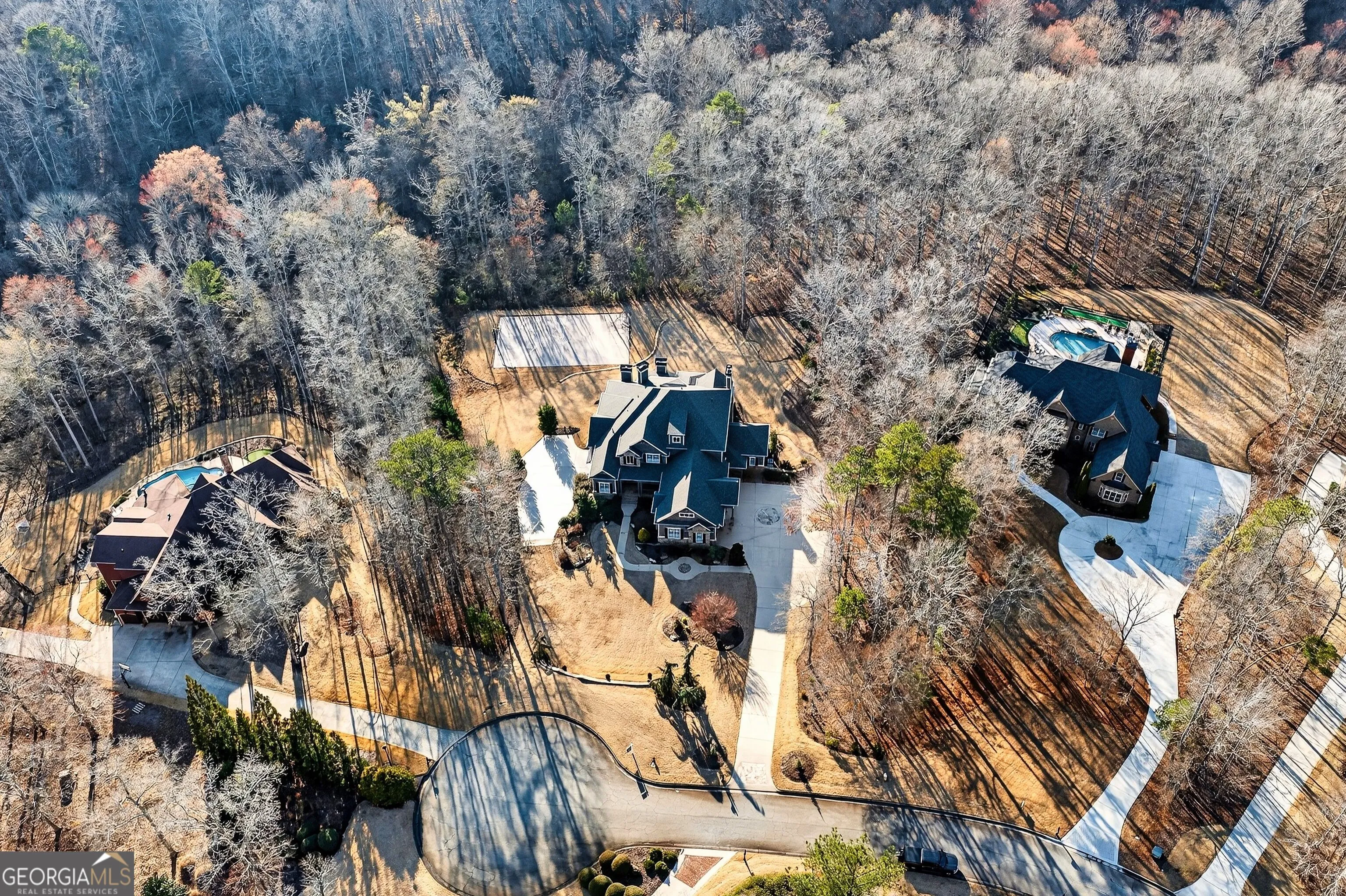 Located in the prestigious golf community in Arbor Springs, this extraordinary estate has been masterfully and extensively reimagined with thoughtful, high-end renovations throughout. Perfectly positioned on a private wooded lot within this sought-after country club setting, the home blends timeless architecture with modern luxury, refined comfort, and exceptional functionality. Every level has been meticulously updated creating a truly turnkey residence designed for elegant living and effortless entertaining. A grand two-story foyer welcomes you with soaring ceilings, abundant natural light, and exquisite architectural detailing. The formal dining room features custom built-ins and elegant trim work, flowing seamlessly into the impressive great room anchored by a dramatic stacked stone fireplace. Just beyond, a bright, and inviting sunroom with stone flooring and its own stone fireplace provides the perfect setting for evening cocktails while enjoying tranquil backyard views. Both spaces open on a covered grilling deck as well as an open-air deck, offering exceptional indoor-outdoor flow for entertaining on any scale. The chef’s kitchen has been beautifully updated and designed to both impress and perform, featuring a professional-grade gas range with pot filler, expansive center island with bar seating, two preparation sinks, abundant cabinetry, and new counter tops. The adjacent keeping room showcases rustic ceiling beams and a cozy stone fireplace, creating an intimate gathering space ideal for morning coffee or relaxed evenings with guests. A thoughtfully redesigned laundry room and scullery on the main level offers built in cabinetry, a second refrigerator, washer and dryer and additional storage , serving as the perfect prep and organization space. The expansive primary suite, located on the main level, serves as a luxurious private retreat complete with intimate sitting room and stone fireplace. The custom-designed closet system is exceptional in both scale and function. The spa-inspired inspired ensuite bath has been fully renovated and features gorgeous vanities, a bar area complete with wine refrigerator, designed tile, soaking tub, and oversized shower with glass enclosure, and refined finishes throughout. Upstairs, a central hallway leads to three generously sized bedrooms, each with its own private ensuite bath, all completely updated. The upper level also includes a built in computer workstation with cabinetry. Step into another light filled bonus room perfect for hobbies or upstairs theatre but that is not it, there is and a second bonus room upstairs above the over sized the three-gar garage. Finished and unfinished knee-wall storage areas provide abundant additional space. All bedrooms feature new carpet, fresh paint, lighting and ceiling fans. The terrace level is designed for elevated entertainment and recreation. A dramatic two-story billiard room with spiral staircase and catwalk overlook , creates a stunning architectural focal point. This level also features a full bar with seating, a secondary kitchen, a dedicated display for awards, books, or memorabilia, a fireside great room, another bedroom with full bath, a FULL home gym, private home theater and an impressive WINE CELLAR. Also downstairs is another garage area perfect for the “toys”. The bright open layout makes this level for hosting gatherings of any size or multi-generational living. Outdoor living is equally as exceptional. Two fully equipped cooking areas with dual 54 inch-Lynx grills and outdoor refrigeration anchoring entertaining spaces. a FULL-SIZE BASKETBALL COURT adds to the lifestyle amenities, while the private wooded backdrop provides serenity and seclusion. An invisible dog fence enhances convenience for pet owners. Extensive recent improvements include a new roof, new gutters, downspouts, and leaf guards, fresh exterior paint, new epoxy garage flooring, in the OVERSIZED three-car garage and four new Carrier HVAC’S