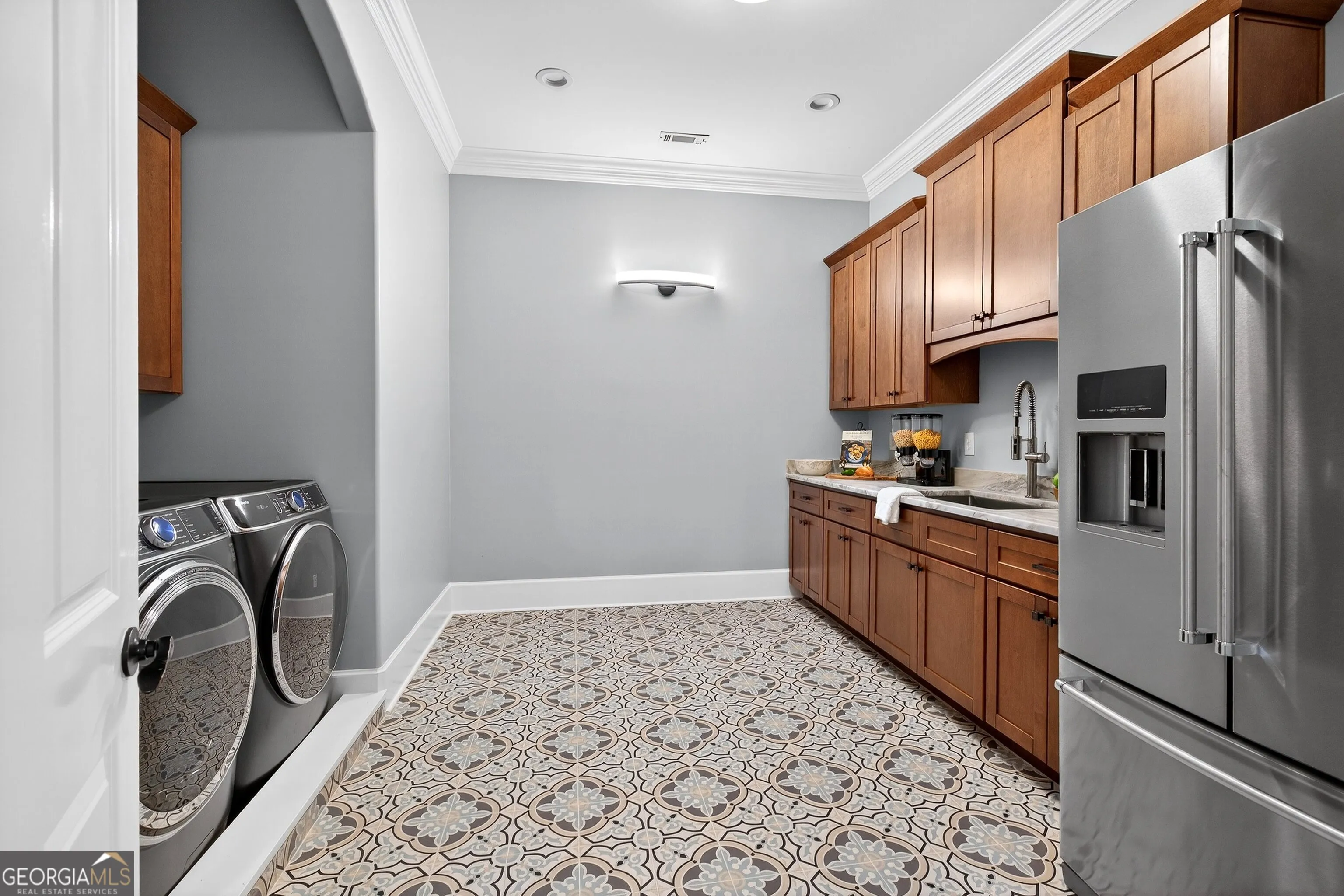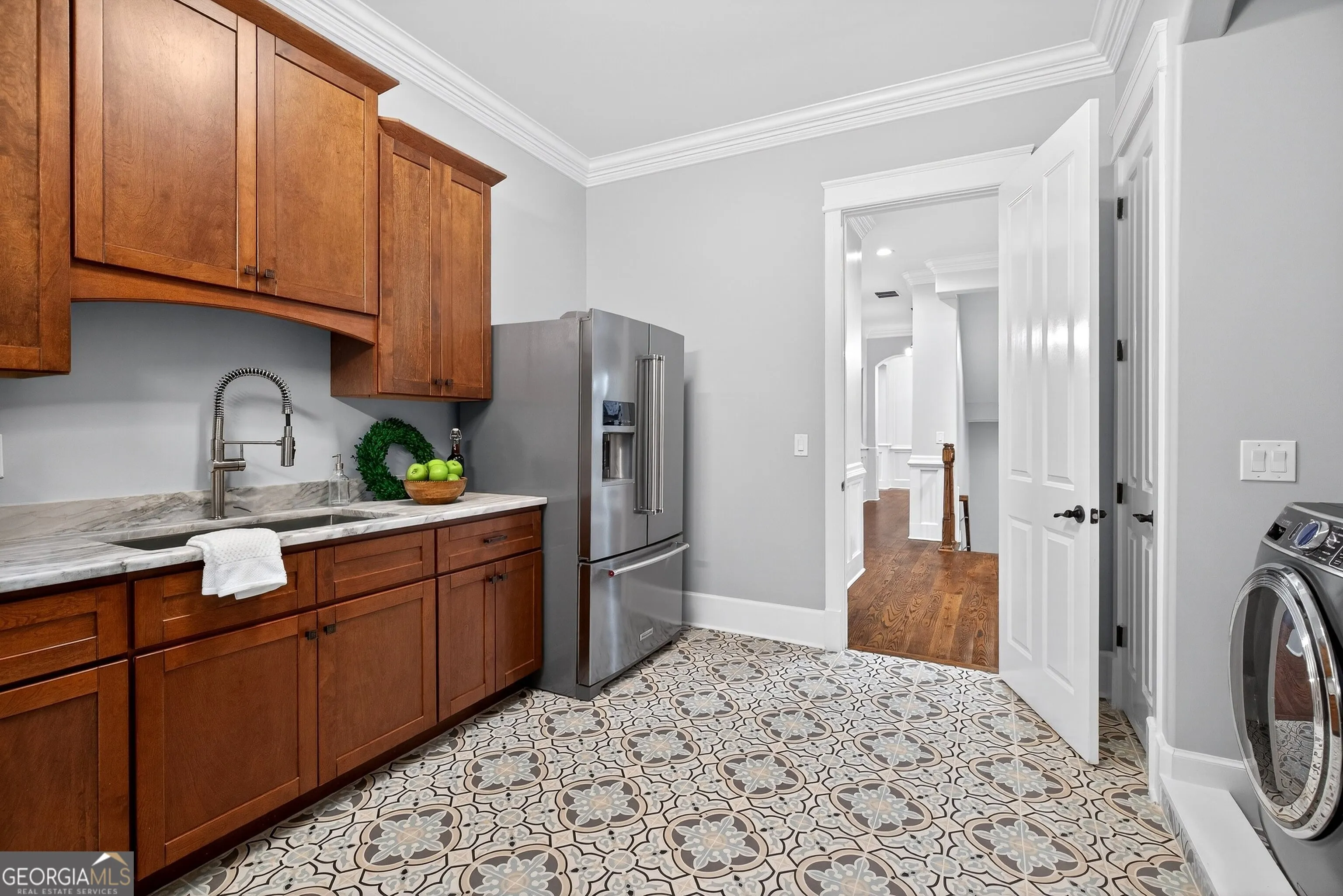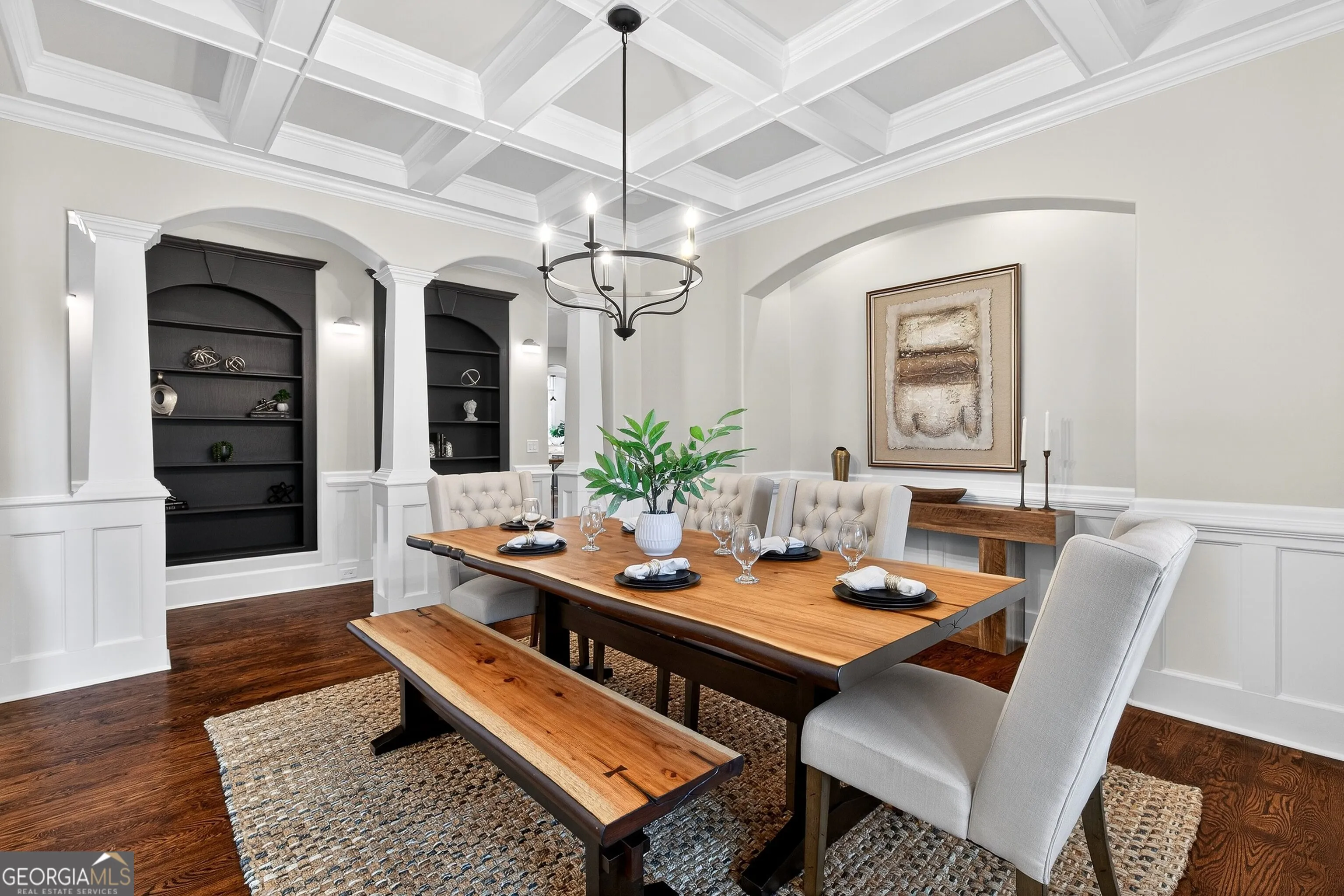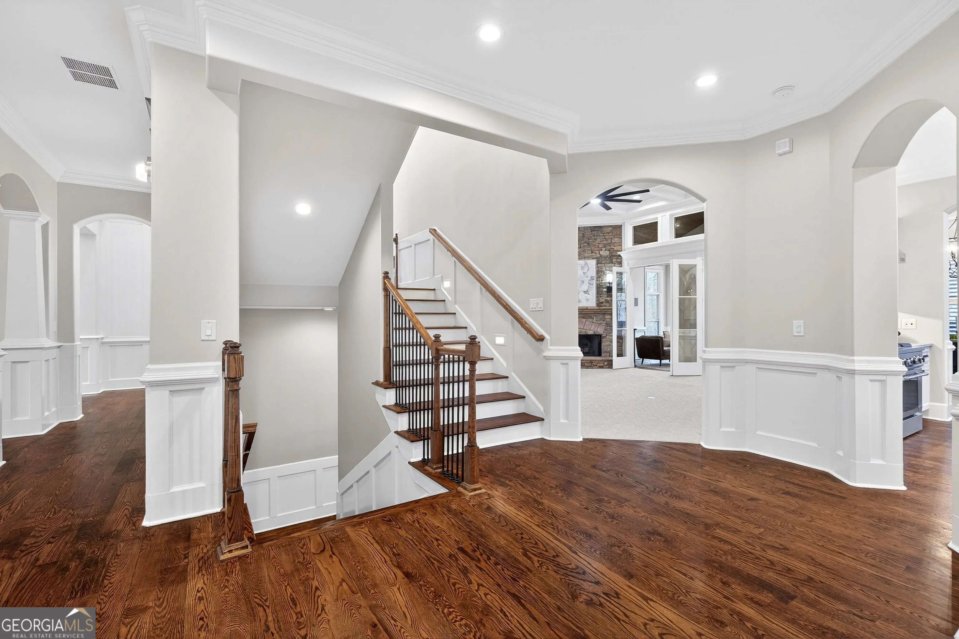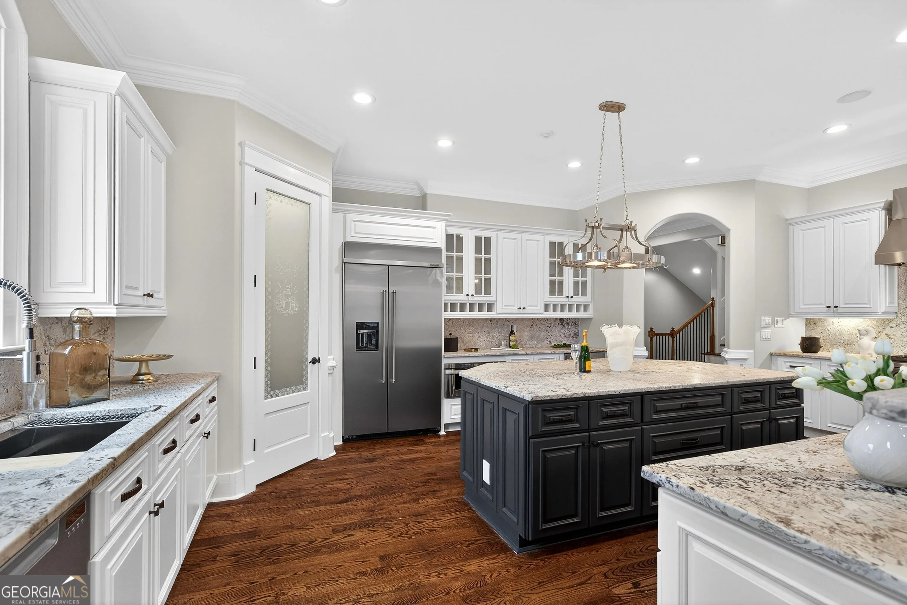 Located in the prestigious golf community in Arbor Springs, this extraordinary estate has been masterfully and extensively reimagined with thoughtful, high-end renovations throughout. Perfectly positioned on a private wooded lot within this sought-after country club setting, the home blends timeless architecture with modern luxury, refined comfort, and exceptional functionality. Every level has been meticulously updated creating a truly turnkey residence designed for elegant living and effortless entertaining. A grand two-story foyer welcomes you with soaring ceilings, abundant natural light, and exquisite architectural detailing. The formal dining room features custom built-ins and elegant trim work, flowing seamlessly into the impressive great room anchored by a dramatic stacked stone fireplace. Just beyond, a bright, and inviting sunroom with stone flooring and its own stone fireplace provides the perfect setting for evening cocktails while enjoying tranquil backyard views. Both spaces open on a covered grilling deck as well as an open-air deck, offering exceptional indoor-outdoor flow for entertaining on any scale. The chef’s kitchen has been beautifully updated and designed to both impress and perform, featuring a professional-grade gas range with pot filler, expansive center island with bar seating, two preparation sinks, abundant cabinetry, and new counter tops. The adjacent keeping room showcases rustic ceiling beams and a cozy stone fireplace, creating an intimate gathering space ideal for morning coffee or relaxed evenings with guests. A thoughtfully redesigned laundry room and scullery on the main level offers built in cabinetry, a second refrigerator, washer and dryer and additional storage , serving as the perfect prep and organization space. The expansive primary suite, located on the main level, serves as a luxurious private retreat complete with intimate sitting room and stone fireplace. The custom-designed closet system is exceptional in both scale and function. The spa-inspired inspired ensuite bath has been fully renovated and features gorgeous vanities, a bar area complete with wine refrigerator, designed tile, soaking tub, and oversized shower with glass enclosure, and refined finishes throughout. Upstairs, a central hallway leads to three generously sized bedrooms, each with its own private ensuite bath, all completely updated. The upper level also includes a built in computer workstation with cabinetry. Step into another light filled bonus room perfect for hobbies or upstairs theatre but that is not it, there is and a second bonus room upstairs above the over sized the three-gar garage. Finished and unfinished knee-wall storage areas provide abundant additional space. All bedrooms feature new carpet, fresh paint, lighting and ceiling fans. The terrace level is designed for elevated entertainment and recreation. A dramatic two-story billiard room with spiral staircase and catwalk overlook , creates a stunning architectural focal point. This level also features a full bar with seating, a secondary kitchen, a dedicated display for awards, books, or memorabilia, a fireside great room, another bedroom with full bath, a FULL home gym, private home theater and an impressive WINE CELLAR. Also downstairs is another garage area perfect for the “toys”. The bright open layout makes this level for hosting gatherings of any size or multi-generational living. Outdoor living is equally as exceptional. Two fully equipped cooking areas with dual 54 inch-Lynx grills and outdoor refrigeration anchoring entertaining spaces. a FULL-SIZE BASKETBALL COURT adds to the lifestyle amenities, while the private wooded backdrop provides serenity and seclusion. An invisible dog fence enhances convenience for pet owners. Extensive recent improvements include a new roof, new gutters, downspouts, and leaf guards, fresh exterior paint, new epoxy garage flooring, in the OVERSIZED three-car garage and four new Carrier HVAC’S