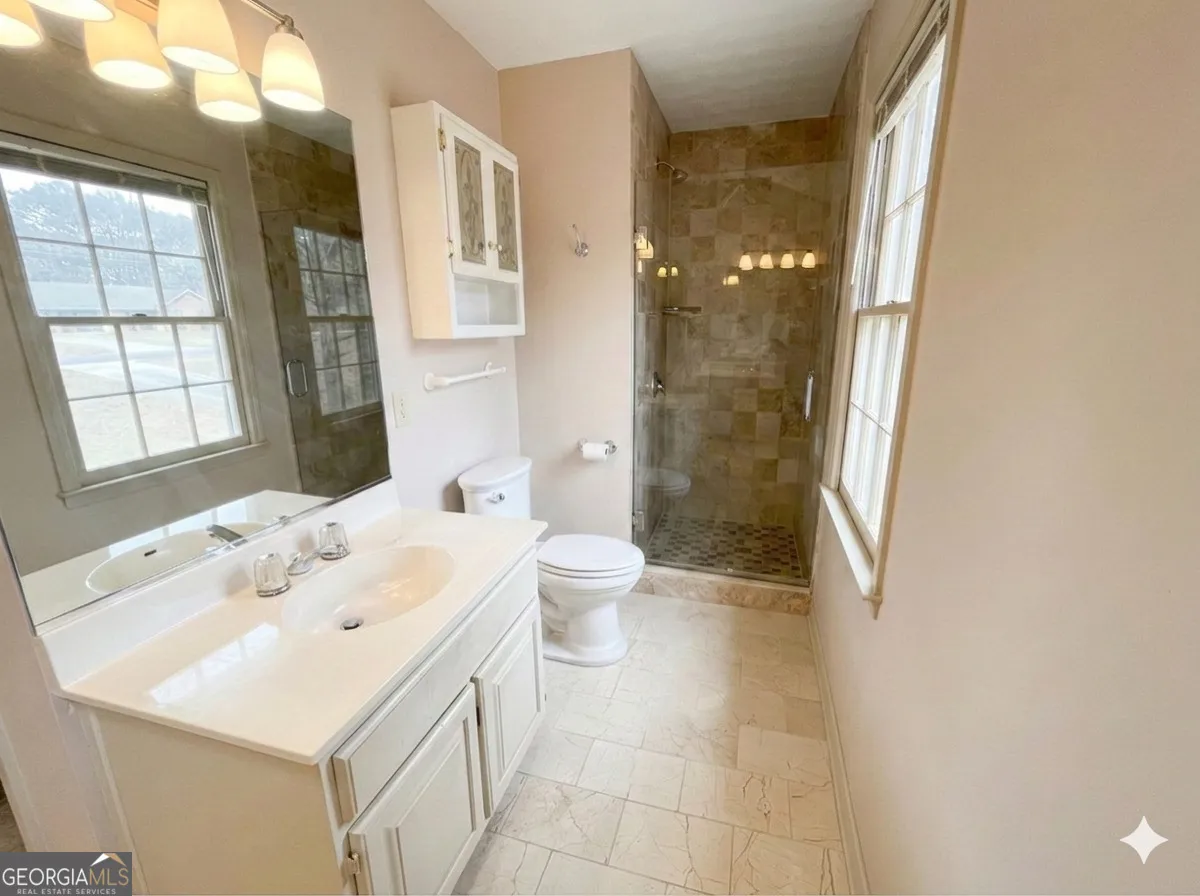 Spacious Two-Story Brick Front with Sunroom & Expansive Terrace Level. This beautiful two-story brick-front home offers space, function, & flexibility in all the right places. Step inside to a welcoming familyroom with a cozy fireplace, perfect for gathering and relaxing. A separate dining room provides the ideal setting for hosting holidays & special dinners. The kitchen is designed for both everyday living and entertaining, featuring a breakfast bar, dedicated breakfast area, center island, & stainless steel appliances. Just off the main living area, the oversized sunroom steals the show-lined with windows and filled with natural light, it’s the perfect space for morning coffee, a home office, or year-round enjoyment. Convenience is key with a laundry room on the main level that includes the washer & dryer, along with a half bath for guests. Upstairs, retreat to the spacious owner’s suite complete with dual vanities and a separate shower in the private bath. Two generously sized secondary bedrooms and a versatile bonus room offer flexibility for guests, hobbies, or a home workspace. The terrace level provides approximately 2,100 square feet of unfinished space, already stubbed for a bath and featuring a boat door for easy access-ideal for lawn equipment, storage, or future expansion. Out back, enjoy a huge fenced yard with plenty of room to play or entertain. The deck is equipped with an under-deck drainage system, keeping the area below dry and usable year-round. All of this, conveniently located less than 30 minutes from Hartsfield-Jackson Atlanta International Airport and Downtown Atlanta-giving you quick access to travel, work, dining, and entertainment while enjoying the comfort of home.