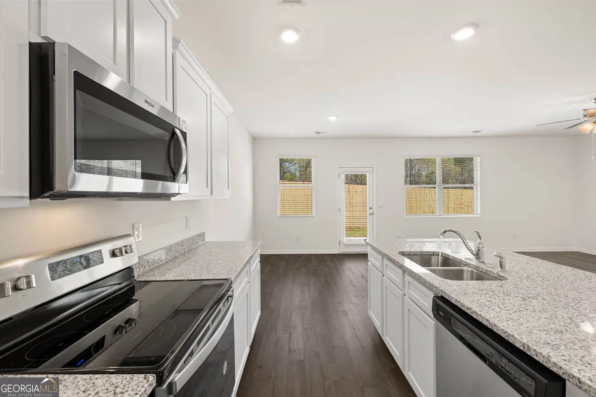 MINUTES TO I-85 & 30MINUTES TO DOWNTOWN ATLANTA. New Piedmont Medical Hospital. Great schools and lots of shopping. The community offers an exceptional amenities package including a zero-entry pool, cabana and playground. The Saratoga floorplan at Poplar Preserve is a two-story home offering 3 bedrooms and two full baths plus a powder room covering 2,001 square feet of living space. The 2-car garage ensures plenty of space for vehicles and storage. Get open concept living at its best. As you enter, you are greeted by an expansive family room that is light and airy with plenty of room for seating, so everyone stays connected. The well-appointed kitchen features an island that allows for bar stool seating and includes granite countertops, contemporary cabinetry and stainless-steel appliances for a modern feel. An adjacent casual dining area allows room to host the holidays or just enjoy a family dinner. The central staircase leads up to a private bedroom suite with extra closet space and a spa-like bath that includes dual vanities, shower and a separate garden tub. There is room to roam with large secondary bedrooms and a hall bath that no one will mind sharing. A convenient laundry and dedicated linen closet completed this timeless design. Our homes also come equipped with smart home technology, letting you control everything from lighting to temperature from the convenience of your smart device. Photos used for illustrative purposes and may not depict actual home.