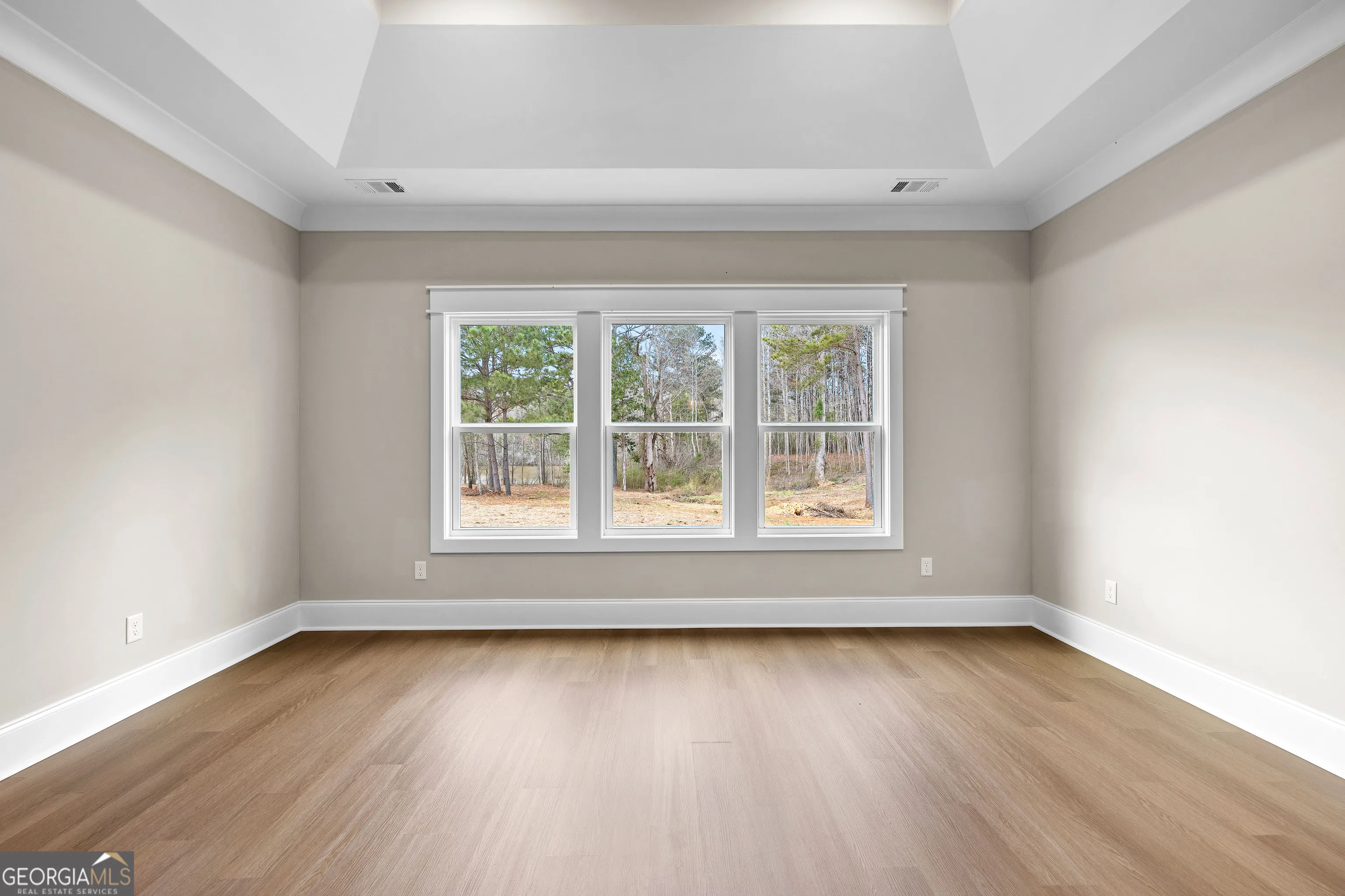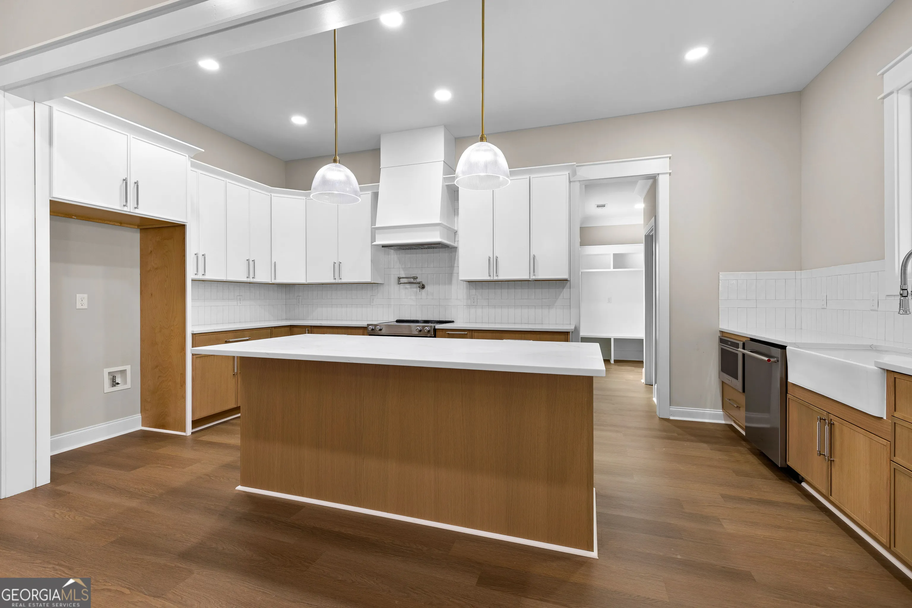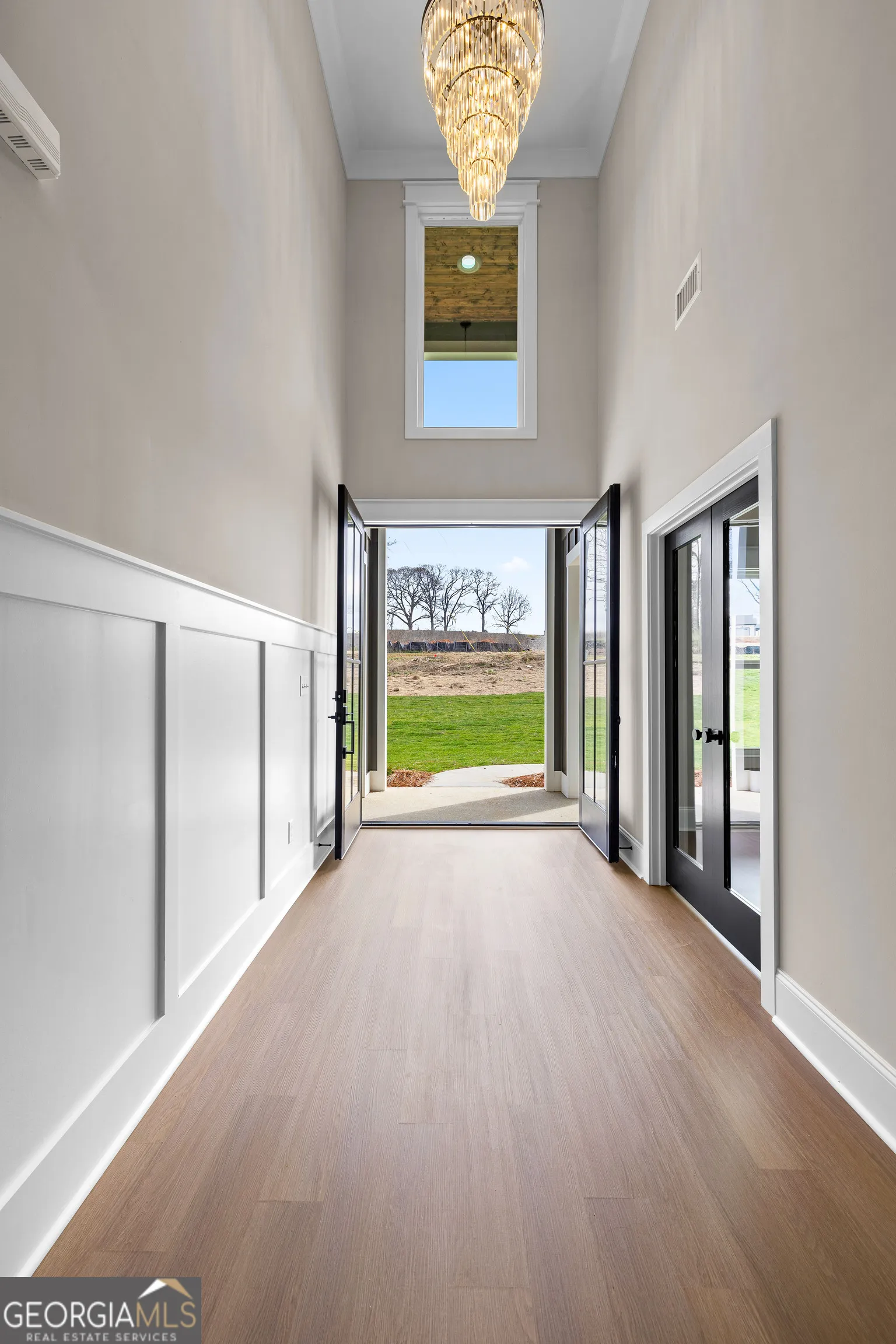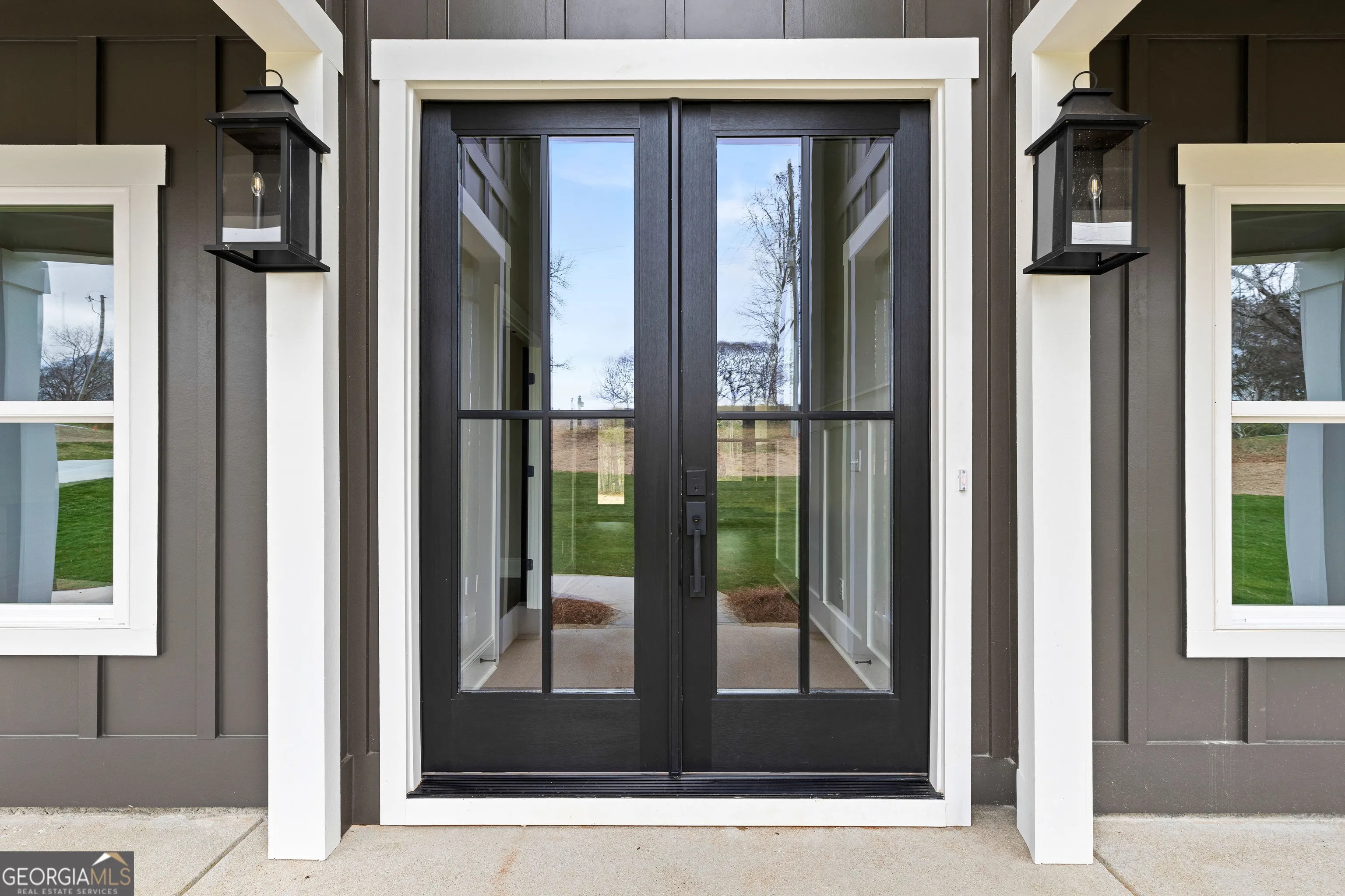 Stunning new construction overlooking a private lake, offering a perfect blend of modern design, comfort, and functionality. This beautifully crafted home features impressive curb appeal with modern board-and-batten and horizontal siding, a covered front porch with tongue-and-groove ceiling, and striking double glass front doors. Step inside to a dramatic two-story foyer filled with natural light and highlighted by an elegant chandelier, creating a memorable first impression. The open main living area features luxury vinyl plank flooring and is anchored by a modern electric fireplace with a beautiful wood accent wall. The kitchen is designed for both everyday living and entertaining, featuring quartz countertops, stainless steel appliances, tile backsplash, apron-front farmhouse sink, pot filler, oversized island, and a spacious walk-in pantry with built-in shelving. The primary suite offers a trey ceiling and a spa-inspired bathroom with large porcelain tile flooring, a freestanding soaking tub, and an oversized walk-in shower with double shower heads. Bedroom 2 features its own private full bath with a stand-up shower, ideal for guests or a private suite. Bedrooms 3 and 4 share a convenient Jack-and-Jill bathroom. Additional highlights include a dedicated home office with built-in desk, a large laundry room, and a thoughtfully designed drop zone off the side-entry garage with a nearby half bath. The garage also includes an EV charging plug. Outdoor living continues on the covered back porch with a wood-burning fireplace-perfect for relaxing while enjoying peaceful views of the private lake. Located in the desirable Rosemont community, this home offers the convenience of being within walking distance to The Fields Golf Club and provides easy access to Interstate 85 and 185.