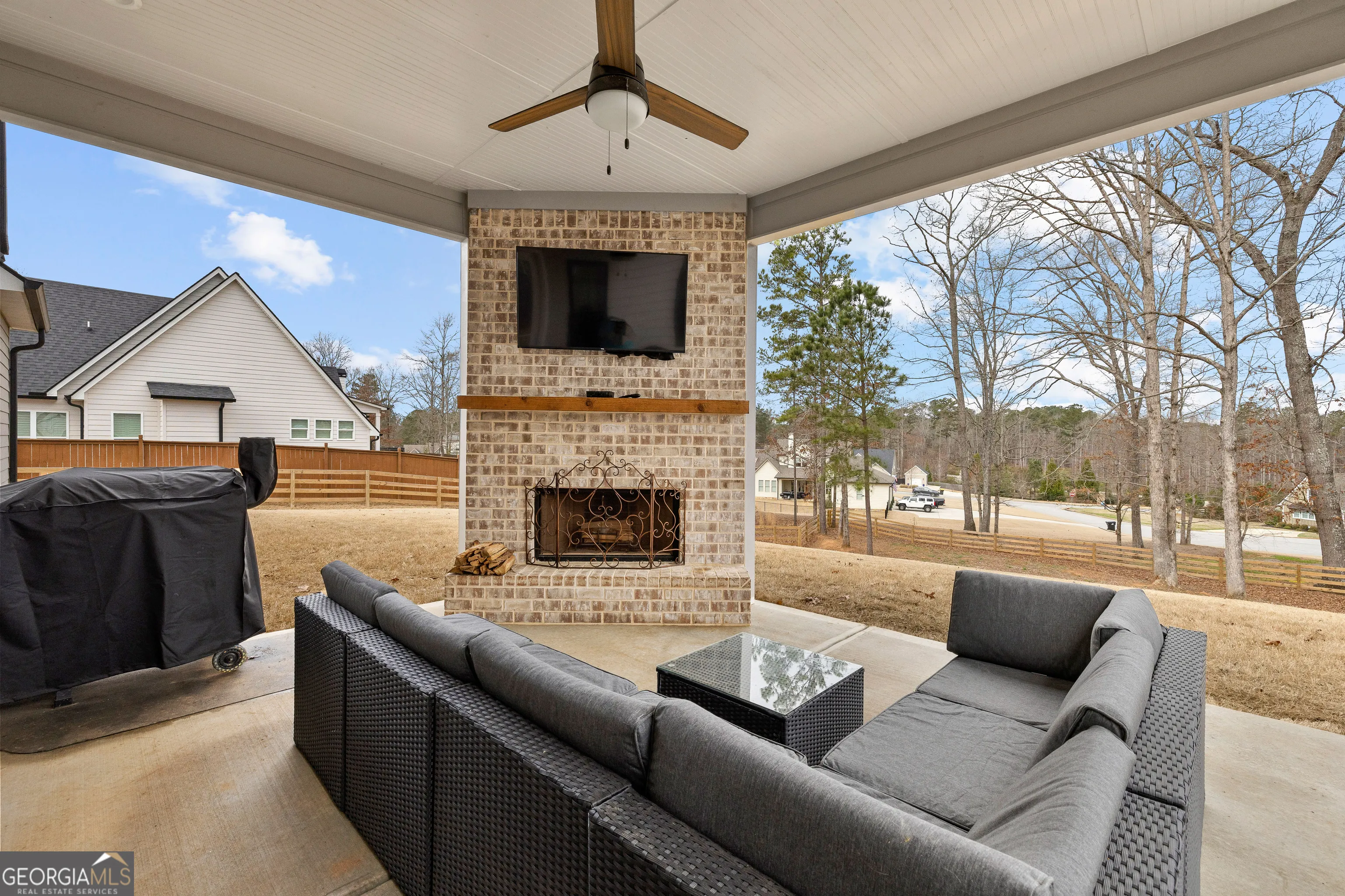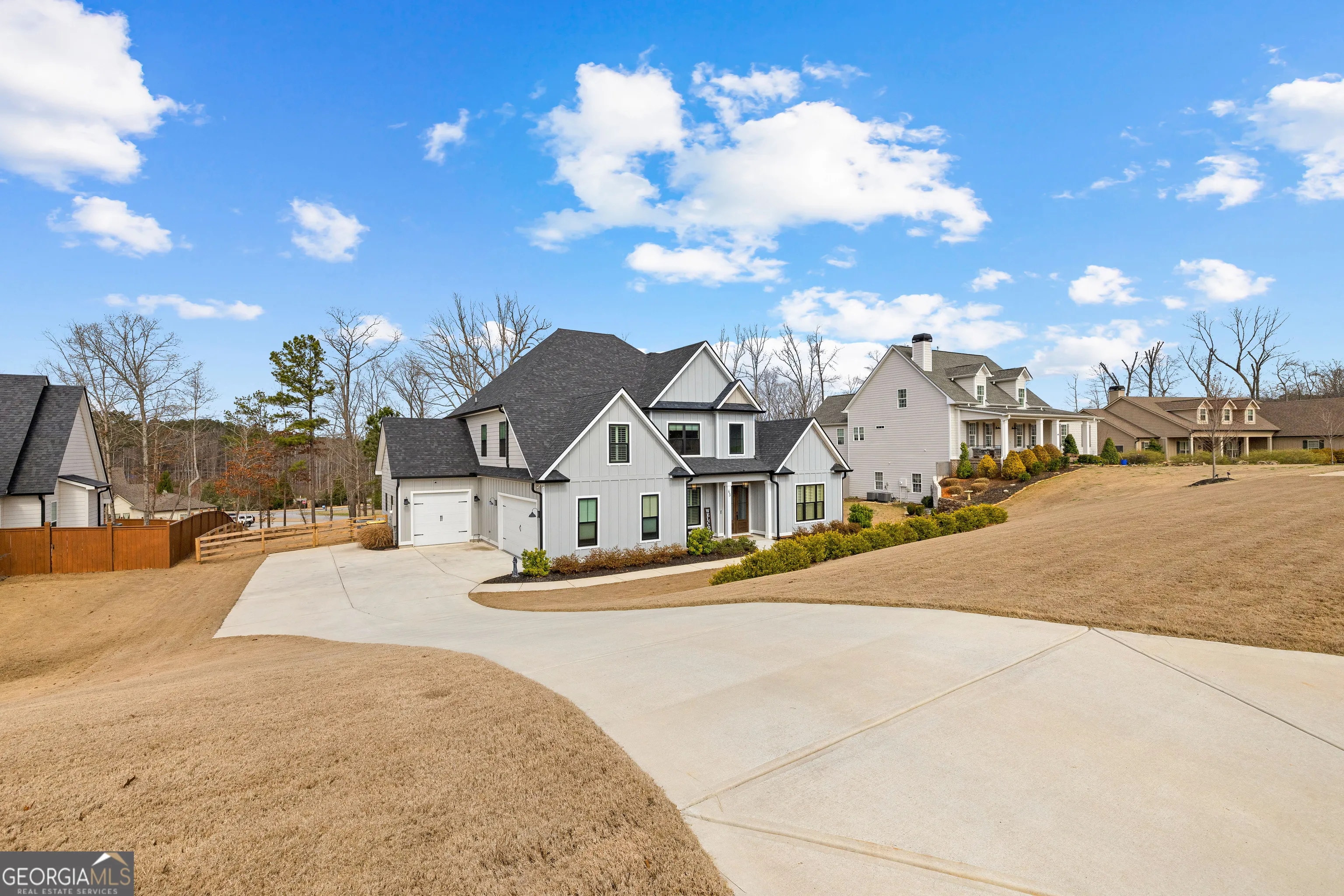 Discover 43 N Cove Drive in Newnan-an exquisite 4 bedroom 3.5 bath residence nestled in the prestigious Northshore at Lake Redwine community. Built in 2022 this gorgeous 3400 sq ft. home showcases modern craftmanship and timeless elegance. A grand double-door entrance opens to a sun-drenched foyer with soaring ceilings and an open concept design. The gourmet kitchen is a chef’s dream- featuring stainless steel appliances, quartz countertops, custom cabinetry, a large island perfect for gatherings, and a large walk-in pantry. The great room is the heart of the home featuring a stone gas fireplace, expansive windows, and opens out to a covered porch that has a fireplace perfect for indoor/outdoor entertaining. The luxurious owner’s suite is conveniently located on the main level offering a serene retreat with a soaking tub, large walk-in tiled shower, dual vanities, and a generous walk-in closet. Upstairs you will find three additional bedrooms including a Jack and Jill configuration, one bedroom with its own private bath, plus a loft/media or office space. Elegant hardwood flooring throughout the main level, premium trim, and finish work. Outside the property is surrounded by lush landscaping and a covered patio with fireplace. Fully fenced backyard combining privacy and outdoor enjoyment. This home is situated in a vibrant neighborhood. Enjoy abundant amenities: boating, fishing, swimming pool, pool with splash pad, lighted tennis and racquetball courts, playgrounds, sidewalks, and well-lit streets.This home blends luxury, comfort, and an unbeatable location in one of Newnan’s most sought after communities. Directions