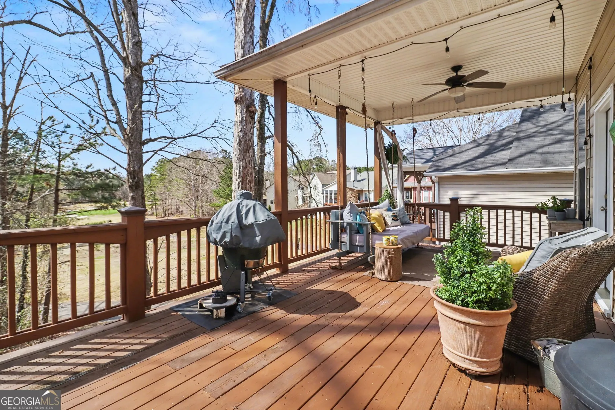 Welcome to golf course living in sought-after Summergrove! Perfectly positioned along the fairway, this beautifully maintained home offers scenic views, flexible living space, and thoughtful updates throughout. You’ll appreciate the blend of multi-purpose indoor space and fantastic outdoor space–Step outside to the large deck overlooking the golf course, where you can enjoy morning coffee, evening sunsets, and relaxing views of the fairway. The best part is to enjoy the expansive vista views of the green without having to maintain them! And you can even work on your golf game indoors… the basement has tall enough ceilings you can easily add an indoor golf simulator, or improve your swing with an impact screen! The main level features the spacious primary suite and a secondary room that is currently set up as a bedroom, that could be an office or den. The master suite includes easy access to the laundry room on the main floor, making everyday living simple and efficient. A separate dining room provides the perfect space for gatherings and holiday meals. The kitchen is designed for both function and style with abundant cabinetry, stainless steel appliances, and generous workspace-ideal for cooking and entertaining. Fresh new paint in the interior and attractive stone exterior accents enhance the home’s curb appeal. Downstairs, the builder-finished terrace level offers two additional bedrooms, creating great space for guests, multigenerational living, a home office, or recreation area. There’s also plenty of unfinished space that could easily be finished for additional living space, or kept unfinished for generous storage. New carpet in the secondary bedrooms and throughout the finished rooms on the terrace level adds comfort and a fresh feel. Located in Summergrove-one of Newnan’s most popular communities-residents enjoy incredible amenities including pools, tennis, golf, parks, and scenic walking trails, all just minutes from shopping, dining, and I-85. A rare opportunity to enjoy golf course views, flexible living space, and a vibrant community lifestyle all in one beautiful home.