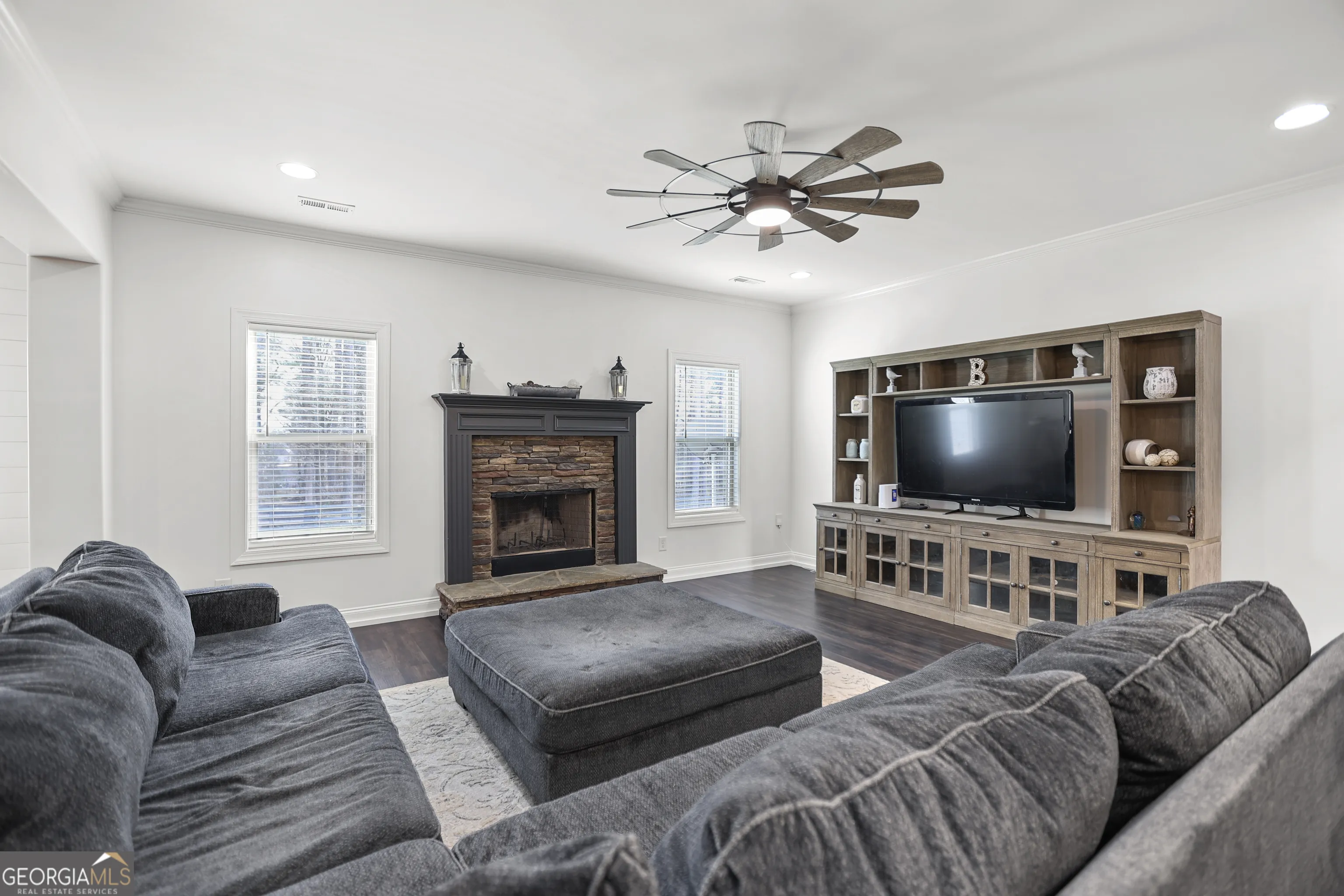Welcome to 22 Huntsman Run, nestled in the highly sought-after FoxHall subdivision! Situated on a spacious cul-de-sac lot, this beautifully designed home offers the perfect blend of comfort, functionality, and style. From the moment you step inside, you’re greeted by a grand two-story foyer, stunning LVP flooring, and an inviting open-concept layout that seamlessly connects the kitchen and living area-ideal for both everyday living and entertaining. The main living area has been freshly repainted, creating a bright, clean, and move-in-ready feel. The kitchen is a true centerpiece, featuring granite countertops, stainless steel appliances, and a clear view into the living room, making it easy to stay connected with family and guests. The main-level owner’s suite is a private retreat, complete with LVP flooring and a luxurious ensuite bath showcasing tile floors, granite countertops, a soaking tub, and a separate shower. The custom-designed walk-in closet provides exceptional storage and organization. Upstairs, you’ll find a versatile loft space perfect for a media room, office, or play area, along with four generously sized bedrooms-each offering walk-in closets and convenient Jack-and-Jill bathroom access. The upstairs hallway has also been freshly repainted, adding to the home’s refreshed and well-maintained appeal. Step outside to enjoy the covered back deck overlooking a large, fenced-in backyard-perfect for entertaining, relaxing evenings, or giving pets plenty of room to play. Car enthusiasts and hobbyists will appreciate the oversized 26×26 garage with an 8-foot opening, providing ample space for vehicles, storage, or recreational equipment. Conveniently located just 30 minutes from Hartsfield-Jackson Atlanta International Airport and a short drive to the shopping, dining, and charm of Senoia and Peachtree City, this home offers both tranquility and accessibility. 22 Huntsman Run is the total package-don’t miss your opportunity to make it yours!