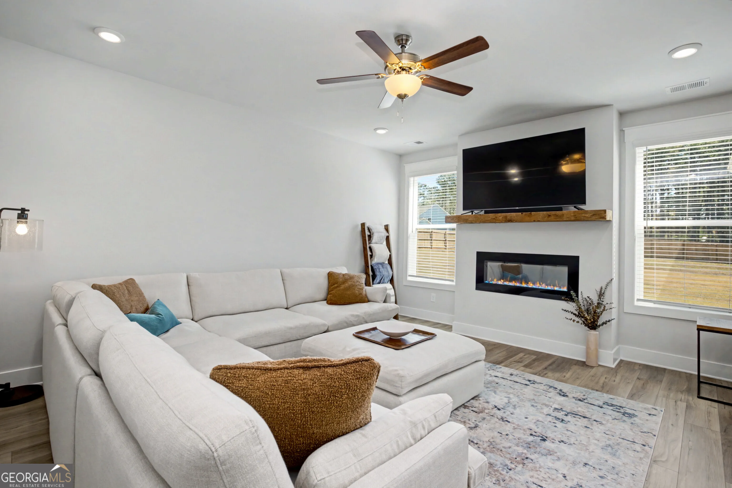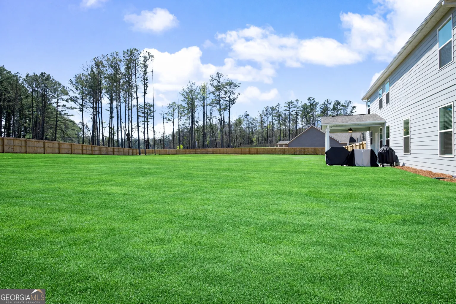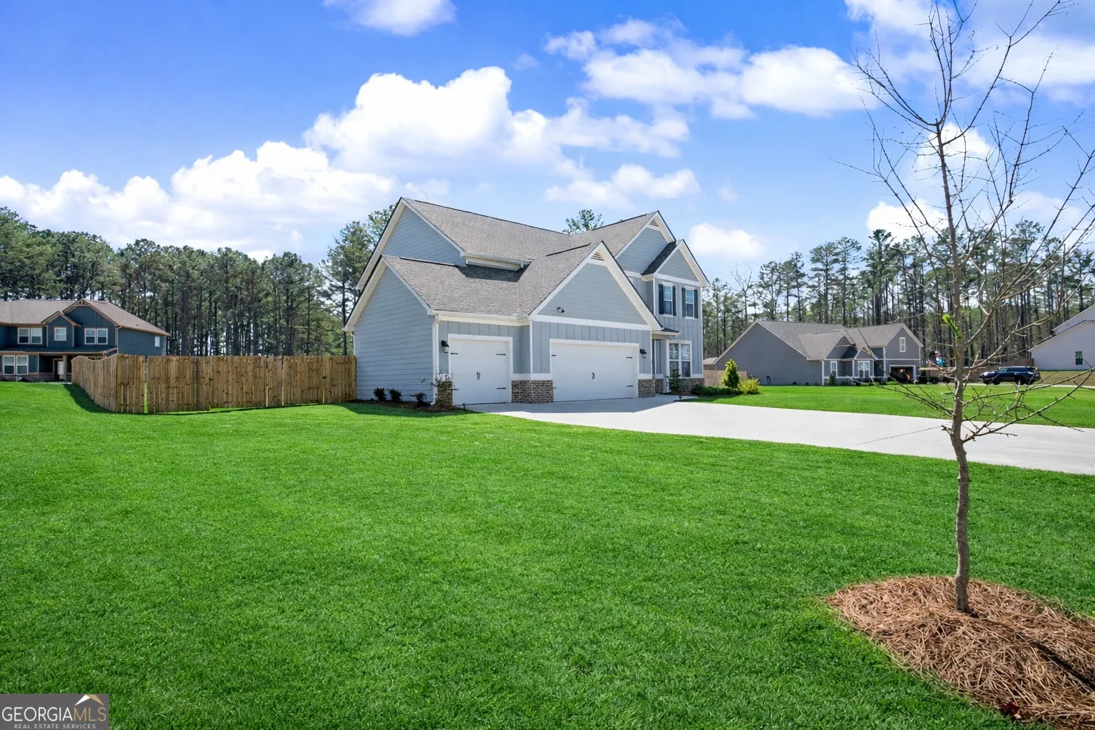 Welcome to Mill Pond Subdivision, a charming boutique community featuring spacious 1+ acre homesites designed for comfortable living and a welcoming neighborhood atmosphere. With only one road in and out, the subdivision enjoys minimal traffic and a peaceful setting. Built in 2024, this home is like new and offers 5 bedrooms and 3 full bathrooms, providing plenty of space for family living and visiting guests. The open-concept kitchen overlooks the family room and flows easily into the dining area, making it ideal for everyday living and entertaining. Just off the foyer, a versatile flex room is perfect for a home office, study, or hobby space. The main level also features one bedroom and a full bathroom, ideal for guests or multi-generational living. Upstairs, the spacious primary master suite includes a large en-suite bathroom, creating privacy Three additional bedrooms and a convenient upstairs laundry room are located off the hallway. Step outside to enjoy the privacy-fenced backyard, perfect for relaxing or entertaining. The expanded patio area offers both covered and open-air spaces-complete with a ceiling fan for cooling comfort-giving you the option to relax in the shade or soak up the sunshine while hosting cookouts with family and friends. Friends have ample parking in the expanded/wider Driveway area. Conveniently located with easy access to Interstate 85, commuting to the greater Atlanta area is simple, while also allowing easy travel south toward LaGrange and Columbus. Nearby communities including Peachtree City, Newnan, and Senoia provide convenient access to shopping, dining, entertainment, and medical services such as Piedmont Newnan Hospital. This beautiful, nearly new home combines space, privacy, and convenience in a desirable location-ready for you to move in and enjoy.