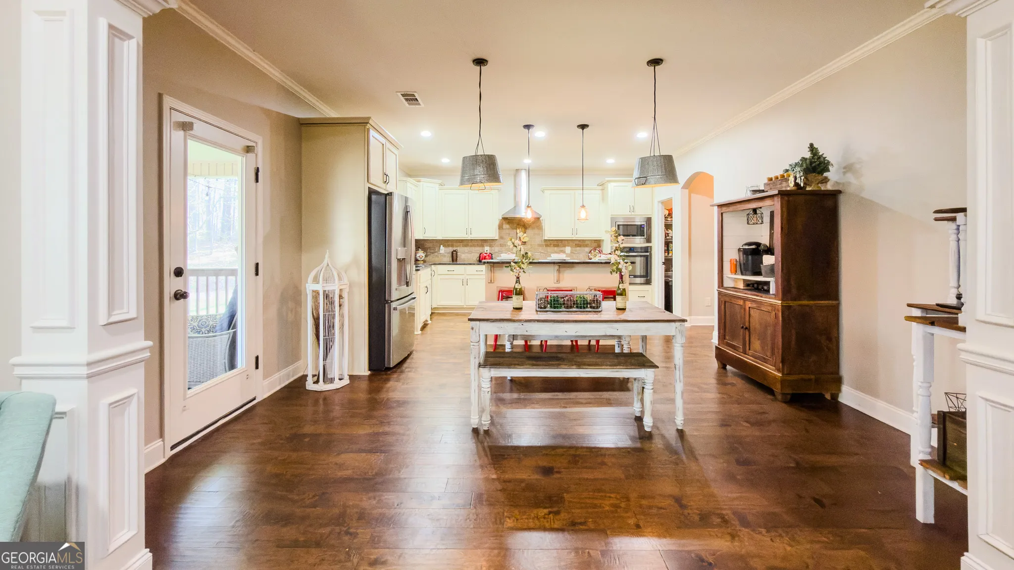 On the market for the first time since built in 2015, welcome home to 37 Farmstead. Tucked away in the heart of Bradshaw Farms, this lakeside retreat offers a rare kind of quiet beauty – just minutes from the charm of downtown Senoia, yet worlds away from the everyday. Set on 1.3 acres of parklike grounds, the home is gently revealed at the end of a long, private drive, wrapped in greenery and buffered from view. Nearly every room looks out over the water, creating a constant sense of calm – morning light on the lake, evening reflections drifting in through the windows. The main level is designed for effortless living. A gracious primary suite anchors the floor, complete with a walk-in closet, tiled shower, and a freestanding soaking tub. Elegant coffered ceilings add depth and refinement throughout, while the open kitchen-with walk-in pantry-flows seamlessly into the great room and sun porch, inviting connection in every season. Upstairs, four bedrooms offer flexibility for family, guests, or creative use. A Jack-and-Jill bath on one end, a shared bath on the other, and a central loft with a second great room and laundry create a layout that adapts beautifully to changing needs. The fully finished daylight basement tells its own story. With two bedrooms, a full kitchen, living area, private entry, and laundry, this level functions as a true apartment-perfect for extended stays, multigenerational living, or inspired separation. One bedroom is wired for a theater experience, complete with projector and surround sound, with a dedicated space for media control or storage. Throughout the home, thoughtful upgrades elevate daily life: top-of-the-line carbon and UV air purification, a tankless water heater, and three strategically placed laundry rooms-one on each floor. The oversized 3+ stall garage offers ample space for tools, hobbies, and weekend toys. Outside, spring brings floral wonders with reclaimed water, grapes climbing through the trees, and wrap-around outdoor patios and gathering spaces, adding an unexpected layer of romance. The lake itself is stocked and open for swimming or light boating; this is the only home in the community with both unobstructed lake views and access. The HOA-owned land between the home and the water ensures that view will remain forever untouched. This isn’t just a house. It’s a place where time slows, light lingers, and life feels a little more intentional. Updates and repairs have just been completed, and include fresh paint inside and out, new carpets, refreshed bathroom tile, new light fixtures in bedrooms and common areas, pressure washing, and more. Welcome home.