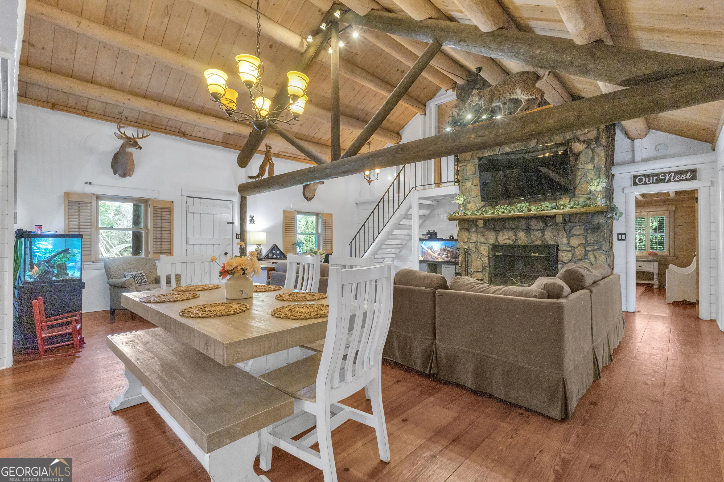 Some properties don’t just check boxes. They stop you in your tracks the moment you turn down the drive. This is one of those properties. Tucked away in the heart of Pine Mountain, this breathtaking Country/Rustic log home sits on 1.36 private acres in the charming Ida Cason Callaway community, just minutes from the gates of Callaway Gardens and FDR State Park. But no description does it justice. You truly have to see this one in person. The main home spans 2,353 square feet of pure character, with vaulted ceilings, exposed log beams, and not one but two wood-burning fireplaces that make every season feel like exactly where you’re supposed to be. The open-concept living and dining area flows effortlessly, anchored by a warmth and authenticity that newer construction simply can’t replicate. Step out onto the private deck and you have your own shaded retreat, perfect for morning coffee, evening dinners, or stargazing on a clear Pine Mountain night. The fully landscaped grounds feature gorgeous raised bed gardens that are staying with the home, giving the property a storybook quality that photographs beautifully and feels even better in person. Now let’s talk about the possibilities. Separate from the main home, a 1,026 square foot guest home offers a full bedroom, bath, kitchen, breakfast bar, and living room, completely self-contained and move-in ready with all new 2024 appliances. Whether you’re welcoming aging parents, housing adult children, or generating income as a short-term rental, this second dwelling is a rare find that opens the door to true multigenerational living or an Airbnb investment that practically sells itself. Pine Mountain draws visitors year-round, and this property gives them every reason to come back. The updates go deep and they matter. A brand new HVAC system with additional ductwork throughout ensures comfort in every corner of the main home. The crawl space has been fully encapsulated for lasting peace of mind. Every appliance in both the main home and guest home was replaced in 2024, and all of it stays with the property. The mounted TV and mount in both the living room and sunroom convey as well, so buyers walk in truly ready to enjoy from day one. And then there’s the 16×30 insulated workshop, heated and cooled, wired, and ready for whatever you envision. A hobbyist’s dream, an art studio, a game room, additional sleeping space, the flexibility here is limited only by imagination. Fully fenced yard. Raised bed gardens. Lush, established landscaping. Two dwellings. A shop. New mechanicals. And Pine Mountain, one of West Georgia’s most beloved destinations, right outside your door. Great shopping and dining are minutes away, and Warm Springs is just an 18-minute drive. This is the kind of property that becomes someone’s forever place, or their most inspired investment. Professional photos coming Tuesday. Join us for our Open House Saturday 11AM to 1PM, or schedule your private showing before then.