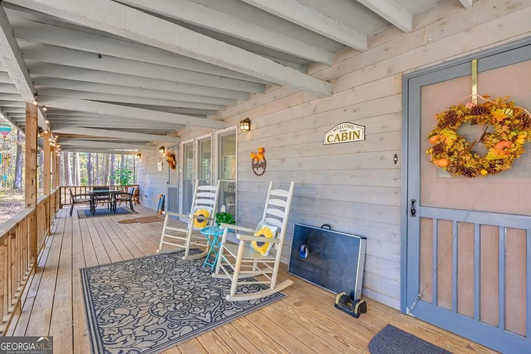 This is a wonderful opportunity to own a peaceful waterside retreat located at 145 Stillwaters Lane in the heart of Harris County. This property is currently operating as a popular and highly rated vacation rental with impressive income, and is being sold completely furnished and is turnkey, inclusive of future bookings. The booking info can be found at evolve.com with a search of Hamilton, Ga. Originally a historic Roosevelt Era “Valley House” previous owners oversaw the renovation and expansion and relocated it beside the stillwaters of a small shared pond. The home is very well maintained. The plumbing was completely updated a year ago, and there is termite protection from Knox Pest Control. The exterior features exceptional outdoor living spaces, including a deep covered front porch, a spacious screened porch overlooking the water, and a wooded front yard with a firepit and seating. The grounds also include a small storage shed and a covered pole barn suitable for equipment or RV storage, wooded areas for exploring and of course fishing. The interior is equally impressive, featuring a living room with a wood-burning fireplace and a magnificent kitchen equipped with custom ceramic tiles painted by a local artist. The home offers three bedrooms, two bathrooms, a dedicated laundry room, and a dining area designed for large gatherings, all while being just a short drive from Callaway Gardens and FDR State Park. Enjoy the quiet setting while being just minutes from the area’s attractions and no HOA fees or rules!