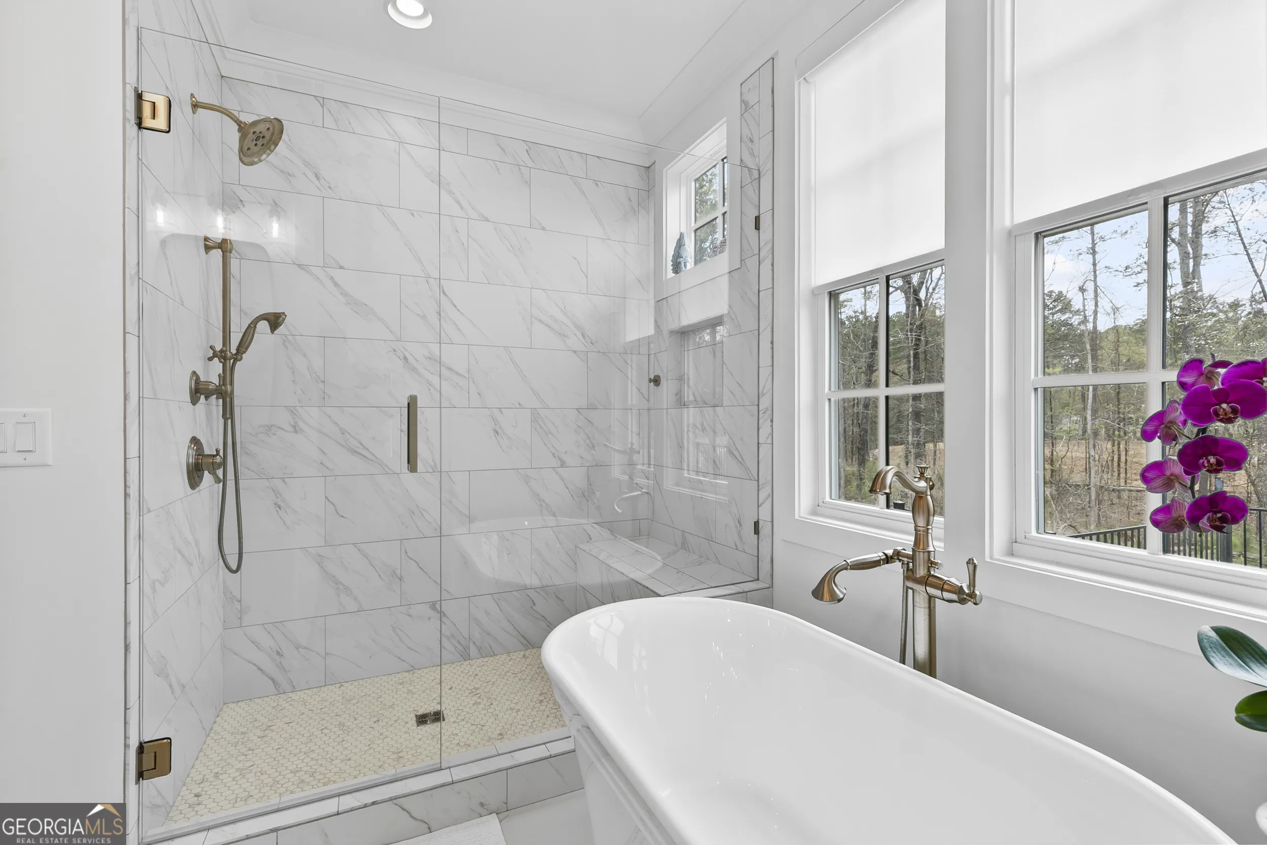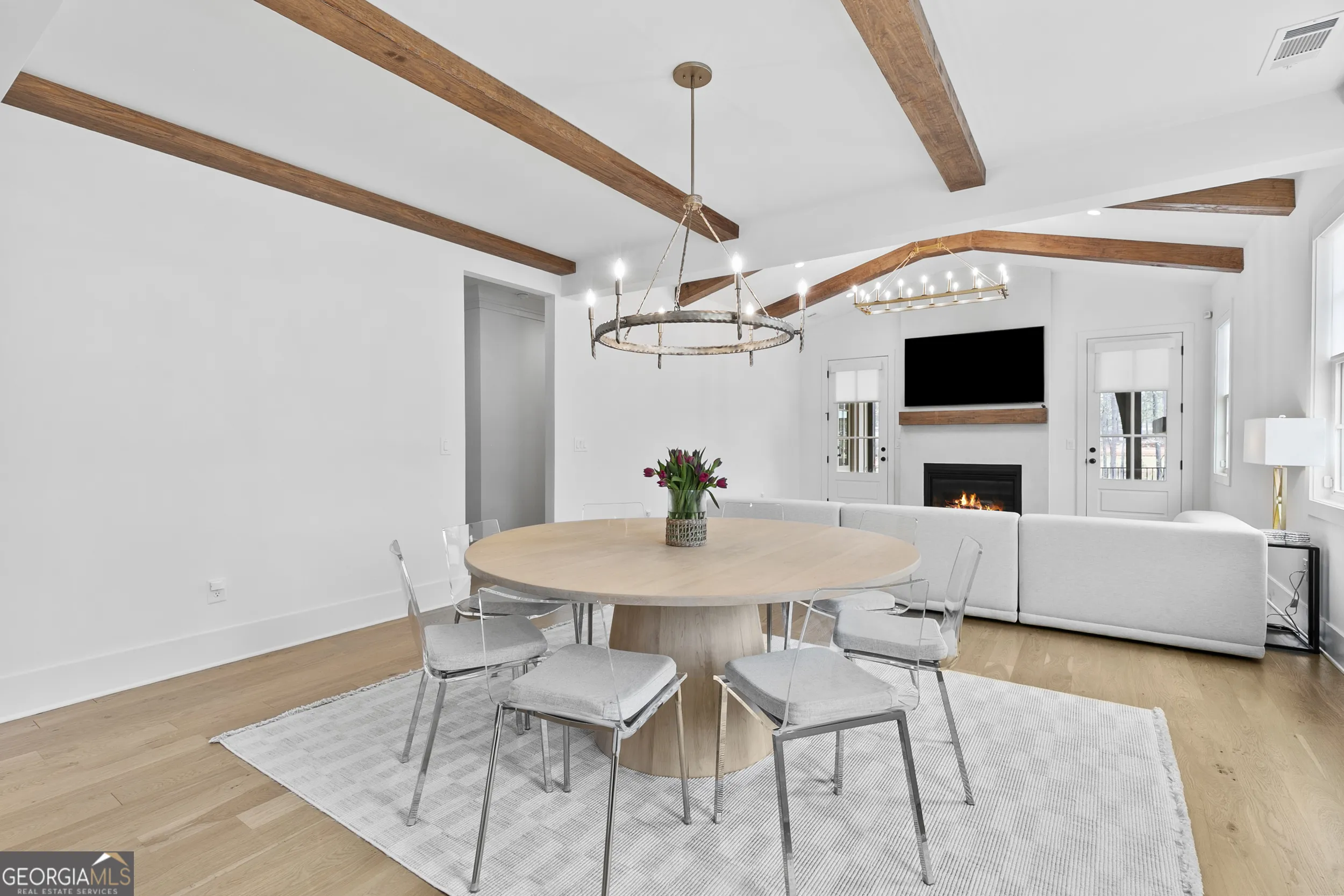 Walkable living meets refined design in one of Peachtree City’s most convenient locations. Beautifully designed 5-bedroom, 3.5-bath home in Towson Village, one of Peachtree City’s fastest-growing communities, zoned for the highly sought-after McIntosh school district. From the moment you step inside, wide plank white oak hardwood floors-carried throughout-set a warm, refined tone. The chef’s kitchen features quartz countertops, custom cabinetry, top-of-the-line appliances, a walk-in pantry, and an oversized island with built-in storage, all complemented by brushed brass finishes that add a subtle, elevated touch. A spacious dining area framed by exposed wood beams flows seamlessly into the living room, where those architectural details continue overhead. Natural light fills the space, anchored by an oversized fireplace and mantle. Just beyond, a covered back patio with its own gas fireplace extends the living space outdoors, overlooking a fenced backyard on a corner lot-ideal for both relaxing and entertaining. The main-level primary suite offers a private retreat with vaulted ceilings, tree-line views, and a thoughtfully designed en-suite bath featuring a walk-in shower, freestanding soaking tub, and custom walk-in closet. Two additional bedrooms, a shared bath, laundry room, and a well-appointed half bath complete the main level. Upstairs includes two additional bedrooms, a full bath, and an expansive walk-in attic providing exceptional storage and flexibility. Additional features include spray foam insulation, tankless water heater, electric vehicle charging, and a spacious 2-car garage with a dedicated golf cart bay. Towson Village continues to grow with a new amenities center underway, including a pool and clubhouse. Ideally positioned within walking distance to Publix, Starbucks, restaurants, and everyday shopping, with direct access to Peachtree City’s extensive golf cart path system. Just minutes from Trilith, offering a vibrant mix of dining, retail, and entertainment. A thoughtfully designed, move-in ready home that delivers elevated finishes, functional living, and a lifestyle centered around convenience and connection.