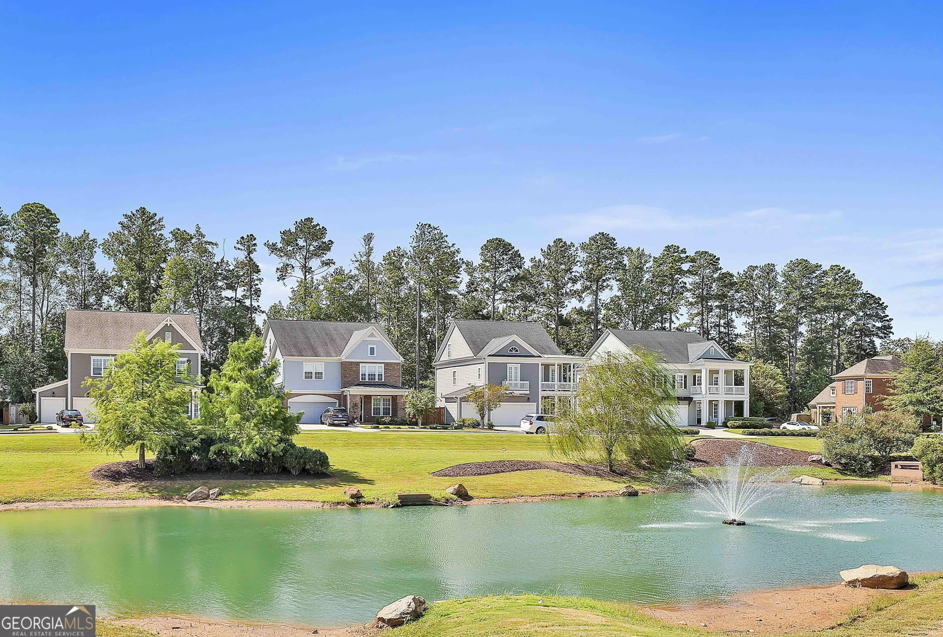 Direct lake and fountain views from the front porch in one of Everton’s most desirable park-side locations! This rare 3-bedroom, 3-bath home offers unobstructed lake and fountain views right at the front, creating a peaceful and scenic setting. The highly sought-after Master-on-Main floor plan features soaring ceilings and sun-filled open living spaces. Enjoy relaxing on the front porch overlooking the lake, or unwind in the private, professionally designed fenced patio-perfect for both quiet retreat and entertaining. Upstairs, a versatile loft and bonus room are ideally positioned to capture elevated lake views, offering a flexible space that can be tailored to your lifestyle-perfect as a home office, guest suite, or creative studio. Complete with a 2-car garage and ample guest parking, this home is tucked away in a quiet enclave with no through traffic, yet remains just steps from golf cart paths, McIntosh High School, and local dining.