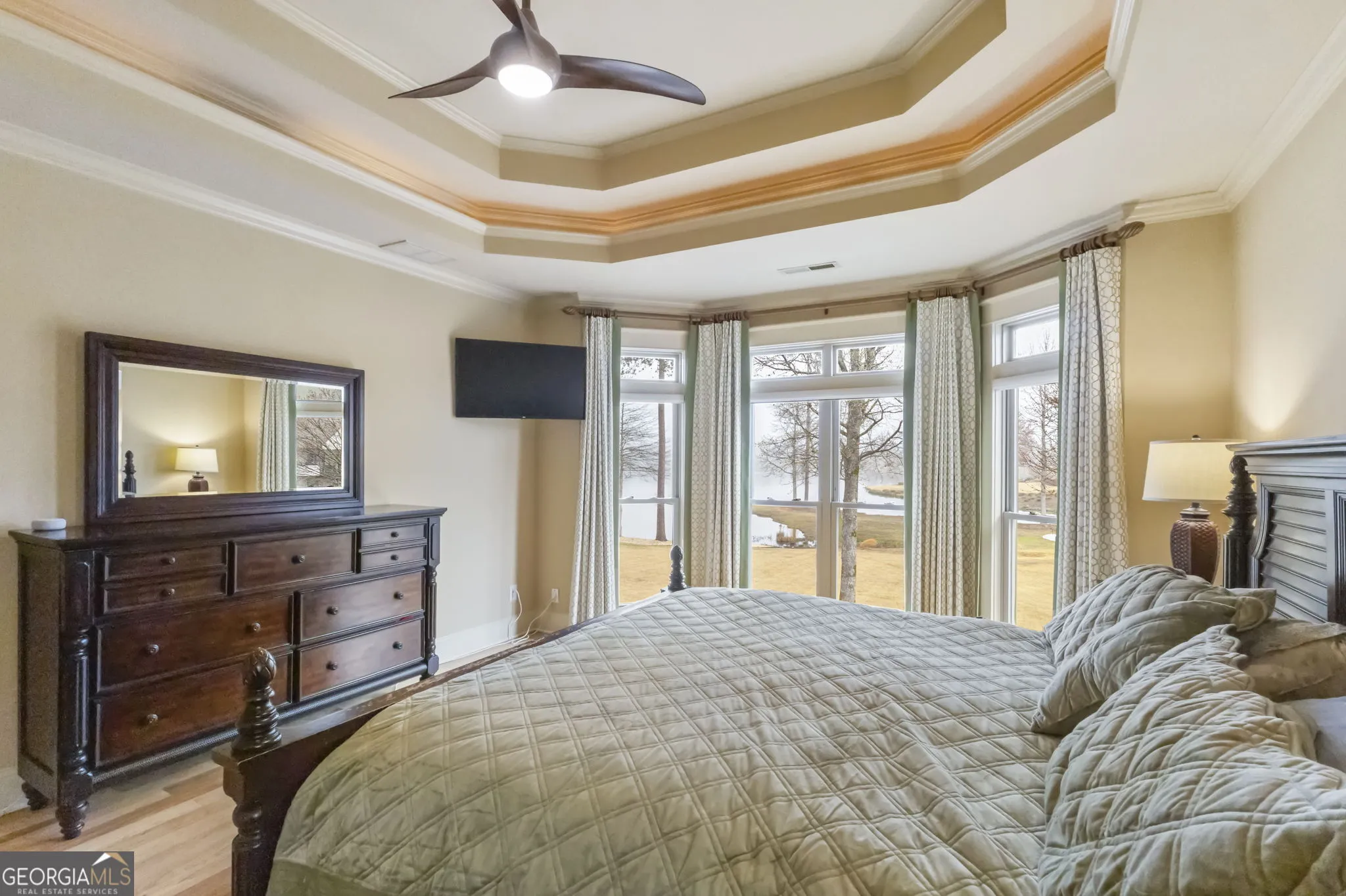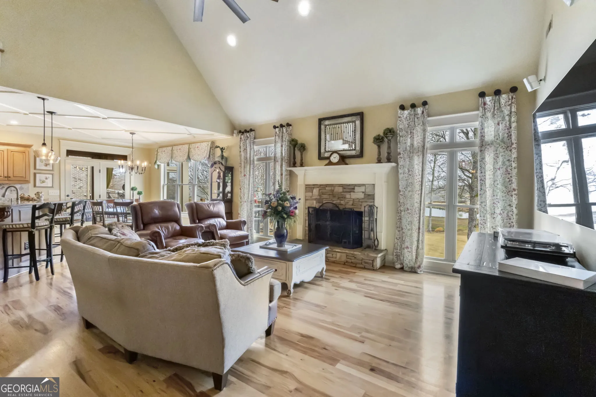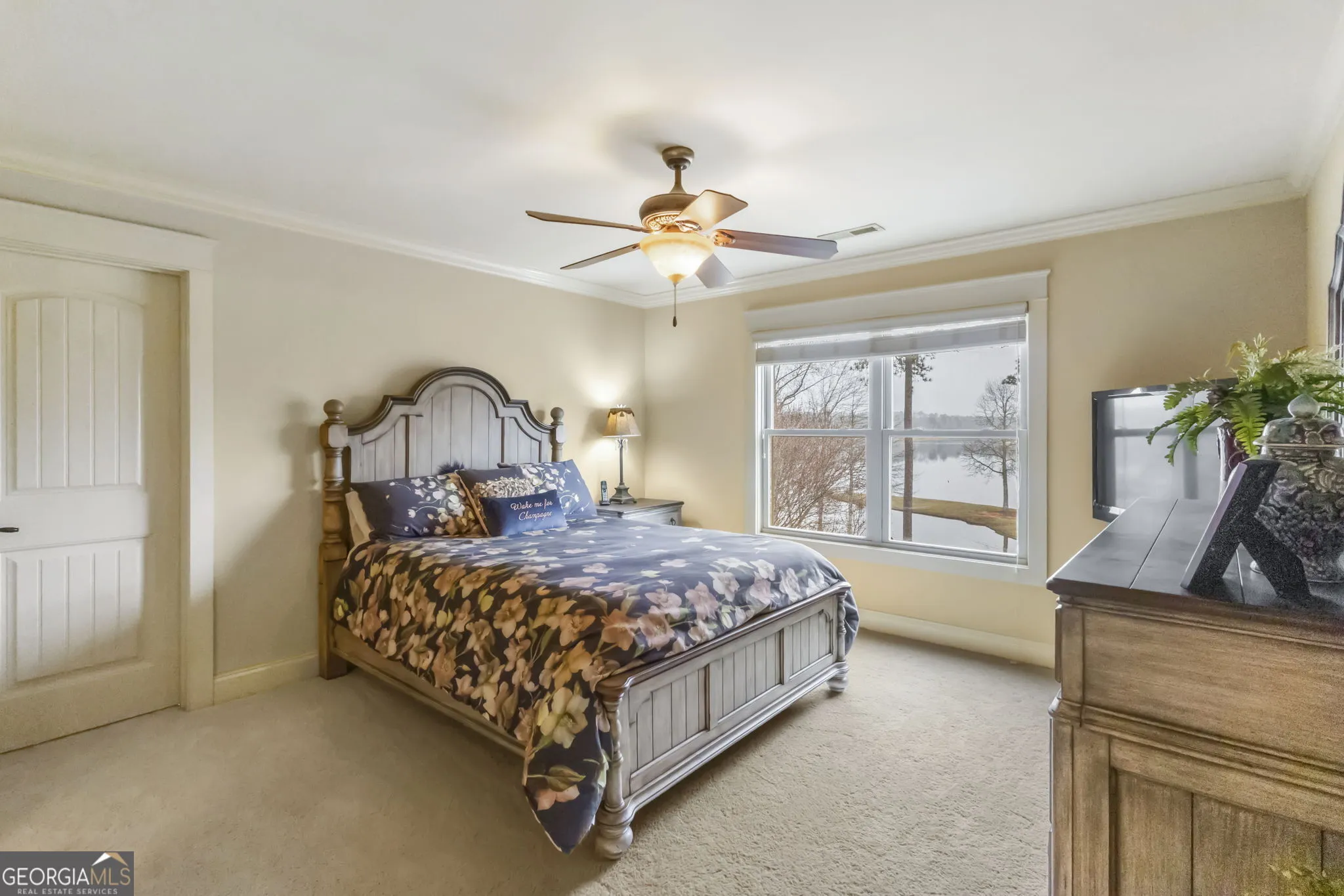 Welcome to this beautiful lakefront, all-brick home in the sought-after Parks of Olmstead community, offering space, quality construction, and incredible neighborhood amenities. Located just minutes from Piedmont Newnan Hospital, shopping, dining, and the interstate, this home combines convenience with a peaceful neighborhood setting. The thoughtfully designed floor plan features a primary suite on the main level complete with a soaking tub, double vanity, and walk-in closet. The main living area includes a cozy fireplace, creating a warm and inviting gathering space. The kitchen offers solid surface countertops, a breakfast area, walk-in pantry, and stainless steel appliances, making it both functional and ideal for everyday living or entertaining. Upstairs you’ll find three additional bedrooms, two full bathrooms, and a versatile office or flex space, providing plenty of room for work, guests, or hobbies. The home also includes a partial unfinished basement with a reinforced concrete storm room, offering excellent storage or future expansion potential. This property is loaded with thoughtful upgrades including three HVAC systems, upgraded ceiling fans, gutter guards, central vacuum hookups, and an electric fence. For added peace of mind, the home is equipped with whole-house surge protection, helping protect your electronics and appliances in the event of a power surge such as a lightning strike. Outdoor living is just as enjoyable with a deck, porch, and screened porch, perfect for relaxing or entertaining. Residents of Parks of Olmstead enjoy resort-style amenities including a clubhouse, pool, playground, sidewalks, and full lake access-complete with a mini peninsula known for great fishing. This well-maintained home offers the perfect blend of space, durability, and community living in one of the area’s most desirable neighborhoods.