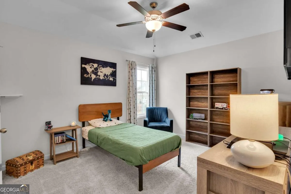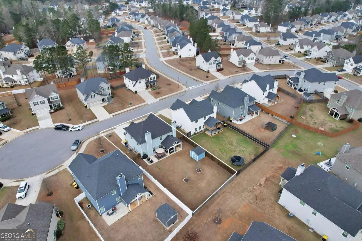Welcome to 21 McGregor Cove! Located on a quiet cul-de-sac street, enjoy the peaceful, easy living! The front formal dining room greets you when you walk in through the foyer. You will notice the beautiful coffered ceilings and wainscoting that add finishing touches to the space. The open concept kitchen with stainless steel appliances overlooks a spacious great room with fireplace, making family time or entertaining easy! The upstairs owner’s suite includes a sitting area, two walk-in closets, double vanities, tiled shower, and separate garden tub. Three additional, sizable bedrooms and a large secondary bath complete the second floor. Whether you’re entertaining or wanting a place to just relax after the long day, you’ll find an inviting covered back porch, equipped with a ceiling fan, fireplace, TV wiring and outdoor speakers. An expanded patio allows easy grilling and additional space for outdoor living. The beautiful fenced yard includes a shed for your storage needs. The Ashton Place community includes a pool, clubhouse, and playground. Conveniently located minutes from Piedmont Newnan Hospital, Ashley Park, shopping and schools. Easy access to Peachtree City, Senoia, and Downtown Newnan.