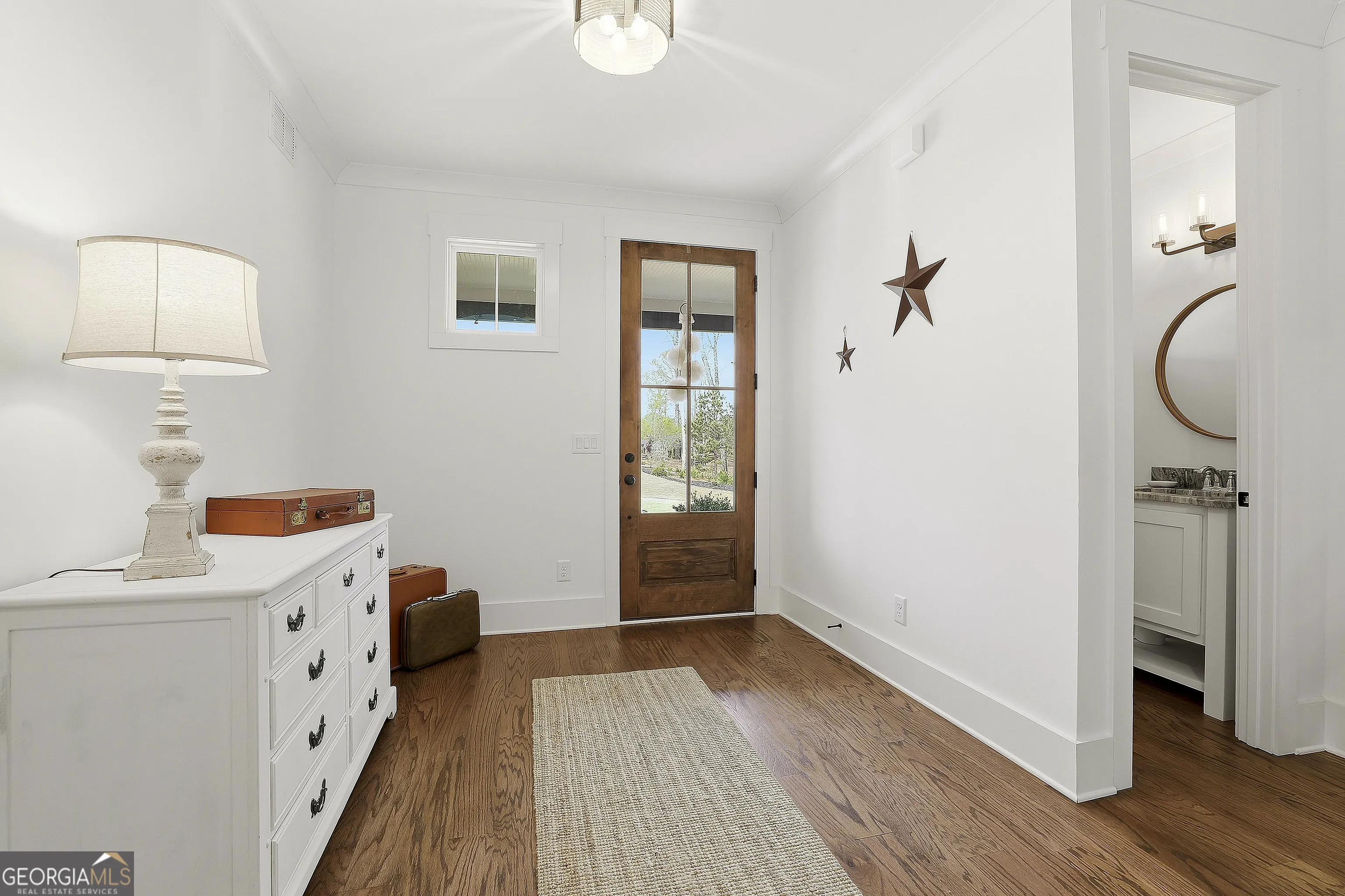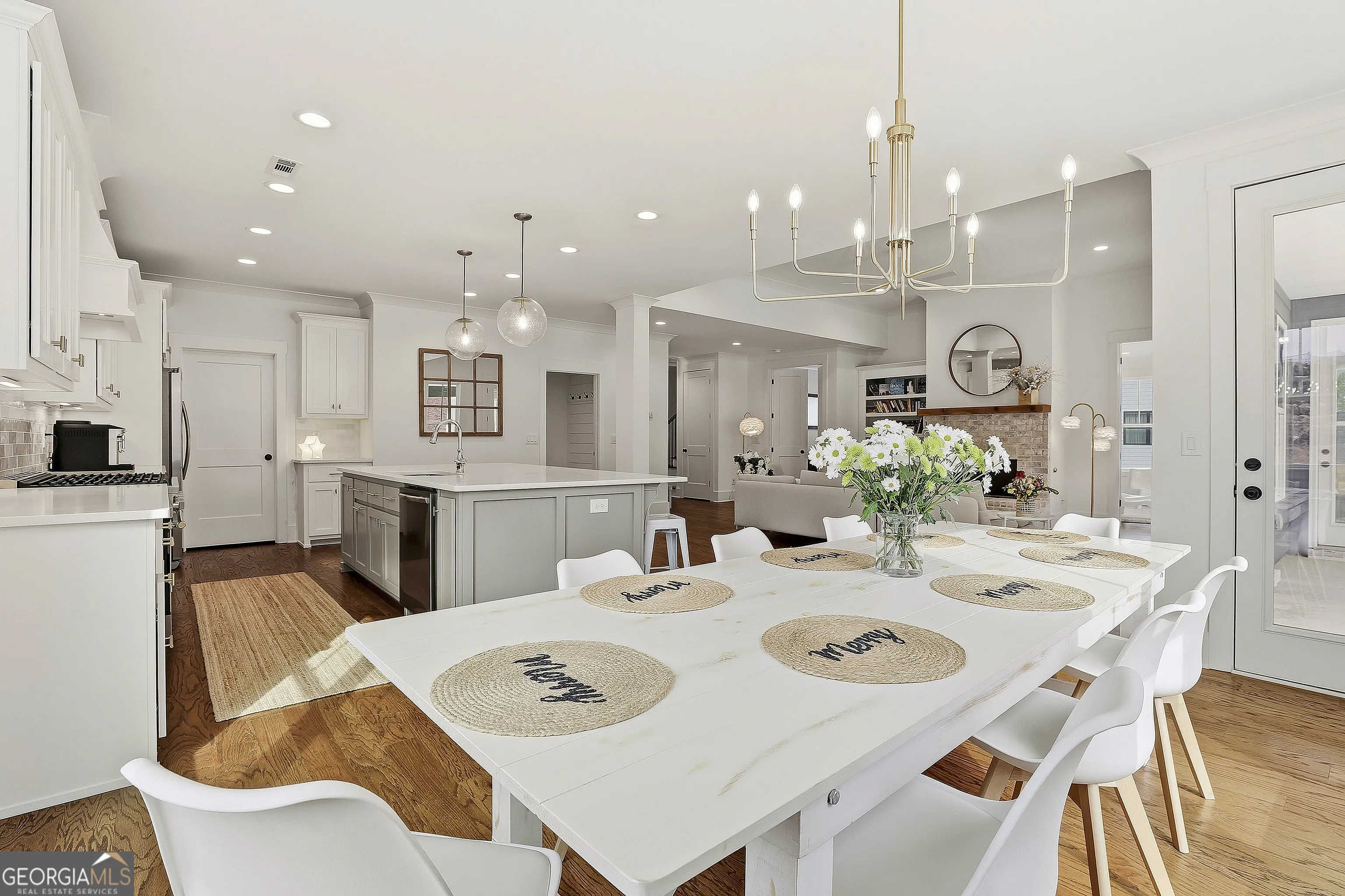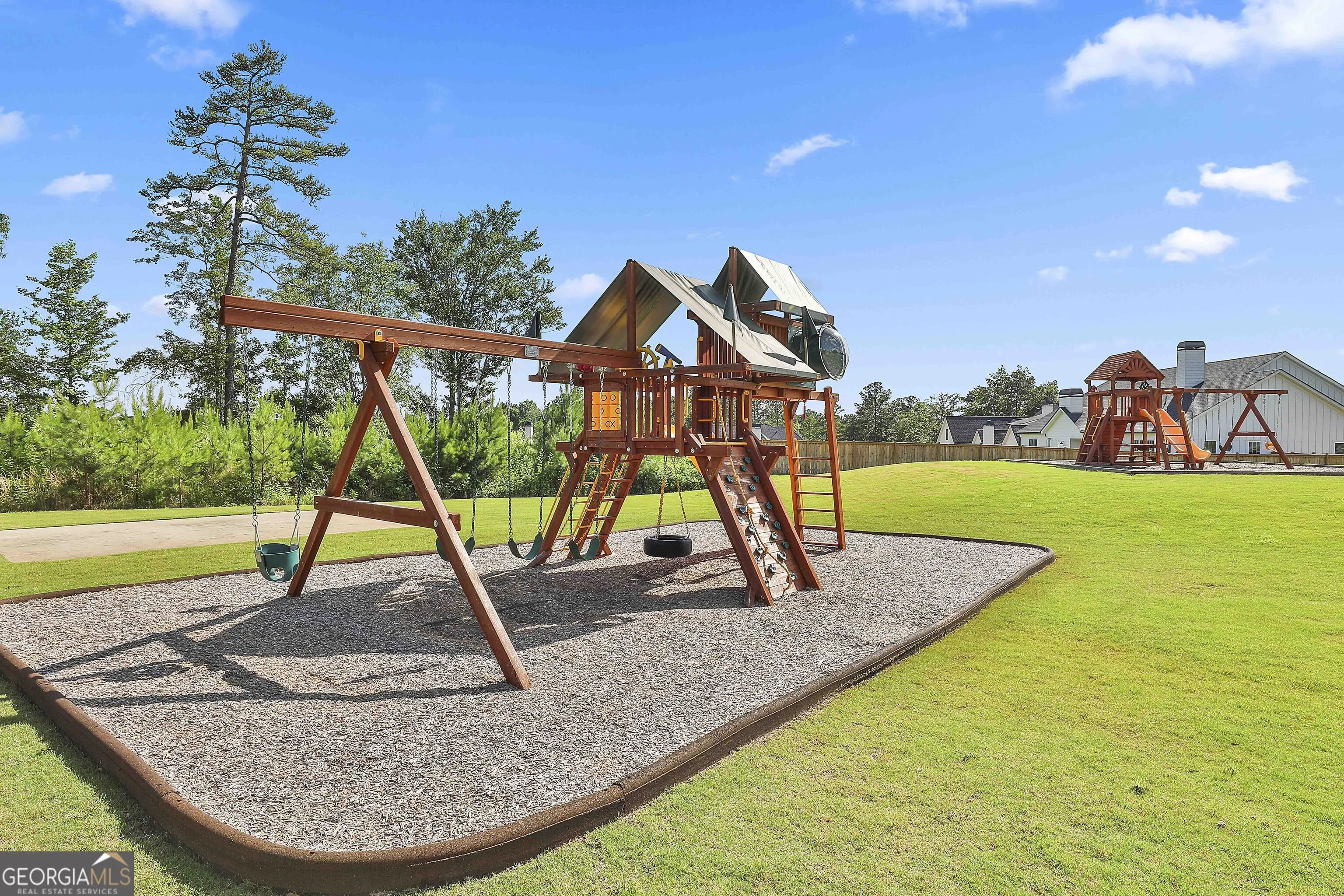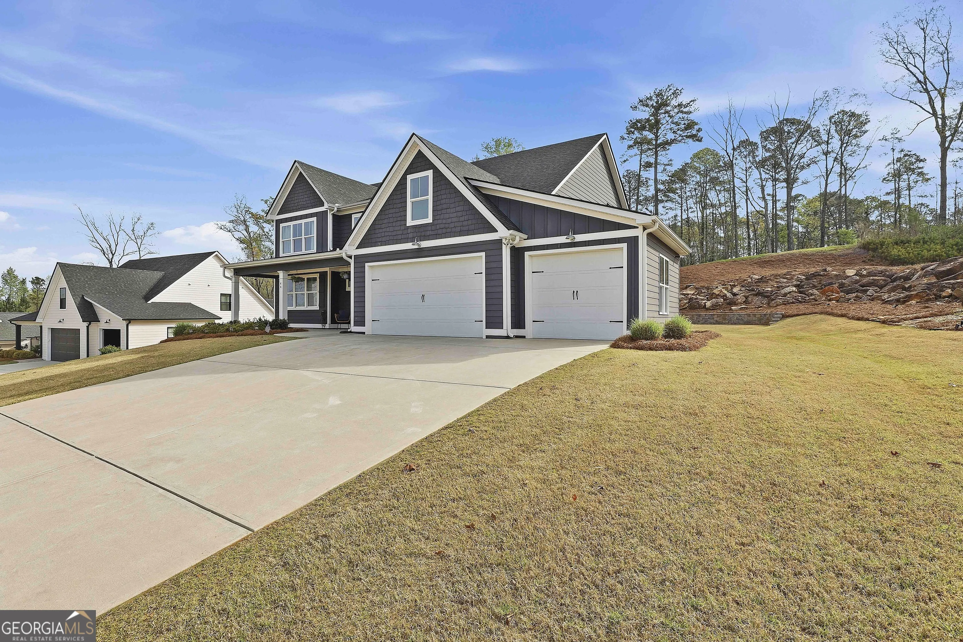 A truly modern residence designed for an elegant, low maintenance lifestyle located in the highly desirable Northshore of Lake Redwine – Newnan GA. From the moment you step inside, you are greeted by a very nice foyer that opens into a bright, modern traditional interior with HIGH CEILINGS, high-end finishes and an OPEN-CONCEPT layout featuring HARDWOOD FLOORS that flow seamlessly throughout the main level. The Open SPACIOUS Living Area features an elegant whitewash brick fireplace w/ rustic wood mantel, flanked by custom built-in shelving and cabinetry. This living space flows seamlessly into the GOURMET CHEF’S KITCHEN that offers abundance of space with its roomy center island and ample cabinets. The professional-grade stainless steel gas range is a plus – perfect for cooking and entertaining! For ultimate convenience, the main living area and kitchen provide direct access to the covered patio and UNIQUE BACKYARD via stately double French doors creating a flawless indoor-outdoor retreat. The outdoor space is highlighted by stunning natural landscape of massive boulder rocks that feels worlds away! The main level also features a charming and versatile dining room situated just off the living area. This flexible space can be used as a formal dining area, home office, cozy media room. The luxury continues in the PRIMARY SUITE, which boats a modern freestanding SOAKING TUB, walk-in tiled shower and spacious walk-in closet. Upstairs is 3-bedrooms, 2 bathrooms ( Jack-and-Jill Bathroom and an EN SUITE BATHROOM ), a spacious BONUS ROOM and LOFT SPACE. Key features of the home: Spacious Open Living Area w/ fireplace, Gourmet Modern Kitchen, High ceilings, lots of natural lights, OWNER’S SUITE ON MAIN LEVEL, 3 CARS GARAGE, COVERED FRONT PORCH AND COVERED PATIO, ENERGY-EFFICIENT foam insulation ensures year-round comfort, Prime North Newnan Location and in the highly desirable Northshore at Lake Redwine. Top Notch Resort Style AMENITIES: Swimming Pool, Tennis Court and Pickleball Courts, Playground and scenic pristine 300-acre Lake Redwine offering outdoor recreation like electric motor boating, kayaking, canoeing, fishing. Great Schools – Brooks, Madras & Northgate. Just minutes from I-85 and shopping.