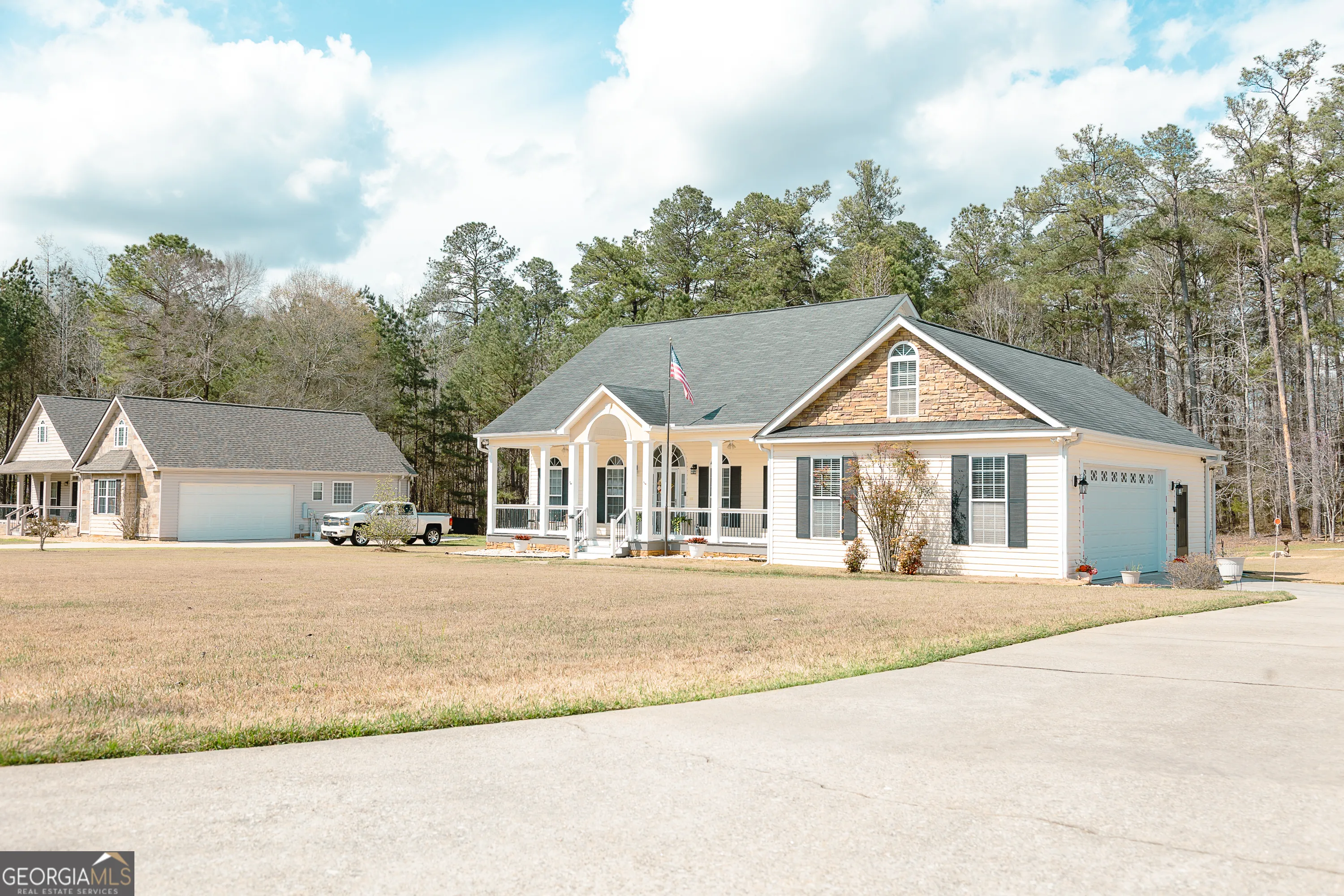 Exquisite 3-bedroom, 2.5-bath home showcasing Timeless Elegance and Exceptional Curb Appeal. This impeccably maintained home offers a sophisticated open-concept design, enhanced by an architectural columns that gracefully define the formal dining space while preserving a seamless flow for modern living. Rich Brazilian cherry hardwood flooring extends throughout the main living areas, complemented by tile in all wet spaces. The inviting living room is anchored by a cozy fireplace and features a well-appointed wet bar, perfect for entertaining. Designed with both style and function in mind, the gourmet kitchen is a true showpiece, boasting expansive granite countertops with bar seating, stainless steel appliances, an appliance garage, a convenient vegetable sink near the stove, designer tile backsplash, and elegant under-cabinet lighting. The luxurious primary suite serves as a private retreat, complete with a tray ceiling, a serene sitting area, and an oversized walk-in closet. The spa-inspired bath offers a jetted soaking tub, marble double vanities, a garden tub, and a separate glass-enclosed shower for ultimate relaxation. Additional features include a dedicated office space and a well-equipped laundry room with a utility sink. Outdoor living is equally impressive, featuring a charming rocking-chair front porch and a screened rear porch. Along with a cemented storage area underneath enclosed by an iron gate, adding both convenience and security. The oversized two-car garage is thoughtfully designed with built-in cabinetry, a sink, and a gas line for a stove adding versatility. Beautiful lush Zoysia grass and a sprinkler system enhance the expansive front and backyard, adding to the home’s appeal. Ideally located near West Point Lake, this remarkable home offers a perfect blend of luxury, comfort, and convenience. Don’t miss this fantastic opportunity! Schedule your private showing today.