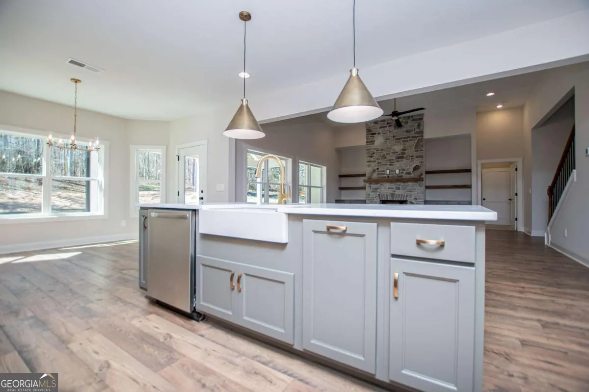 A little bit of country, with a whole lot of style-This 5-bedroom, 4 bath home offers a well-designed layout with the space and functionality today’s buyers are looking for. Situated on 4.14 acres, there’s plenty of room to run and not have the neighbors too close. The main level features a spacious owner’s suite that feels like a true retreat that enjoys a large bathroom, custom tile shower, and plenty of room to relax. A guest suite on the main floor adds flexibility for visitors or multi-generational living. The kitchen is built for both everyday life and entertaining, with quartz countertops, a gas cooktop, double wall ovens, built-in microwave, stainless steel vent hood, dishwasher, and a large island that opens to the family room. The hidden walk-in pantry is a standout feature-practical with just the right amount of character. You’ll also find a separate breakfast nook and dining room, giving you options for both casual meals and hosting. Upstairs includes three additional bedrooms, a Jack-and-Jill bath, another full bath, and a media room that works perfectly as a second living space, playroom, or teen hangout. One of the most functional features of this home-two laundry rooms, with one conveniently located on the main level and another upstairs. Additional upgrades include designer lighting, custom trim work, spray foam insulation, and smart home features. Out back, enjoy a covered patio with an open gable and tongue-and-groove ceiling-ideal for relaxing or entertaining. This home offers the space, layout, and setting that gives you the best of privacy, convenience and usability.