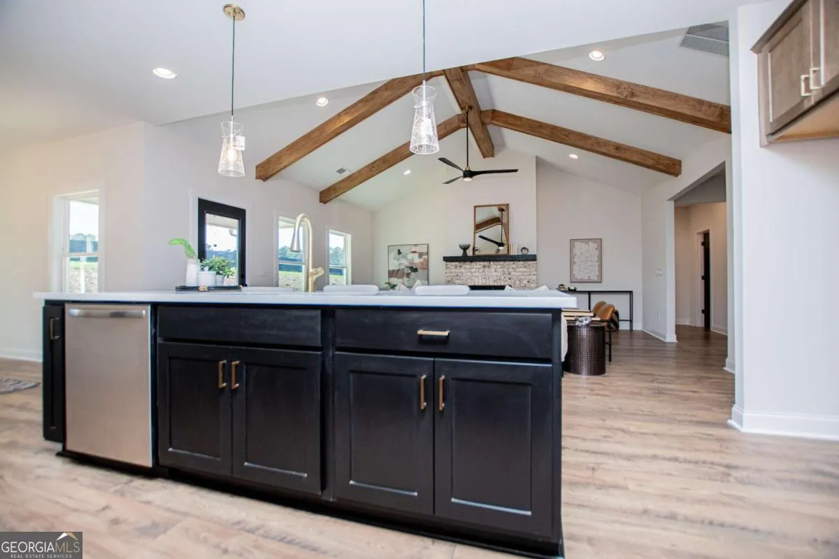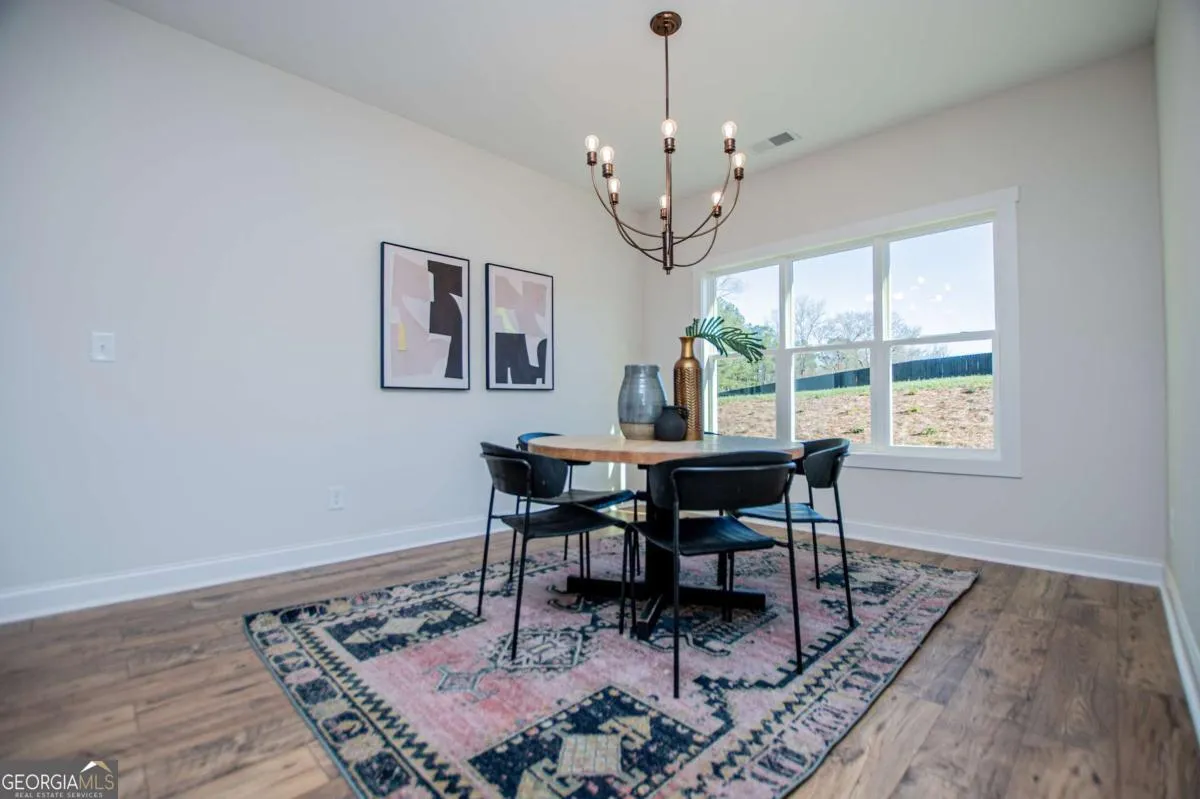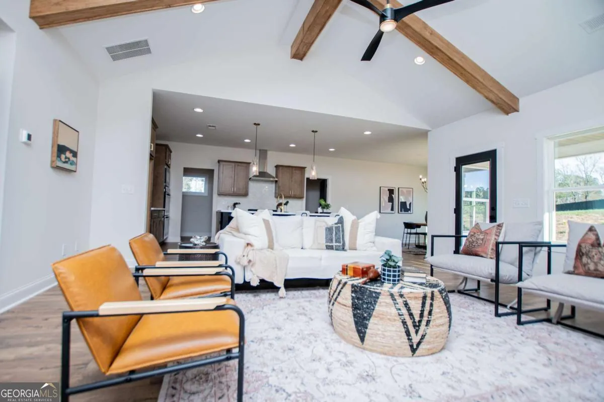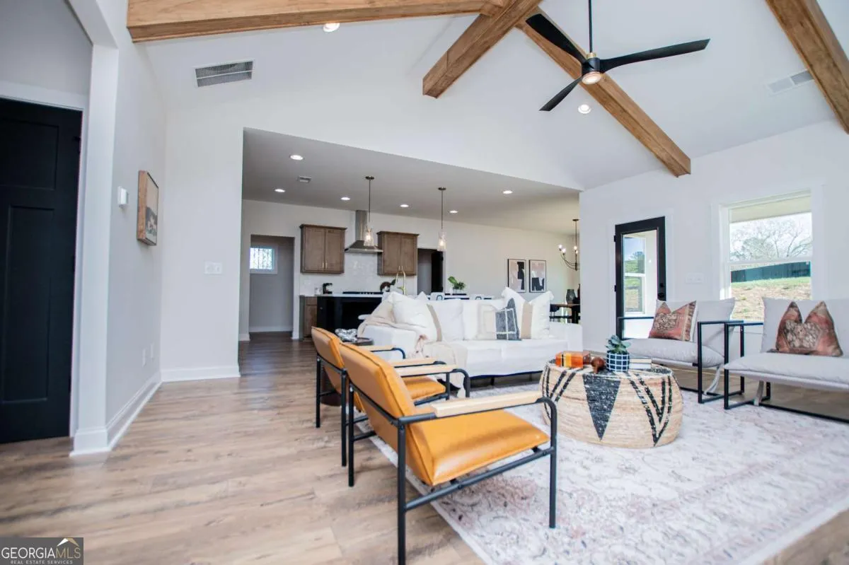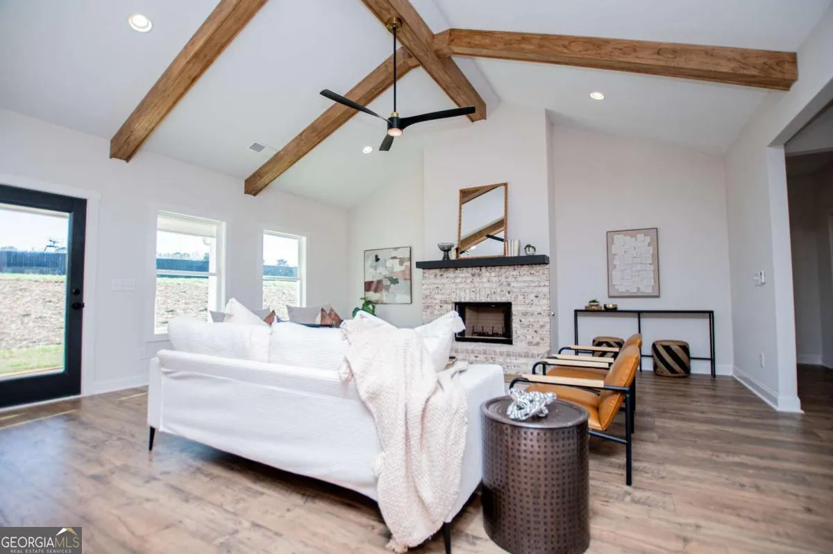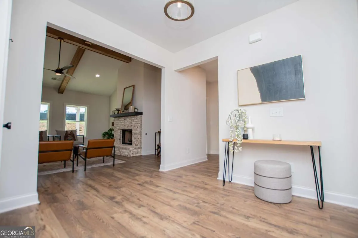 Welcome to this beautiful two-story home perfectly situated on 4.22 private acres, offering the perfect balance of space, comfort, and thoughtful design. This home features Mohawk RevWood flooring throughout the main level common areas along with a hardwood staircase that adds warmth and character. The spacious family room is the heart of the home with vaulted ceilings, exposed beams, and a cozy wood-burning fireplace that helps to create a warm and inviting space to gather. The kitchen is designed for both everyday living and entertaining with quartz countertops, stainless steel appliances, a large central island, and a walk-in pantry. A separate dining room provides additional space for hosting family and friends. A convenient powder room is also located on the main level for guests. The primary suite is located on the main level, offering comfort and privacy. Upstairs you’ll find a large bedroom with its own private bath, along with two additional bedrooms that share a full bathroom. An open loft/bonus area provides the perfect space for a teen hangout, media room, or second family living area. Step outside to enjoy the covered back patio overlooking the peaceful acreage, giving you plenty of room to relax, entertain, and enjoy the quiet surroundings.