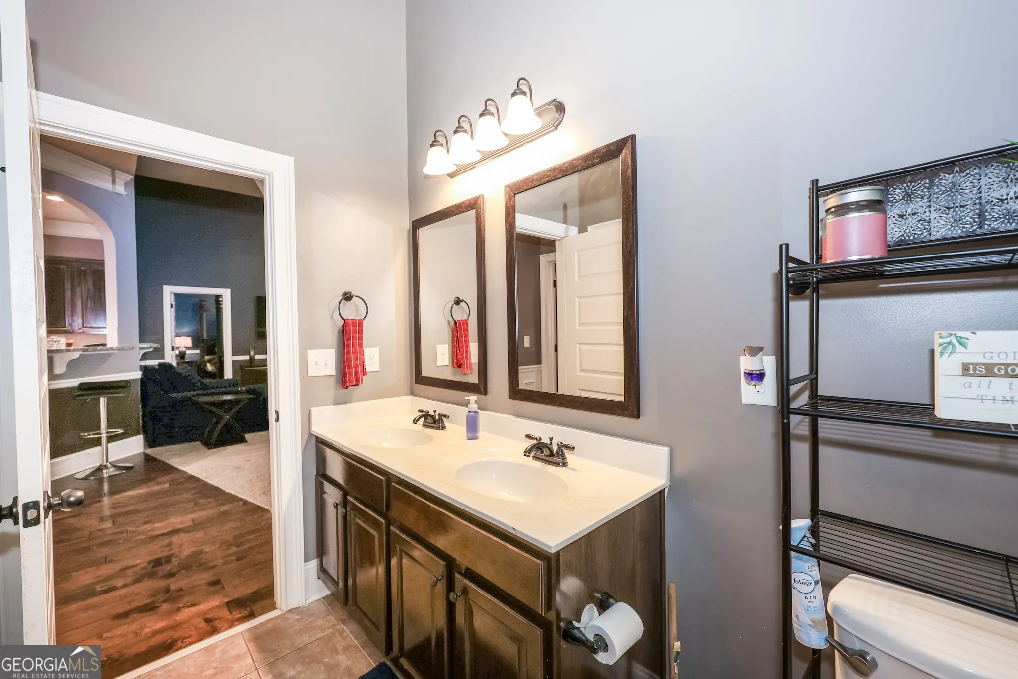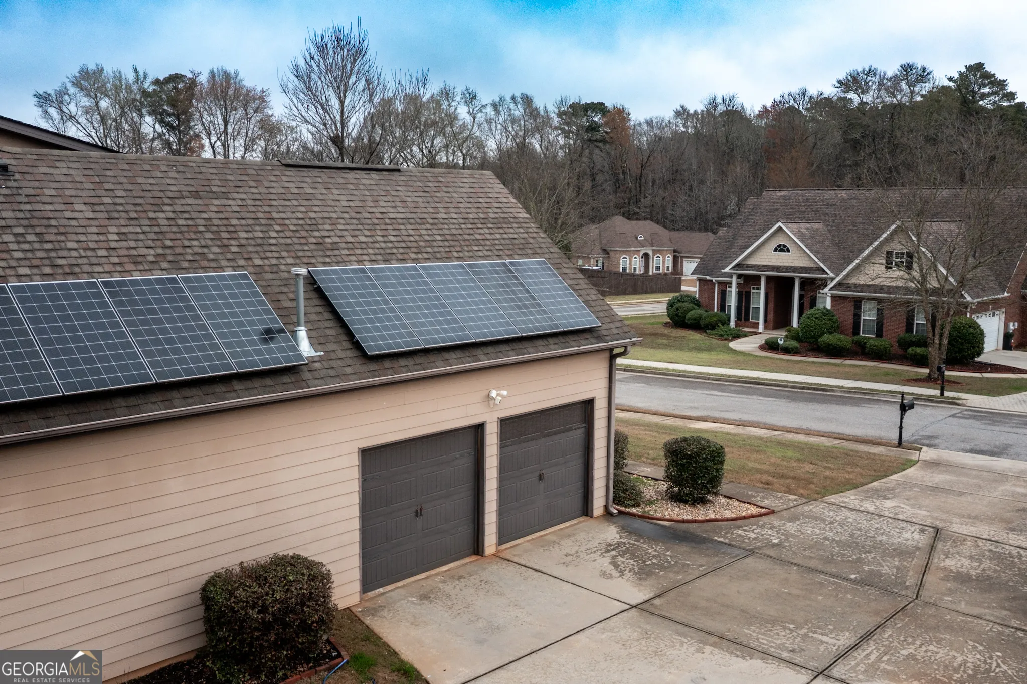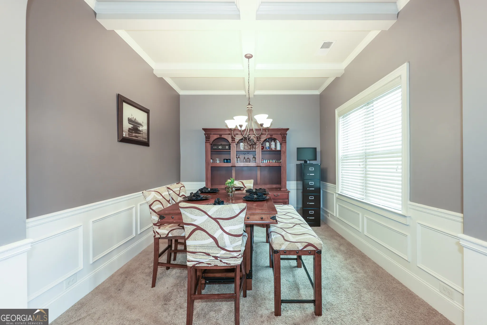 Located in the convenient Legends subdivision and within the highly sought-after Whitewater School District, this beautifully maintained home offers a blend of comfort, style, and convenience-just minutes from the popular South Fayetteville shopping and dining area. There are thoughtful architectural details that make this home stand out, including elegant archways, beautiful trimwork, and a foyer hallway featuring impressive ceiling insets. The formal dining room showcases a stunning coffered ceiling, creating the perfect setting for gatherings. The spacious kitchen is designed for both everyday living and entertaining, featuring hardwood flooring, stainless steel appliances including double ovens, a gas cooktop, microwave, center prep island, pantry, tiled backsplash, and richly stained wood cabinetry. A sunny breakfast area gets the morning sun and the kitchen views open seamlessly to the family room, allowing for easy conversation and connection. The family room comfortably accommodates large-scale furnishings and is anchored by a beautiful stone fireplace, creating a warm and inviting focal point. The main level includes the primary suite, a generous retreat with a crown ceiling and two walk-in closets. The primary bathroom features double vanities with stained wood cabinetry, a relaxing soaking tub, and a separate tiled shower. Two additional sizable secondary bedrooms are also located on the main level and share a full bathroom. Convenience continues with a mudroom entry from the garage and a separate laundry room. Upstairs, a private bedroom with a full bathroom provides the ideal space for guests, a teen suite, or a home office. Outdoor living is just as enjoyable with a screened-in back porch overlooking the fully fenced backyard-perfect for relaxing or entertaining. Solar panels have also been installed to help reduce monthly energy costs. With its spacious layout and prime location close to shopping, dining, and top-rated schools, this home offers exceptional value in one of Fayette County’s most desirable areas.