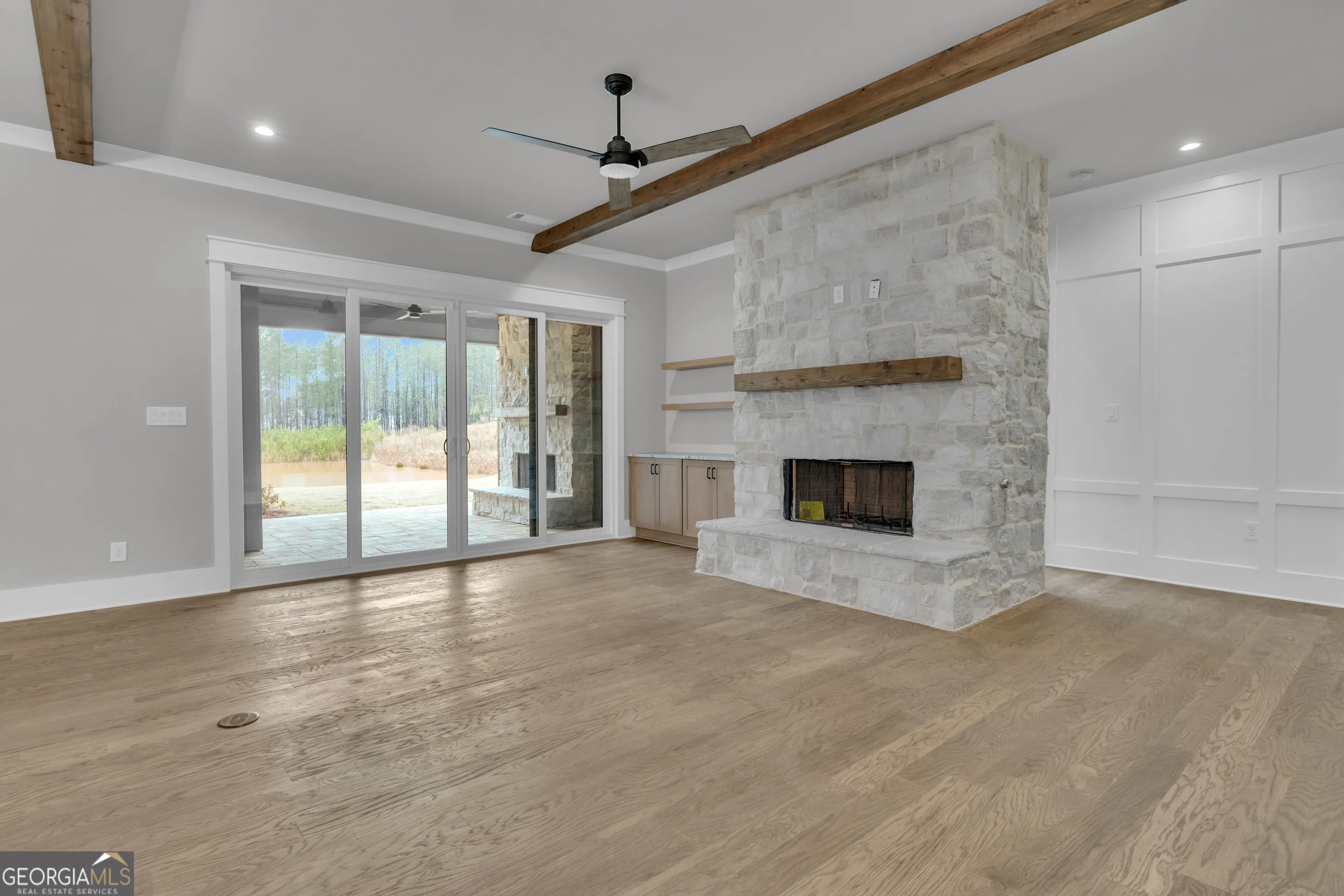 $20,000 Builder Incentive!!! Constructed by Johnston Homes, this classic farmhouse design is nestled into the quiet serenity of Senoia in the Grafton Subdivision. Your new home has been professionally designed with stone accents and a front porch with cedar columns. The grand entrance opens into the spacious living, dining and kitchen areas. The fireplace has a full height stone surround, complimented by rustic beams in the ceiling. Appointed with solid wood cabinetry, lasting for years to come. The kitchen is equipped with a stainless steel gourmet appliance package including electric smooth glass cooktop, wall oven, microwave and a low profile dishwasher. Custom granite and quartz countertops in the kitchen, laundry and baths. Enjoy the warmth of hardwood floors throughout all living areas, bedrooms as well as closets. The primary bedroom boast a cathedral ceiling with rustic beams, ensuite spa bath with both rain head and handheld showers and freestanding soaker tub. The owner suite also offers private access to the covered back porch with an outdoor fireplace, counter top and prep sink for ease when grilling. Plenty of space for family and guest with an additional guest bedroom with ensuite bath and powder room on the main level. The second level features a loft, two bedrooms, two baths and a playroom / bonus area. All baths and laundry are adorned with modern black plumbing fixtures. A three-car garage gives ample room for cars and golf cart that has an entrance into a drop zone area with wainscoting and a built in mud bench. Not only will you love living in Grafton, but you have an option to join The Reserve at Keg Creek HOA ($350) and have access to all their amenities which include a pool, pickle ball courts and nature trails! Quick golf cart ride to downtown Senoia which has several stores to shop in and a variety of places to eat! Come out and take a look today!!