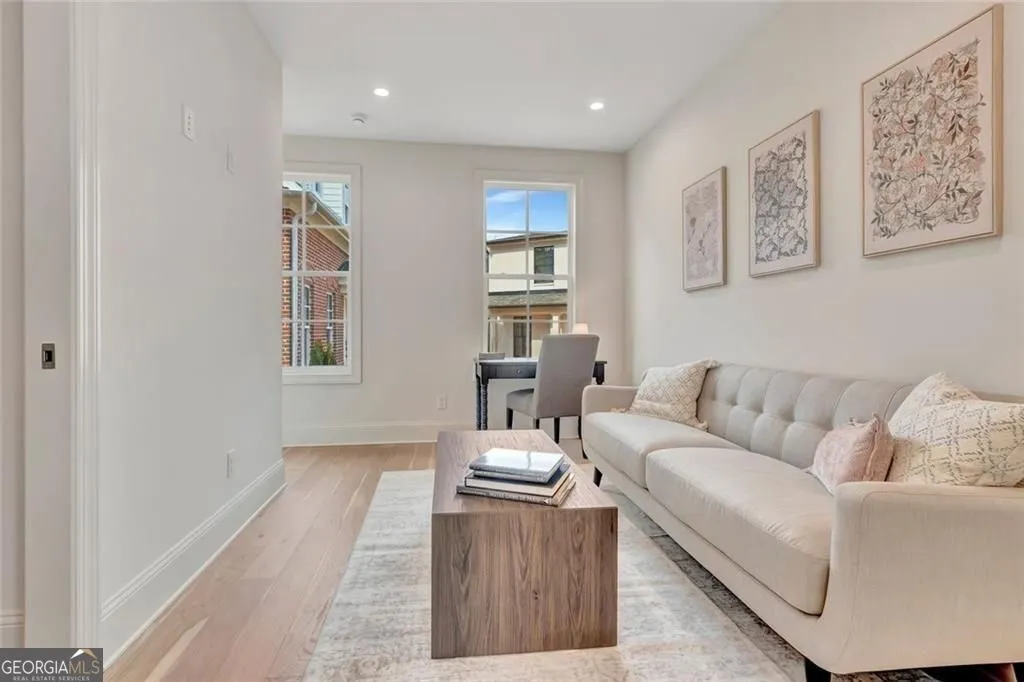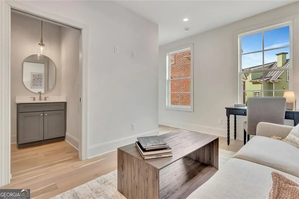 This charming, new construction 3-bedroom, 2.5-bath cottage home in Gin Property offers a perfect blend of modern comfort and small-town charm. Overlooking a beautifully landscaped courtyard with a cozy firepit, this home features a light-filled open main level that includes a comfortable seating area, dining space, and kitchen. The dining area is thoughtfully positioned at the heart of the main floor, creating a welcoming and intimate space for entertaining friends. Also on the main level is the spacious primary suite, complete with a large closet and full bath, along with a convenient stackable washer and dryer closet. Upstairs, two additional bedrooms provide ample closet space and share a stylishly tiled bath with a walk-in shower. The home is energy efficient with spray foam insulation in the attic. Parking is made easy with a dedicated space for both a car and a golf cart, and there’s plenty of street parking for guests. Located in a picturesque community with sidewalks and a quaint streetscape, this home is just steps from the historic town of Senoia. You’ll love the convenience of nearby boutique stores, restaurants, and the vibrant “Alive After Five” monthly event, along with various community gatherings throughout the year. This home offers the perfect setting for enjoying both a modern lifestyle and the charm of small-town living. Pictures and video are from a sold home. Don’t miss this opportunity at The Cottages at Gin Property