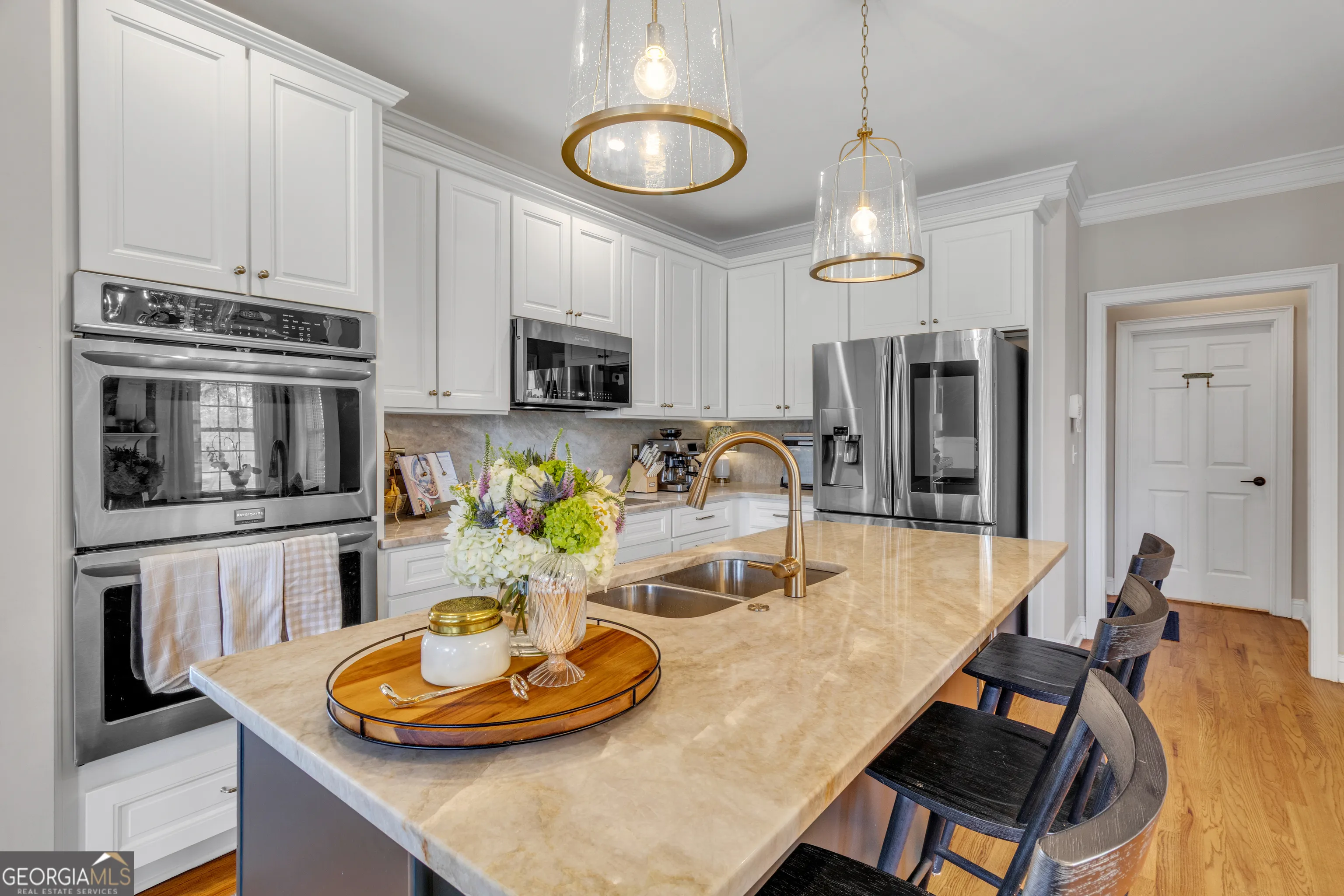 Welcome to your new dream home, located on 1.6 acres in the prestigious Lake Park community. Transformed in the last year from top to bottom, this designer home is sure to check every box on your list. The spacious first floor features a library with gas fireplace and custom built-ins, a playroom/office, newly remodeled full bath with marble flooring and countertops, light-filled dining room, two story living room with a second gas fireplace and outdoor deck access, and the laundry room. Also on the first floor, the completely remodeled kitchen is outfitted with Taj Mahal quartzite countertops and full height backsplash, and a new chef-approved, induction stovetop. Up the extra wide staircase you will find 4 bedrooms and 3 bathrooms. The master suite boasts his and hers walk-in closets, a seating area, space for a coffee bar, and a newly remodeled en suite with a luxurious glass shower, soaker tub, marble floors, custom vanities, and plenty of storage. The hall bathroom has also been recently remodeled. The fully finished walkout basement is your own personal staycation, only a few steps away. Designed in shades of blue and white, the calming retreat offers an additional bedroom with 2 large closets and an en suite bathroom. The kitchen boast a sizeable island, full size refrigerator/freezer, and plenty of counter space for entertaining. A media room, workout room, and large storage closet complete the space. Just outside is your very own pool and hot tub, with plentiful surrounding hardscape for tables and lounge chairs. The setting is peaceful and picturesque, featuring mature landscaping and enough space for a football game. The home has a new roof, new furnaces, new decking, fresh paint, freshly resurfaced pool, updated chimneys, tankless water heater, and much more. The Lake Park neighborhood is quiet and serene, featuring resident lake access, and close proximity to all necessary amenities. Piedmont Fayette and Piedmont Newnan hospitals are within 20 minutes, shopping, restaurants/Trader Joe’s(!) at The Avenue are a mere 10 minutes away, and Trinity Christian School is a quick 6 minute drive. The ATL airport is also conveniently located for those who travel often.