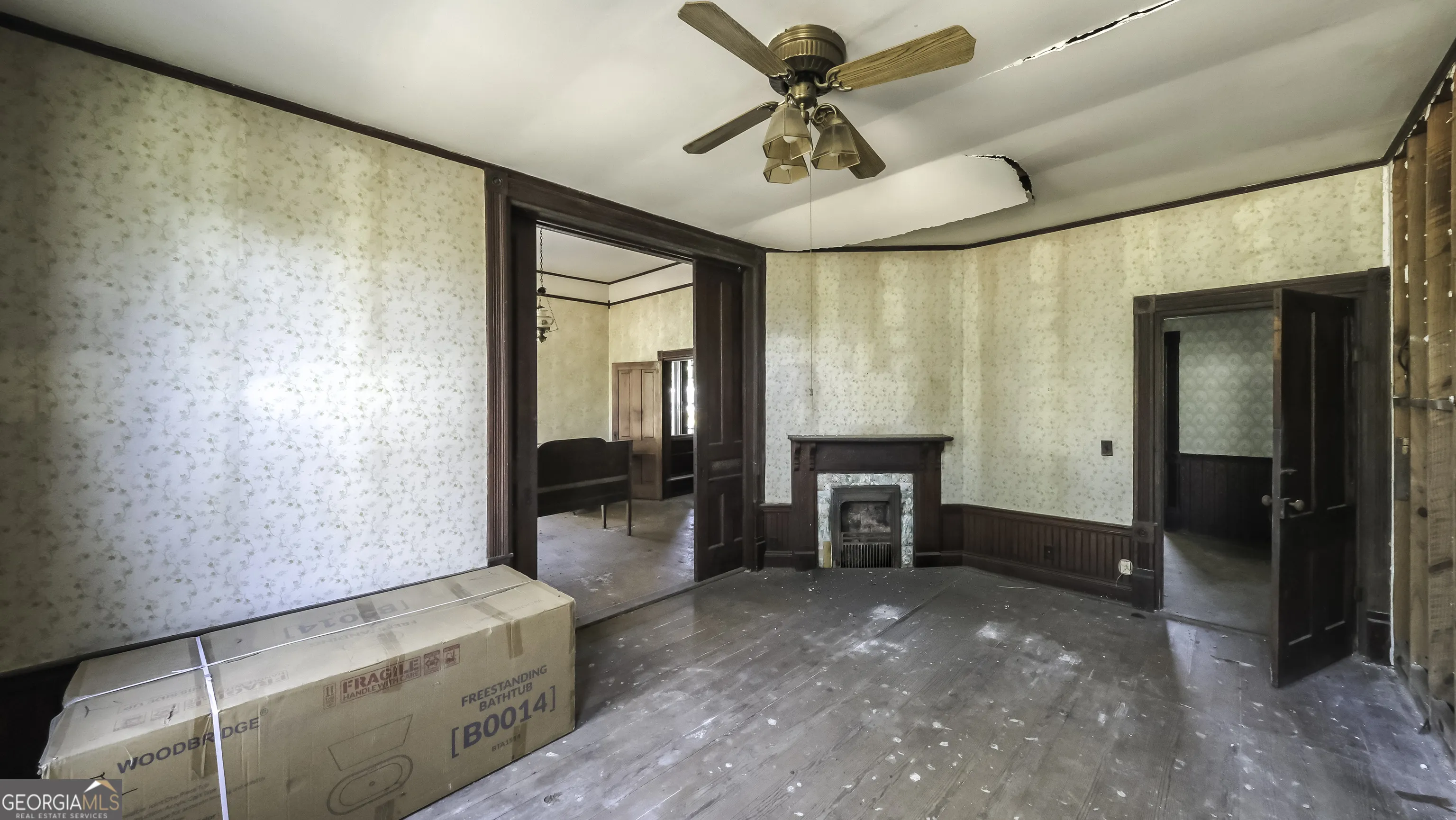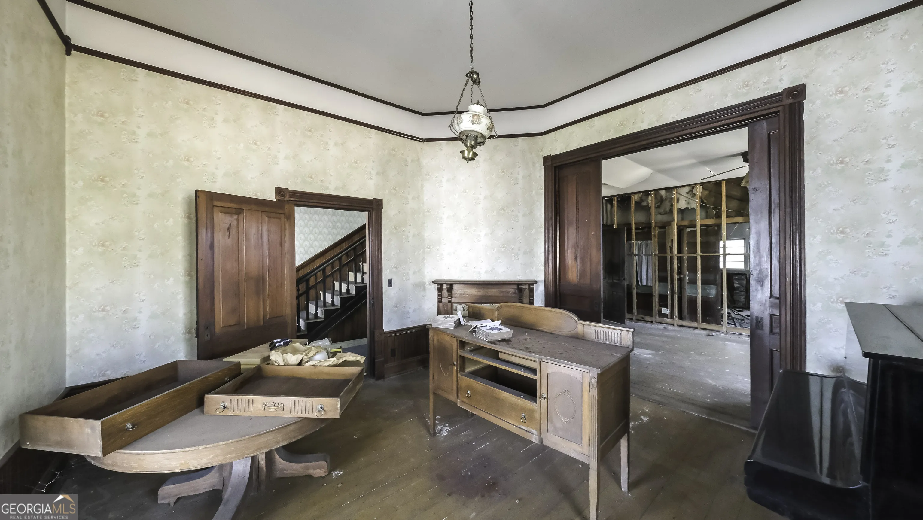 This lovely historical home was built by William C. Adamson, the man that Adamson Square was named after. The Folk Victorian style architecture includes classic design elements such as a hipped roof with a central cross gable; decorative bargeboard trim; a two-story front porch; ornate spindlework columns and spandrels; and a porch that stretches across the front facade. This home requires a full renovation. Use caution when showing.