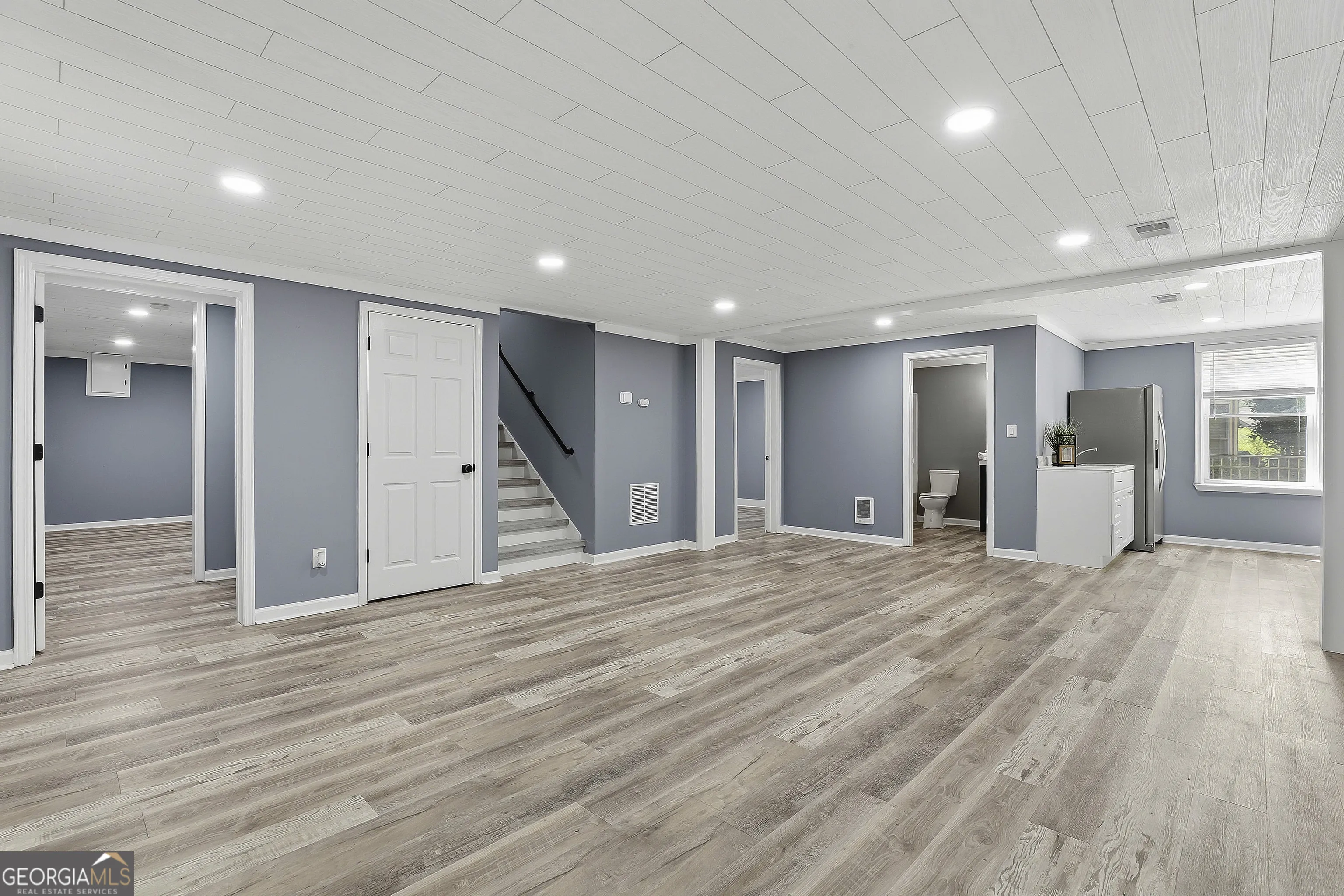 SPECTACULAR BEYOND WORDS – TOTALLY UPDATED, ‘COOL LOOK’ HOME w/ FINISHED BASEMENT on QUIET DBL CUL DE SAC STREET! This is a must see w/ features beyond compare. NO Carpet – all hardwoods throughout & LVP in Basement. Fresh paint & gorgeous NEW lighting/fans throughout. Enjoy Formal Dining & Living rms w/ cozy reading nook. Updated Kitchen w/ granite counters, NEW SS Appliances inc Frig, ctr Island & B’fast bar. Office niche for mail/laptop. Breakfast rm opens to back Deck w/ stairs to below. Dazzling open Family rm w/ wall of windows, built ins & gas log FP. Guest Bedrm w/ french doors on main & full bathrm, works great as ‘work from home’ office. Hardwood treads & iron spindle stair case lead to expansive Primary Bedrm w/ hardwoods & full renovated, “showcase Bathrm” w/ free standing tub, lg tile shower, quartz vanities & more – WOW! 2 more secondary Bedrms w/ updated bathrms + open Loft w/ built in Desk. All have Walk in Closets! Imagine the possibilities w/ the Finished Basement featuring lg Rec rm, Lg Bedrm & full Bathrm, Kitchenette w/ sink & multipurpose/storage room. Daylight Basement opens to patio out back & fully fenced yard w/ gates on each side. Lawn area & shade trees in back. Enjoy side entry Garage w/ EV Charger, lg parking pad, long driveway & decorative metal mailbox. NEWer Roof-2015, NEWer HVAC-2018, Hot water Heater-2014. Just minutes to 100 Acre Lake Summergrove & enjoy Summergrove’s other fabulous amenities to include 3 Pools, Tennis, Pickleball, Golf Course, Club House & Sidewalks! Quick access to The Linc Walking Trail, shops/restaurants of Ashley Park, Hospital, I-85 and Atlanta Airport.