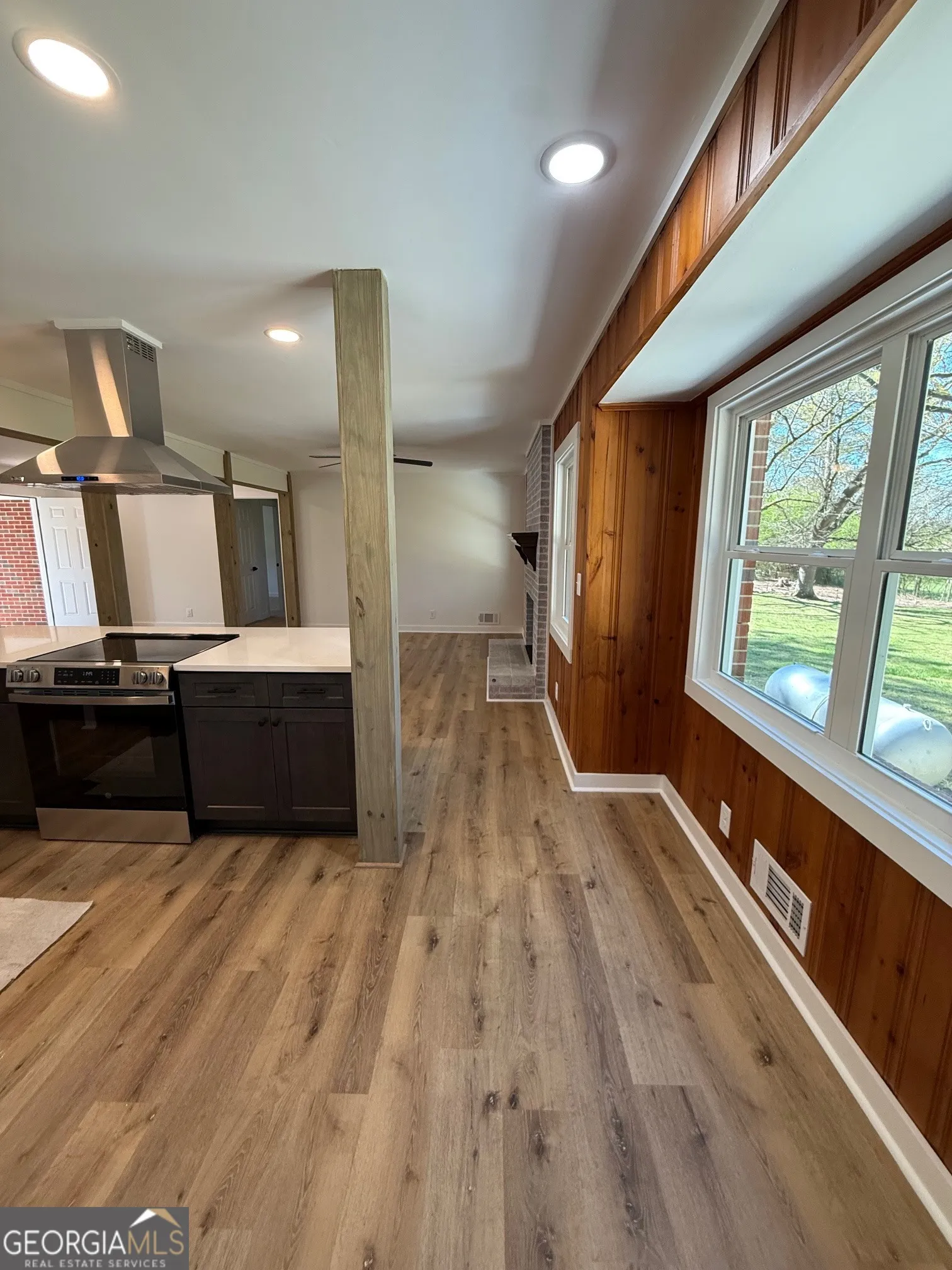 Completely reimagined from top to bottom, this 1962 home offers the feel and function of new construction with the character of an established setting. With a near full-scale renovation, the effective age of the home is essentially new, giving buyers peace of mind. This one-level home features 3 bedrooms, 2 full bathrooms, and approximately 1,510 square feet of thoughtfully updated living space. The main living area has been opened up to create a true open concept layout, where the former formal living and dining rooms now connect seamlessly with the den and kitchen, forming one spacious, flexible living area. A nod to the home’s original character has been preserved through the pine judges paneling that accents the walls, adding warmth and charm. The kitchen anchors the space with a large island and breakfast bar, brand new stainless steel dishwasher, range, and vent hood, and a brick fireplace with gas log hookup already in place adds additional character. Updates include new vinyl double pane windows, brand new HVAC system and ductwork, new LVP flooring throughout the kitchen, living area, and laundry room, and new carpet in all bedrooms. Both bathrooms have been fully gutted to the studs and rebuilt, complemented by new lighting and fresh paint throughout the entire home. Additional features include a keyless coded front entry, updated columns on the front porch for a modernized exterior, an attached one-car carport, a brand new back patio, paved driveway, and recently upgraded well equipment. The home is serviced by a septic system and is currently under termite bond, with a moisture barrier installed within the last 1.5 years. Located outside of city limits, this property offers added flexibility while still being just minutes from Pebblebrook Golf Club and Grill and convenient to the county’s largest grocery store, Ingles. With neighbors on only one side, privacy abounds. Properties like this are in high demand this spring, so don’t wait! Schedule your showing with your preferred realtor today. Buyer note: While the home is currently serviced by a well, public water is available at the road. Seller will not be responsible for connecting to public water for buyer financing purposes. Buyers are encouraged to consult with their lender to confirm requirements.