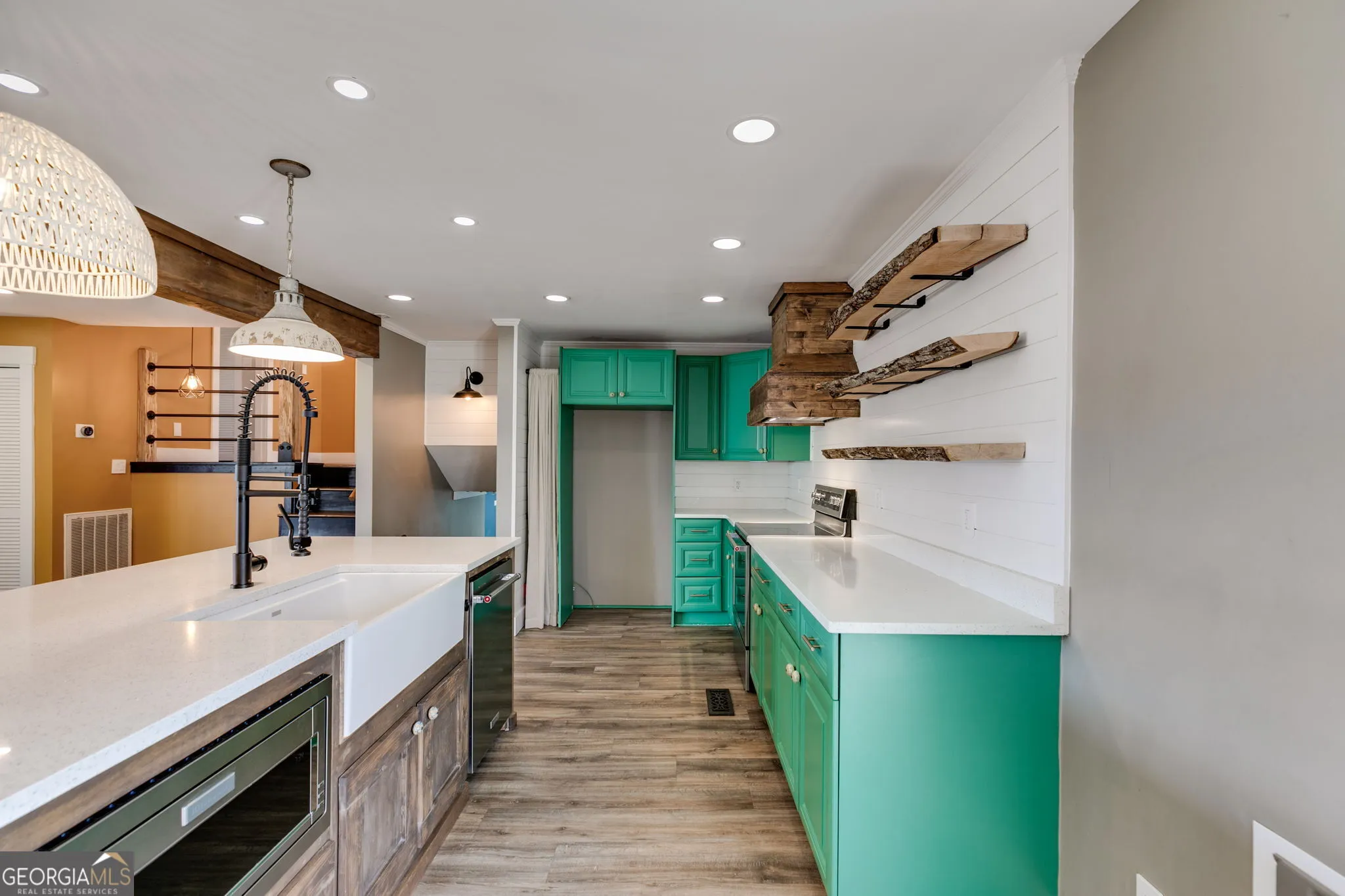 Nowhere Else in Villa Rica-Fully Renovated 4BR Home on 1.5 Acres with Finished Basement for $394K! Start the year with a rare find-a fully renovated 4-bedroom, 3-bathroom home with a finished daylight basement and 1.5 private acres just minutes from I-20, Villa Rica, and all the shopping and dining the area has to offer. At $399,000, it’s the best blend of space, style, and value on the market. Inside, the light-filled, open-concept layout is designed for both everyday living and entertaining. The spacious family room features a wood-beamed ceiling, cozy fireplace with custom built-ins, and oversized windows that bring in natural light and backyard views. The standout kitchen brings bold character with green shaker cabinets, quartz countertops, stainless steel appliances, a farmhouse sink, open shelving, and a custom wood vent hood. The oversized island offers extra storage and bar seating-perfect for your morning coffee or weekend brunch. On the main level, you’ll find three generously sized bedrooms, including a serene primary suite with a spa-like ensuite featuring subway tile, dual rainfall shower heads, a vessel sink, and modern fixtures. A second full bath completes the main level with updated lighting and designer finishes. The finished walk-out basement adds 902 additional square feet of flexible living space with a fourth bedroom, full bathroom, large bonus room, and a storage area-plus rustic touches like shiplap walls and a corrugated metal ceiling. Ideal for a home office, gym, guest suite, or media room. Outside, the backyard is a true retreat, complete with fruit trees, grapevines, garden space, and a custom-built fire pit. A matching storage shed (white with black trim) offers space for tools, hobbies, or a workshop. Beyond the garden, a large cleared area tucked at the back of the property offers even more potential-whether you dream of a future pool, detached garage or workshop, backyard games, or even a mini orchard or chicken coop, there’s room to bring your vision to life. If you’re looking for move-in ready living with acreage, updates, and convenience-you won’t find anything like this at $399K in Villa Rica. At the end of the gallery, you’ll find virtually staged photos illustrating a creative vision for maximizing privacy and outdoor enjoyment. Schedule your private showing today and make 2026 your year of smart moves!