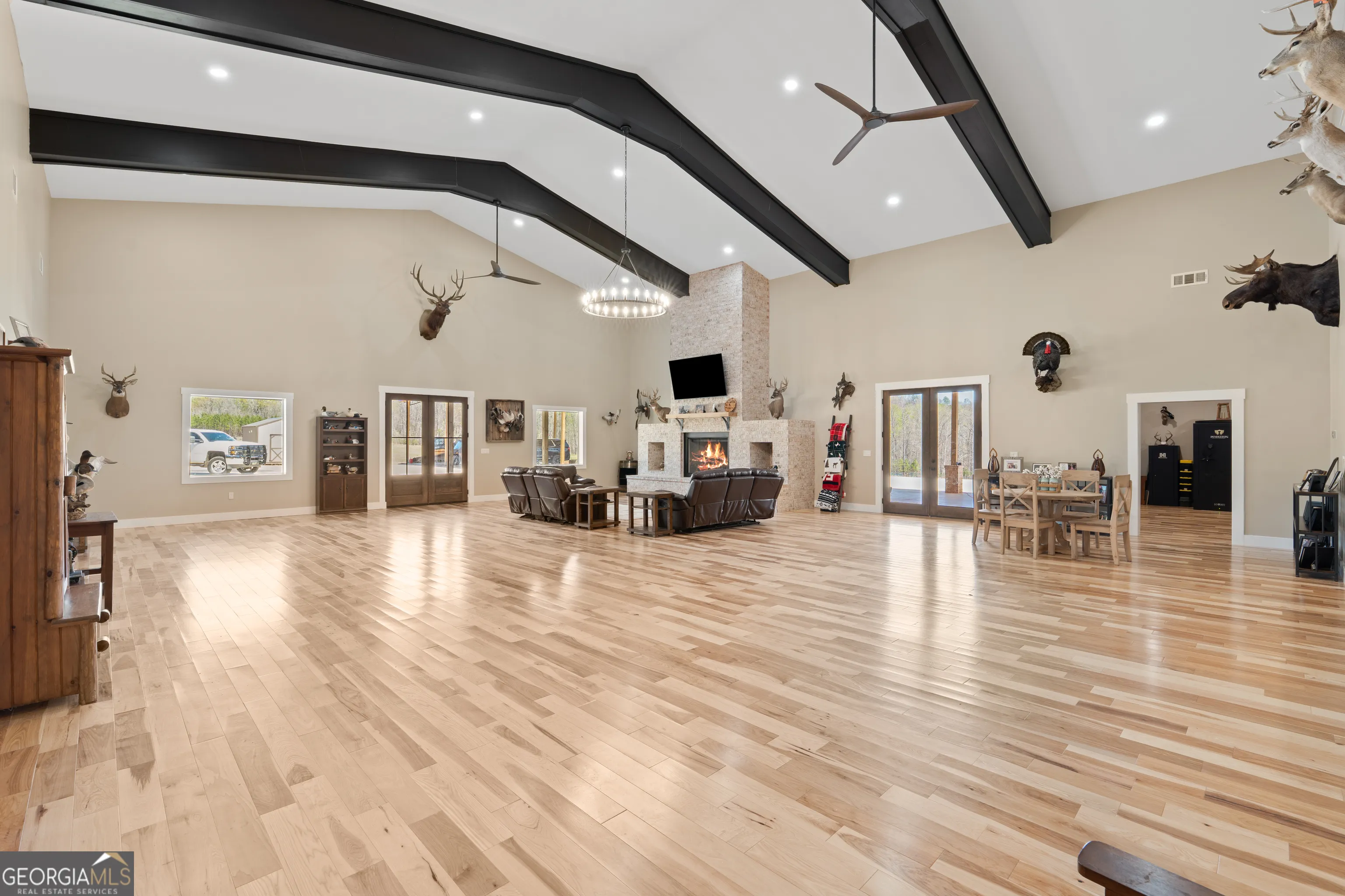 *Motivated Seller! Bring all offers to the table!* Stunning custom-built barndominium on 92.57 acres in Woodbury offering the perfect blend of luxury living and recreational land. Built in 2025, this 7,067sq ft home features 5 bedrooms, 4.5 bathrooms, and thoughtfully designed living spaces throughout. Interior highlights include a spacious living room with a massive fireplace, chef’s kitchen with commercial-grade appliances, dedicated l office, and a secure gun safe room. The primary suite offers a large walk-in shower, and the home is equipped with a tankless water heater for modern efficiency. Exterior features include a covered front porch, concrete driveway with turnaround, and a 2,160 sq ft pole barn ideal for storage, workshop, or equipment. The 92.57-acre tract is a diverse mix of open pasture and mature woods, complete with established deer food plots and a duck swamp-perfect for hunting and outdoor recreation. Conveniently located just 28 miles from Senoia, 13 miles from Warm Springs, and 25 miles from Pine Mountain, this property offers privacy with easy access to nearby towns and amenities. A rare opportunity to own a turnkey rural estate with premium features and exceptional land.