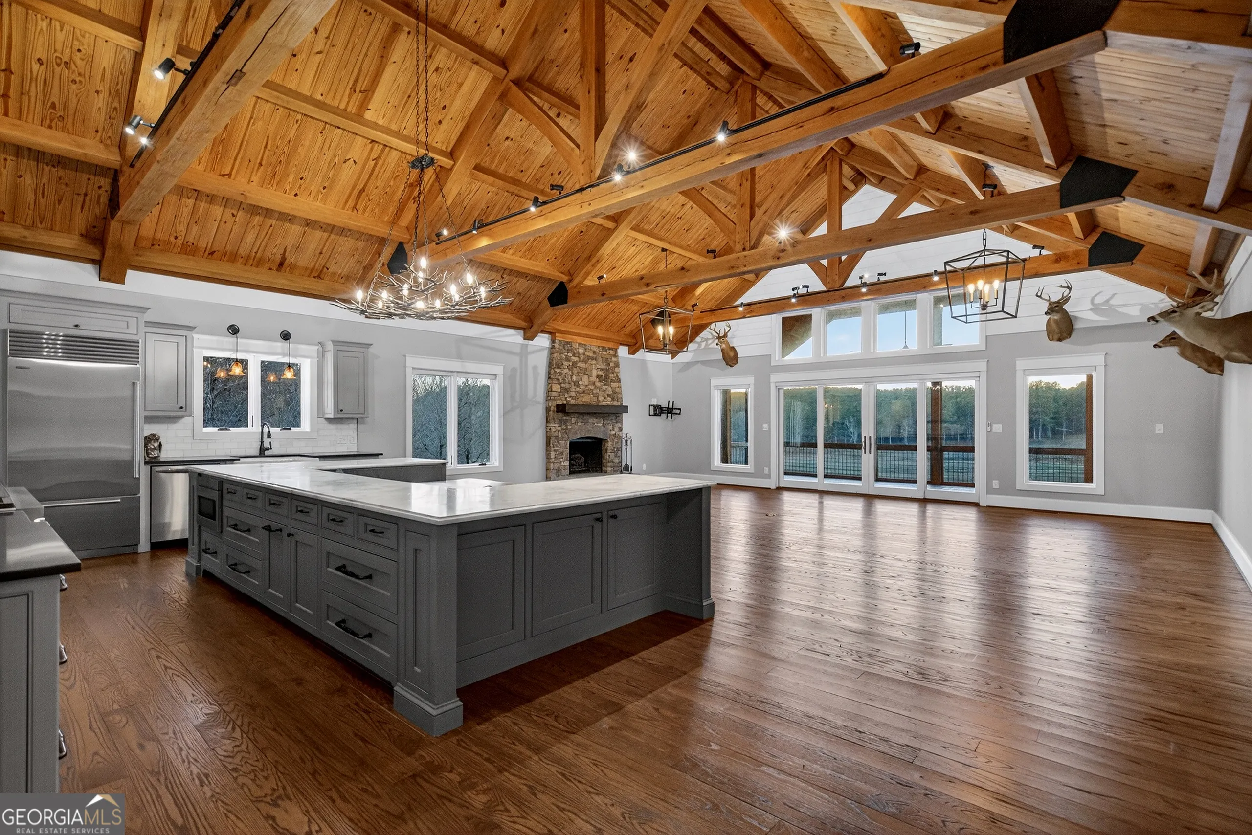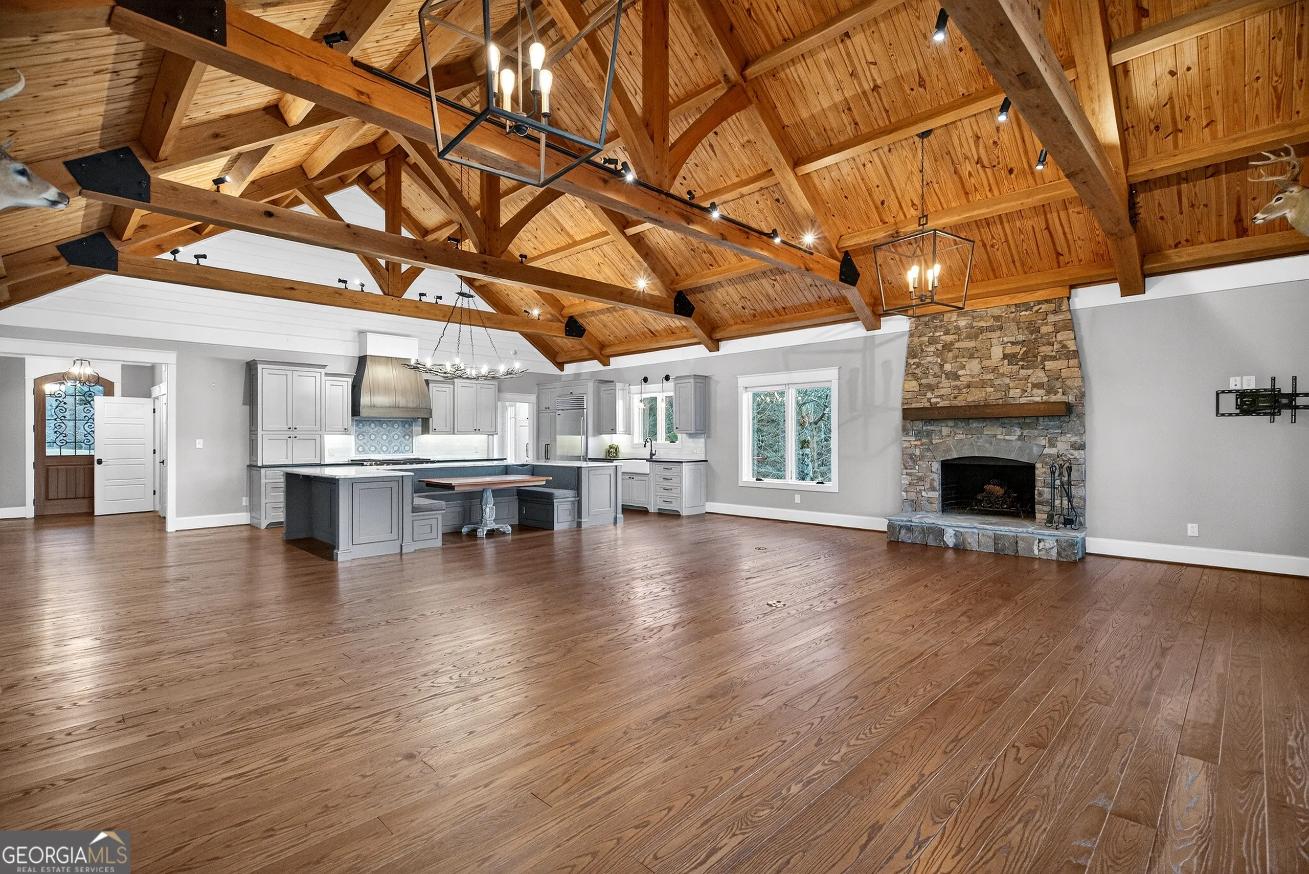 The pristine setting of this extraordinary 550+/- acre farm at 175 Thornton Road in Franklin, Georgia blends the comfort of a finely finished home with the rare freedom that only wide-open land can provide. Thoughtfully designed for both everyday living and private retreat, the home features an open floor plan, multi level screened-in back porch & open deck with panoramic waterfront views, second full kitchen in the basement, reinforced safe room, and attached two-car garage – all coming together to create a property that feels as functional as it is peaceful. Inside, the residence offers 3 bedrooms and 3.5 baths across approximately 4,166 square feet, providing room to spread out while still maintaining a warm, inviting feel. Hardwood floors run throughout the main living areas, adding continuity and character, while the kitchen showcases quartz countertops, abundant workspace, and a layout built for cooking, gathering, and entertaining. The flexible floor plan easily adapts to hosting guests, working from home, hobbies, or multigenerational living, giving you the freedom to live the way you want today while leaving room for whatever comes next. Step outside and the true scale of the property begins to unfold. The 550 +/- acres, highlighted by a stunning 20-acre private lake, create a setting that supports a rural lifestyle in a way few properties ever can. An extensive, well-maintained internal road system allows you to move throughout the land with ease, whether for recreation, farming, hunting, or simply enjoying the quiet beauty of the surroundings. Improvements across the property make it truly one-of-a-kind, including a large pole barn, scenic waterfall feature, man-made beach, lakeside fire pit, and multiple gathering areas designed to enjoy the outdoors year-round. Every element has been placed with intention, creating a rare sense that the home, the land, and the improvements all belong together. Properties of this size and quality rarely come available. 175 Thornton Road offers the opportunity to own a farm that delivers both unmatched scale and everyday livability – a place where privacy, comfort, and nature exist in perfect balance.
