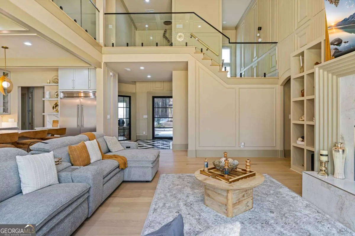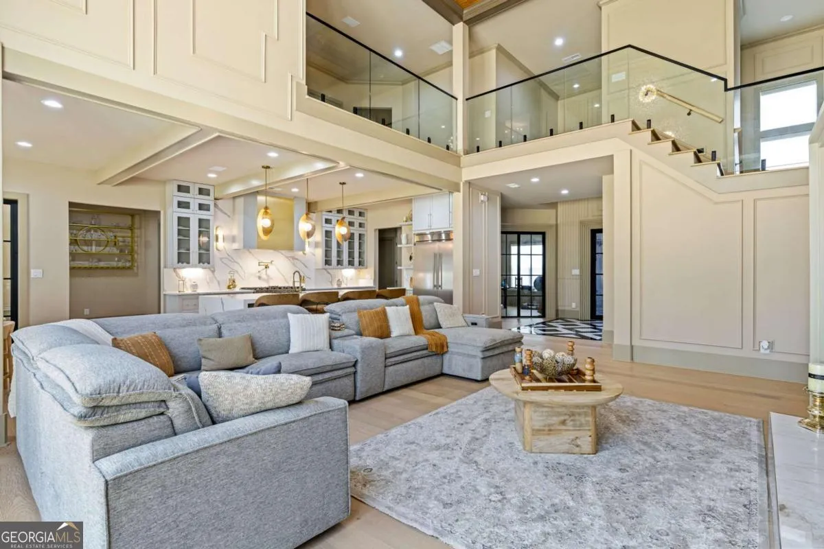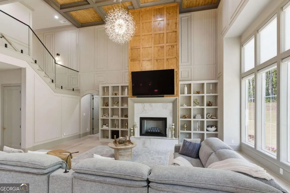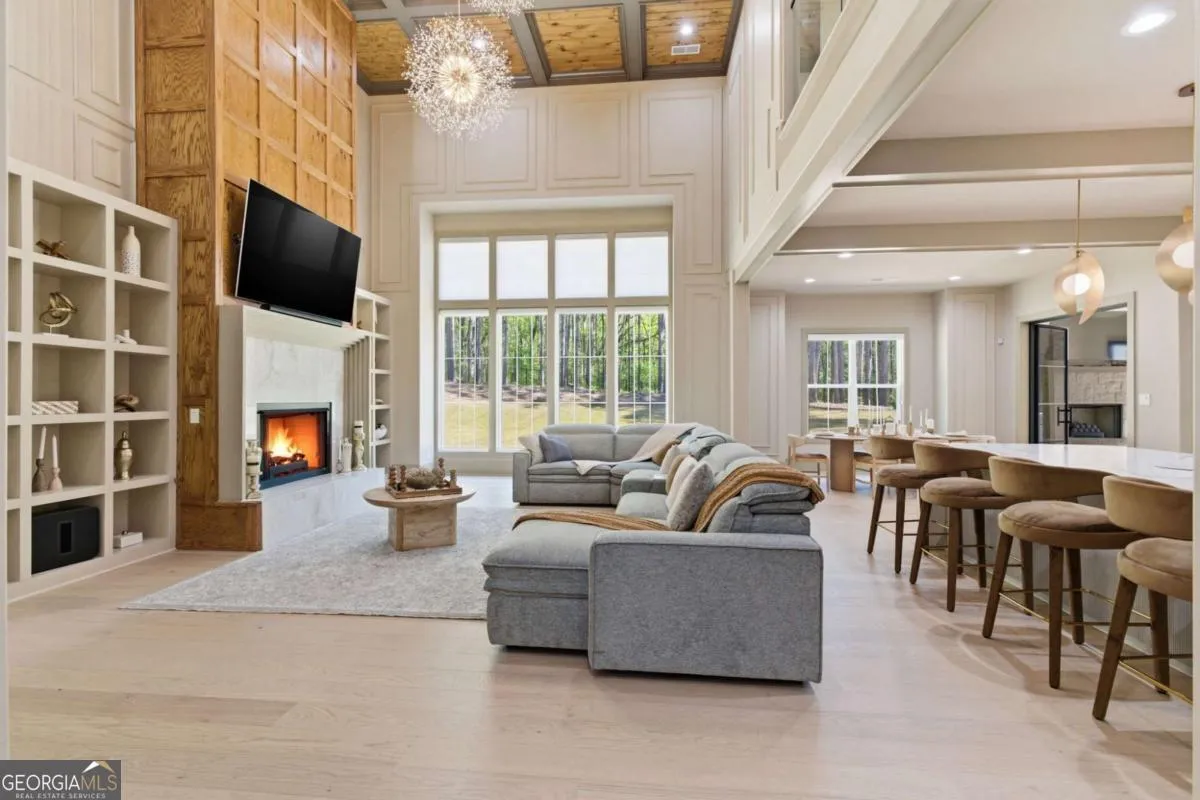 A newly completed private estate in the esteemed River Oaks. This grand residence sits on 2.79 acres and offers approximately 7,125 square feet of refined living space with 6 bedrooms and 4.5 baths. The main-level primary suite is a true retreat, featuring a private sitting room, a fireplace in the luxurious primary bath, and a convenient wet bar. The chef’s kitchen showcases an oversized island, custom hood, and an adjacent scullery that functions as a fully equipped secondary kitchen with additional appliances and storage. A library and a beautifully crafted stone four-seasons room further expand the home’s elegant entertaining spaces. Outdoor living is elevated by a covered patio with a full outdoor kitchen overlooking the landscaped private gardens. A four-car garage includes a heated bay ideal for a home gym and provides secondary access to the upper level via a custom-designed staircase or the luxury elevator. Five spacious bedrooms are located upstairs, including a suite perfectly suited for in-law living or use as a second primary with private access. The flexible sixth bedroom offers endless possibilities-music studio, art studio, photography suite, office, or more. Ideally situated minutes from the Hartsfield-Jackson Atlanta International Airport and just a short drive to the vibrant dining and entertainment of Town at Trilith and the neighboring Trilith Studios.