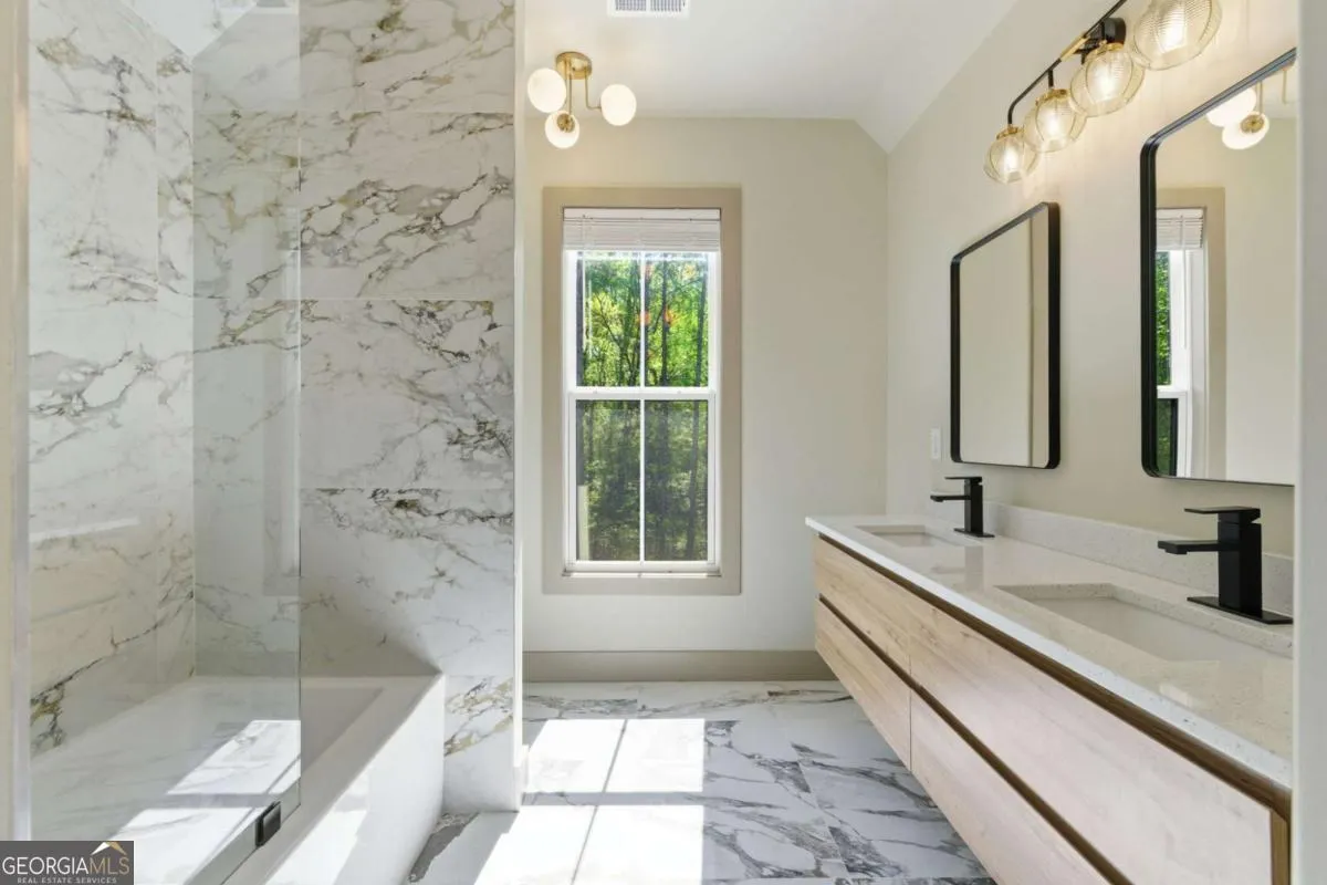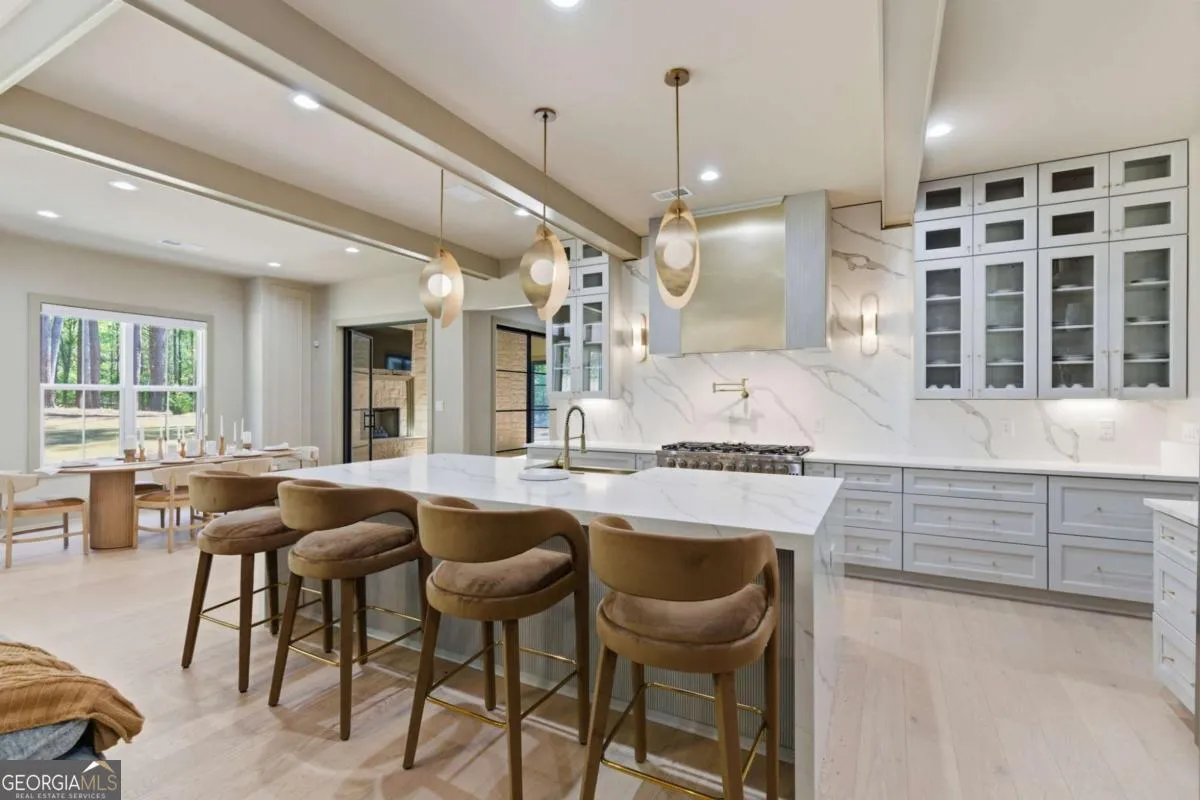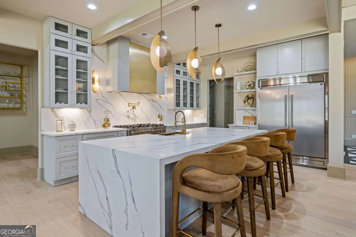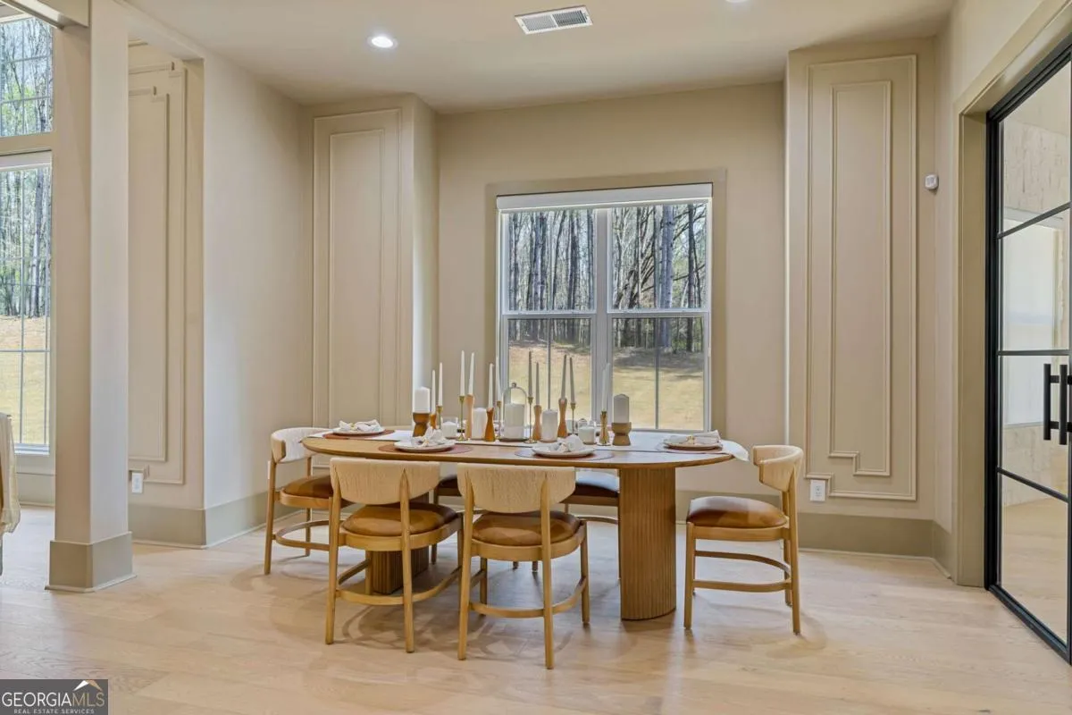 A newly completed private estate in the esteemed River Oaks. This grand residence sits on 2.79 acres and offers approximately 7,125 square feet of refined living space with 6 bedrooms and 4.5 baths. The main-level primary suite is a true retreat, featuring a private sitting room, a fireplace in the luxurious primary bath, and a convenient wet bar. The chef’s kitchen showcases an oversized island, custom hood, and an adjacent scullery that functions as a fully equipped secondary kitchen with additional appliances and storage. A library and a beautifully crafted stone four-seasons room further expand the home’s elegant entertaining spaces. Outdoor living is elevated by a covered patio with a full outdoor kitchen overlooking the landscaped private gardens. A four-car garage includes a heated bay ideal for a home gym and provides secondary access to the upper level via a custom-designed staircase or the luxury elevator. Five spacious bedrooms are located upstairs, including a suite perfectly suited for in-law living or use as a second primary with private access. The flexible sixth bedroom offers endless possibilities-music studio, art studio, photography suite, office, or more. Ideally situated minutes from the Hartsfield-Jackson Atlanta International Airport and just a short drive to the vibrant dining and entertainment of Town at Trilith and the neighboring Trilith Studios.