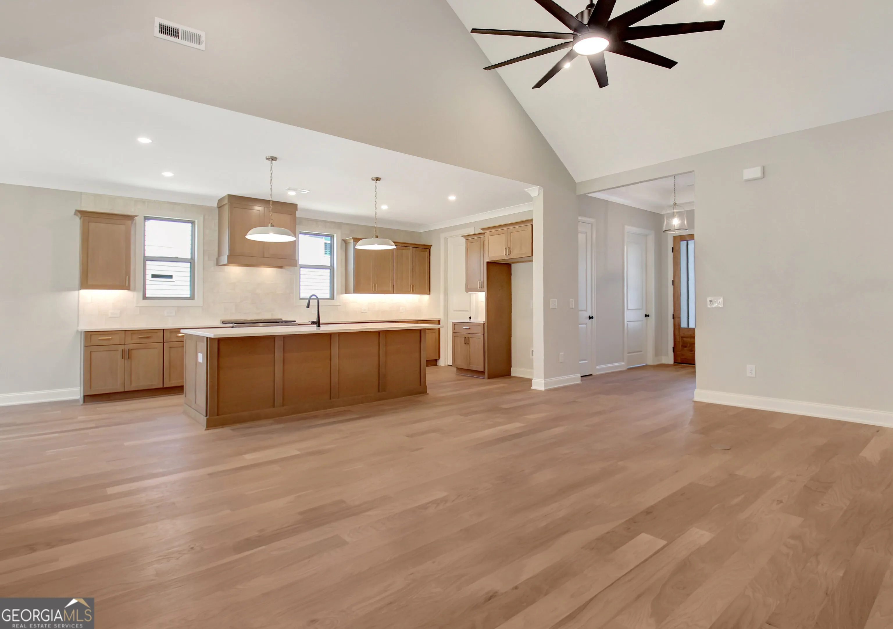 Our last RANCH opportunity in Phase II of The Reserve at Keg Creek Landing is finally here. Sitting on Lot 117, this home checks all the boxes for homeowners searching for One-Level Living. Greeted by a covered front porch and Board and Batten Hardie siding, a spacious entry welcomes you to the dramatic Bartlesville plan. Open concept Great Room with Vaulted Ceiling features a Stone Floor to Ceiling Gas Start Fireplace with stained Wood Mantle. The kitchen is a showstopper with Timber colored Soft-Close Cabinetry, Tiled Backsplash, Large Island with Trash/Recycle Drawer, expansive Quartz Countertops, single bowl Stainless Steel Sink, Professional Six Burner Gas Range and huge Walk-In Pantry with two-toned Site-Built Shelving and Cafe Area. Gaze at the private backyard from the oversized Eat-In Area and Covered Rear Patio. Primary Suite, at the rear of the home, showcases a Tray Ceiling and gives access to rear patio. Private En-Suite offers Comfort Height Double Vanity, Freestanding Tub, Tiled Walk-in Shower with built-in Bench, Niche and Frameless Glass Enclosure, private Water Closet and Large Closet with Custom Site-Built Shelving. Separate hallway leads the way to Two Secondary Bedrooms with Shared Bath – One En-Suite and One adjacent to the hallway Bath adorned with Quartz Countertops and Tub to Ceiling Tiled Surround. Fourth Bedroom/Flex space glances over the front of the home. Half Bath on Main | 9′ Ceilings plus Vaulted Ceiling in Great Room and Flex Room/Fourth Bedroom | 8′ Doors | Laundry Room and Custom Mud Bench conveniently located off garage | Site-finished Hardwood Floors | Custom Trim Package with Cove Crown | Designer Lighting Package | Professionally Landscaped Yard | Irrigation | Spray Foam Insulation | Three Car Garage – Trimmed and Painted | Expansive Driveway | Keg Creek offers a Pavilion, Pool, Pickleball Court, Sidewalks, Street Lights, Connection to Senoia’s multi-use Trail, Easy Golf Cart Access to downtown Senoia and close proximity to Seavy Street Park