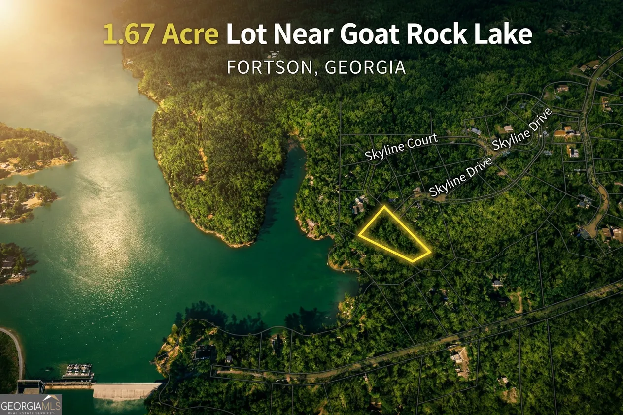 From Fortson Rd, turn onto Skyline Dr and continue straight. Property is located along Skyline Dr in the River Ridge area, near existing homes and wooded parcels.
