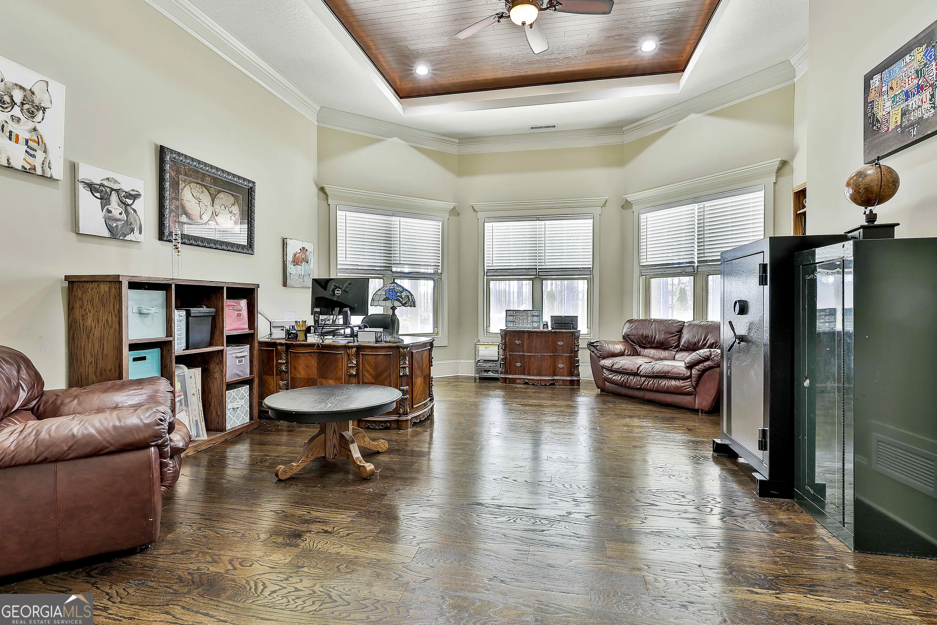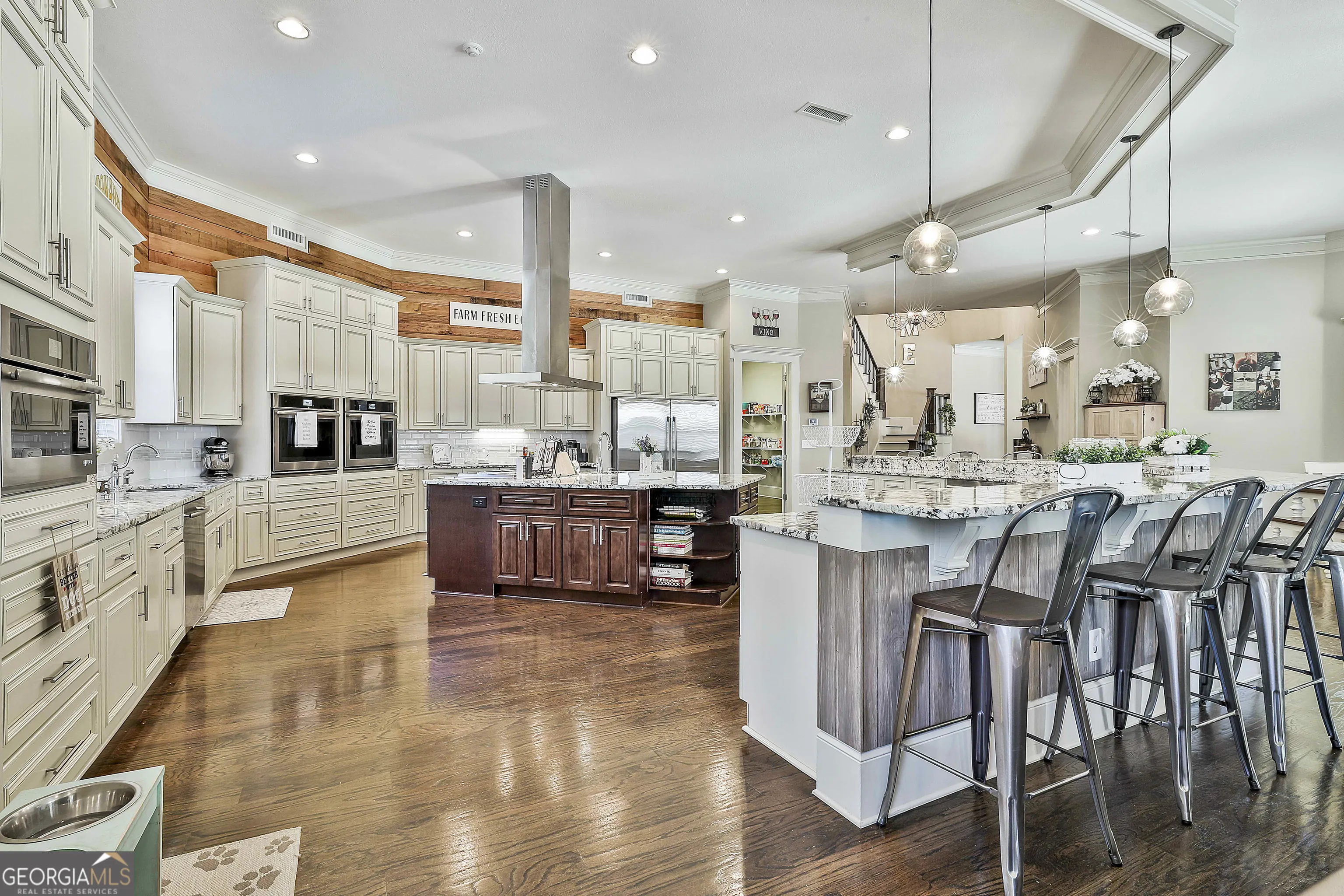 Welcome to this breathtaking 5 bedroom, 4.5 bath estate offering an impressive 7,670+/- sq ft of refined living space, perfectly situated on 33.157+/- pristine acres in highly desirable Coweta County. This remarkable property blends luxury, comfort, and privacy – ideal for entertaining, multi-generational living, or creating your own private retreat. Step inside to an open floor plan with soaring ceilings and expansive living spaces designed to impress. The chef’s kitchen is truly the heart of the home, featuring a massive kitchen island, granite countertops, multiple sinks, abundant cabinetry, and an oversized walk-in pantry – perfect for hosting gatherings large or small. The main level includes three spacious bedrooms, each offering its own private full bath and walk-in closet, providing exceptional comfort and privacy. The home features two separate living room areas, both enhanced by gas fireplaces, creating warm and inviting spaces for relaxation and entertaining. Upstairs, you’ll find two additional bedrooms and a full bath, along with a versatile loft area. An attic provides ample storage, adding even more functionality to this thoughtfully designed home. The property also boasts a 4-car garage along with a large parking pad, offering ample space for vehicles, guests, and recreational equipment. Outdoor living is just as spectacular. Enjoy the 1,530+/- sq ft pool house, complete with a kitchen and half bath, plus a dedicated theater room and a separate space currently used as a weight room, offering incredible flexibility for entertainment, fitness, or additional gathering space. The in-ground saltwater pool is complemented by an oversized back patio with a gas fireplace, providing stunning views of the rolling acreage and creating the perfect setting for year-round enjoyment. Additional features include a mansard-style barn measuring 30′ deep x 26′ wide x 18′ tall, set on a poured concrete slab. The structure also features two 12-foot-wide carports, one on each side, providing excellent covered parking or equipment storage. The building includes four windows for natural light, a roll-up garage door for large access, and a convenient side entry door with a digital keypad access for easy, secure entry. The property also benefits from two separate entrances, offering added accessibility and flexibility for vehicles, equipment, or guests. The expansive acreage offers endless possibilities – whether for recreation, privacy, or future expansion. This truly one-of-a-kind property offers the rare combination of luxury living, exceptional amenities, and unmatched acreage – an extraordinary opportunity in Coweta County.