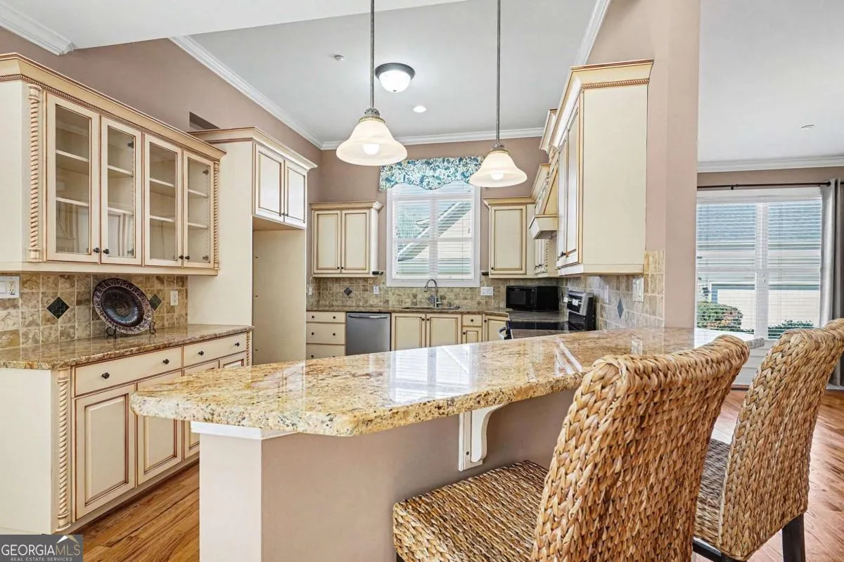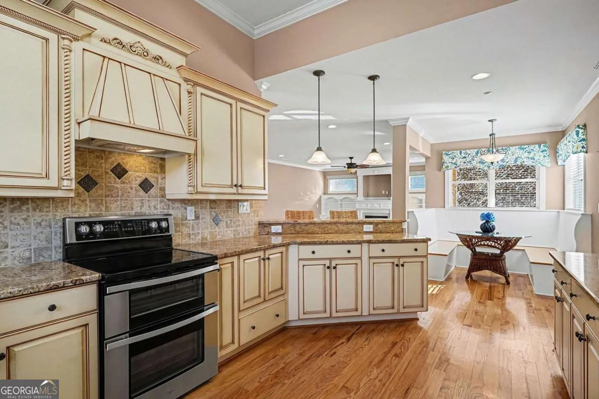 You’re going to absolutely love this home! With it’s PERFECT LOCATION adjacent to THE VILLE AMPITHEATER and within walking distance to DOWNTOWN FAYETTEVILLE and CITY CENTER PARK . An ideal layout, this beautifully crafted CUSTOM HOME is truly a must-see! From the moment you arrive, you’re welcomed by a CHARMING FRONT PORCH that sets the tone for what’s inside. Stepping in, you’ll find GORGEOUS HARDWOOD FLOORING and light-filled spaces throughout. The FORMAL DINING ROOM offers the perfect setting for entertaining, while the MASSIVE OWNER’S SUITE provides a private retreat, complete with an en suite bath featuring a separate PRIVATE WATER CLOSET. The main level also includes a SECONDARY BEDROOM and FULL BATH, along with a GINORMOUS GREAT ROOM showcasing a CUSTOM MANTLE and BUILT-IN BOOKSHELVES. The OPEN-CONCEPT DESIGN flows seamlessly into the spacious, BEAUTIFULLY UPDATED KITCHEN with a BUILT-IN BREAKFAST NOOK-ideal for everyday living. TONS OF CABINET SPACE and a HUGE PANTRY will delight any cook. CONVENIENT HALF BATH, WALK-IN LAUNDRY ROOM and 3 CAR GARAGE complete the main level. UPSTAIRS, you’ll find TWO ADDITIONAL BEDROOMS, EACH with its OWN PRIVATE EN SUITE FULL BATH, offering comfort and privacy for family or guests. Relax outside in the FENCED- IN BACKYARD on the COVERED PORCH and BEAUTIFULLY STAINED DECK with optional Roll Out Awning for additional shade, perfect for unwinding your day or entertaining! Located in a neighborhood with SIDEWALKS and a NEIGHBORHOOD SWIMMING POOL, PLAYGROUND and PICKLE BALL COURTS – what are you waiting for? Make your appointment today!