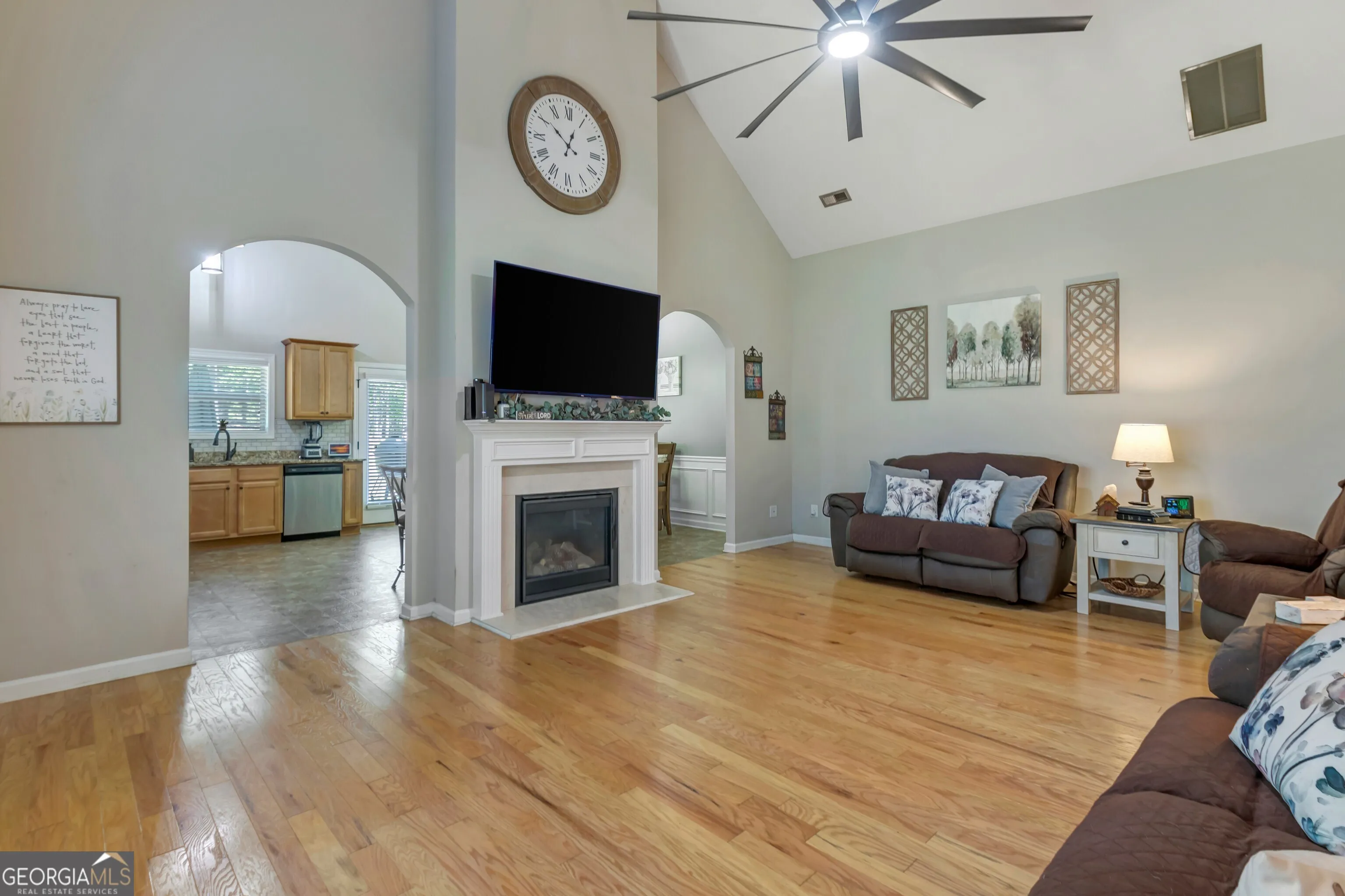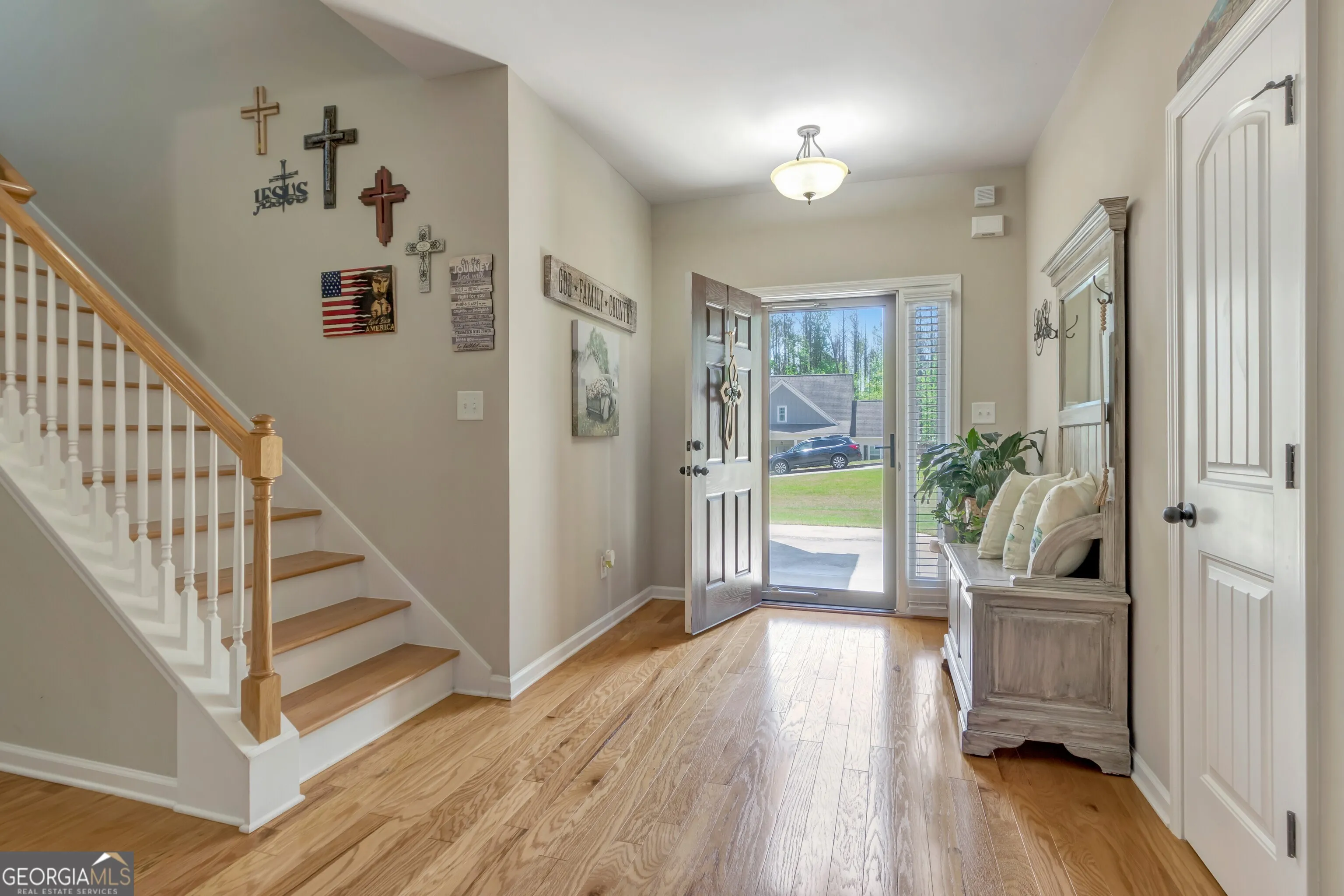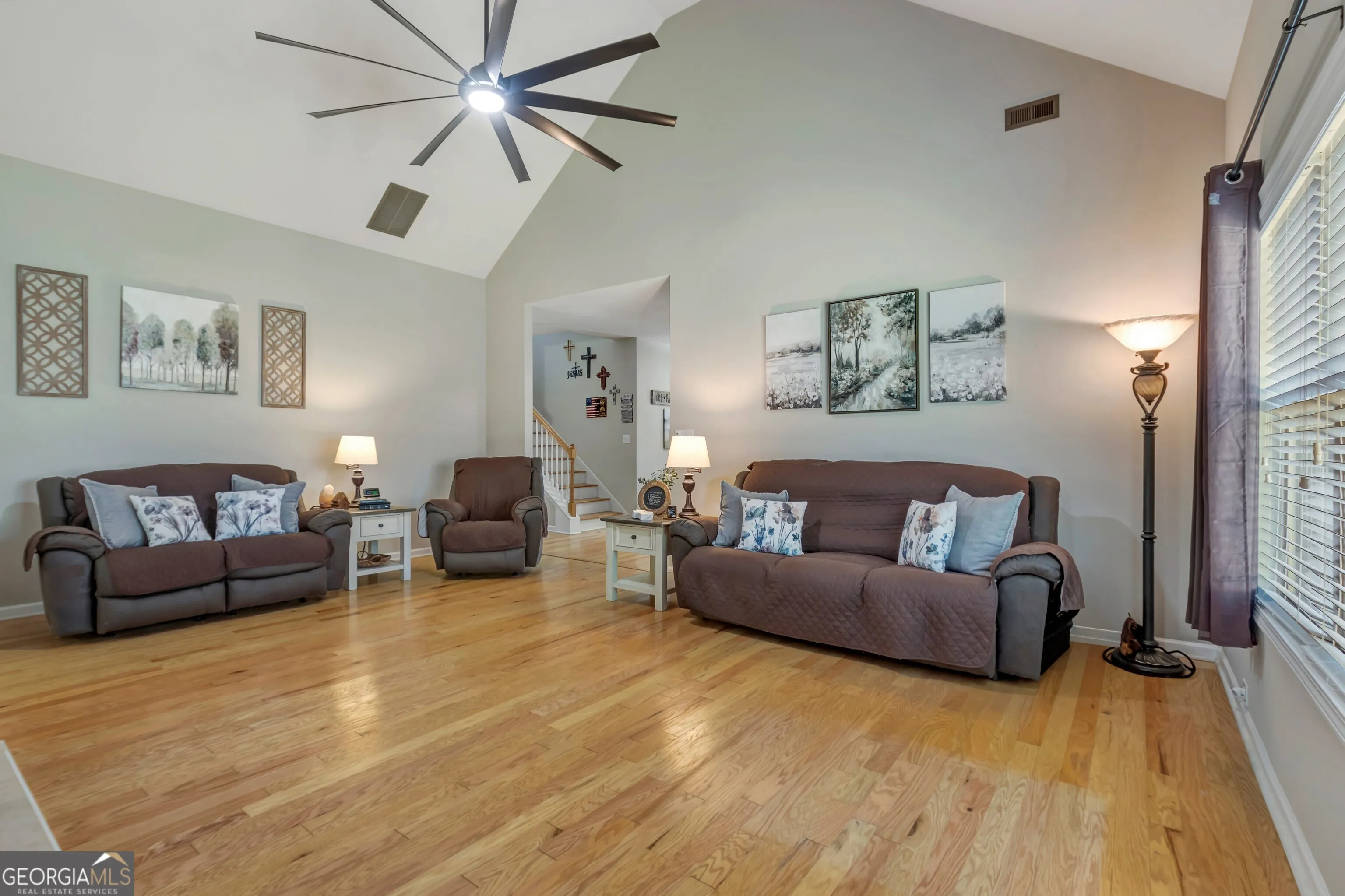 Beautifully maintained Craftsman-style ranch situated on a spacious 1.814-acre lot in the desirable Midlands community- no HOA and a welcoming neighborhood! This thoughtfully designed, nearly 2,800 sf, 4-bedroom, 3-bath home features an ideal in-law/roommate floor plan. The main level offers convenient living with a private Primary EnSuite and two generously sized secondary bedrooms. The primary retreat includes a large bath with double vanities, separate shower, and walk-in closet. Upstairs, you’ll find a private 4th bedroom with its own full bath and oversized walk-in closet-perfect for man cave, game room, guests, teens, or extended family! The vaulted family room with fireplace creates an inviting gathering space, while arched openings lead into a spacious kitchen featuring granite countertops and stainless steel appliances and Dining Space. Interior finishes include hardwood floors, tile, and updated lighting/ceiling fans. Additional features include: Large mudroom/laundry room, 2-car garage. Custom 12×12 Harley garage/tool or toy shed with garage door opener, Newer attic insulation for improved efficiency, New front glass storm door, Fresh exterior paint and select interior rooms recently painted, All major systems kept maintained in good working condition for CARE FREE ownership! Enjoy your own backyard retreat with a newer oversized metal gazebo, complete with two ceiling fans, lighting, and TV included-perfect for entertaining or relaxing outdoors! The clean landscaping, highlighted by a decorative cement border surrounding the home, enhances the home’s curb appeal to welcome friends and family in! Conveniently located just 7 minutes to I-85 or Historic Downtown Newnan, offering local restaurants, parks, boutiques, coffee shops, a brewery, and more!
