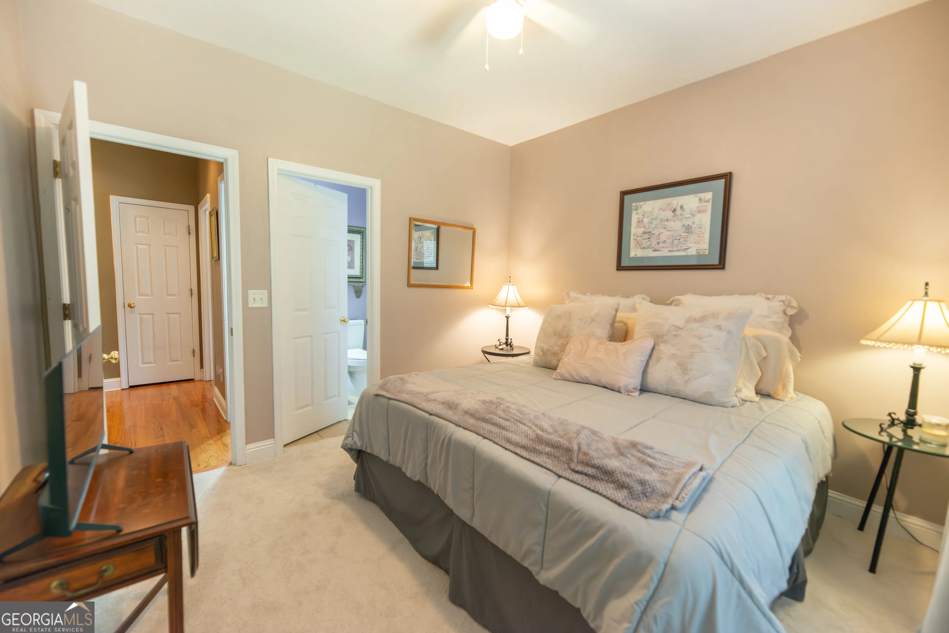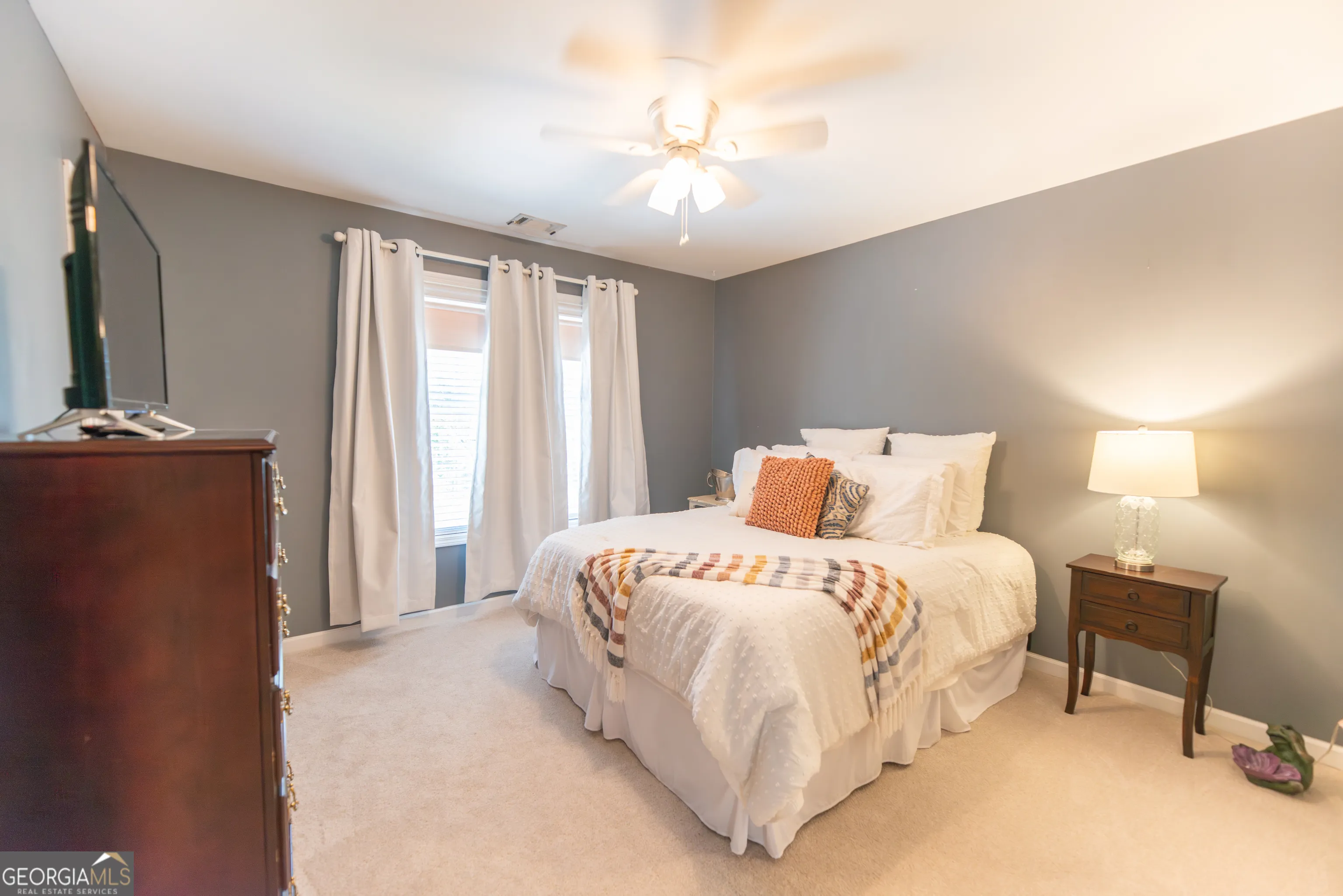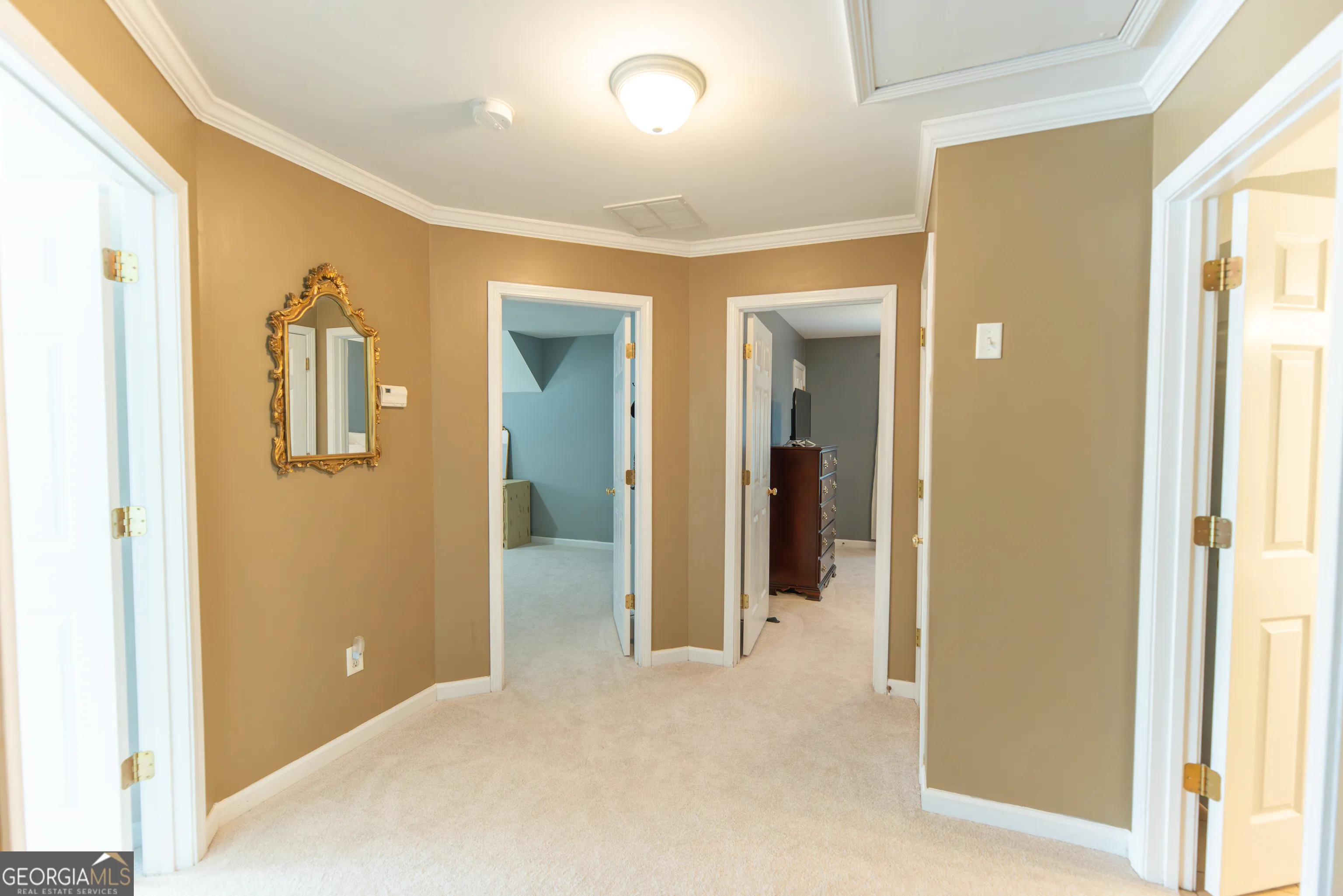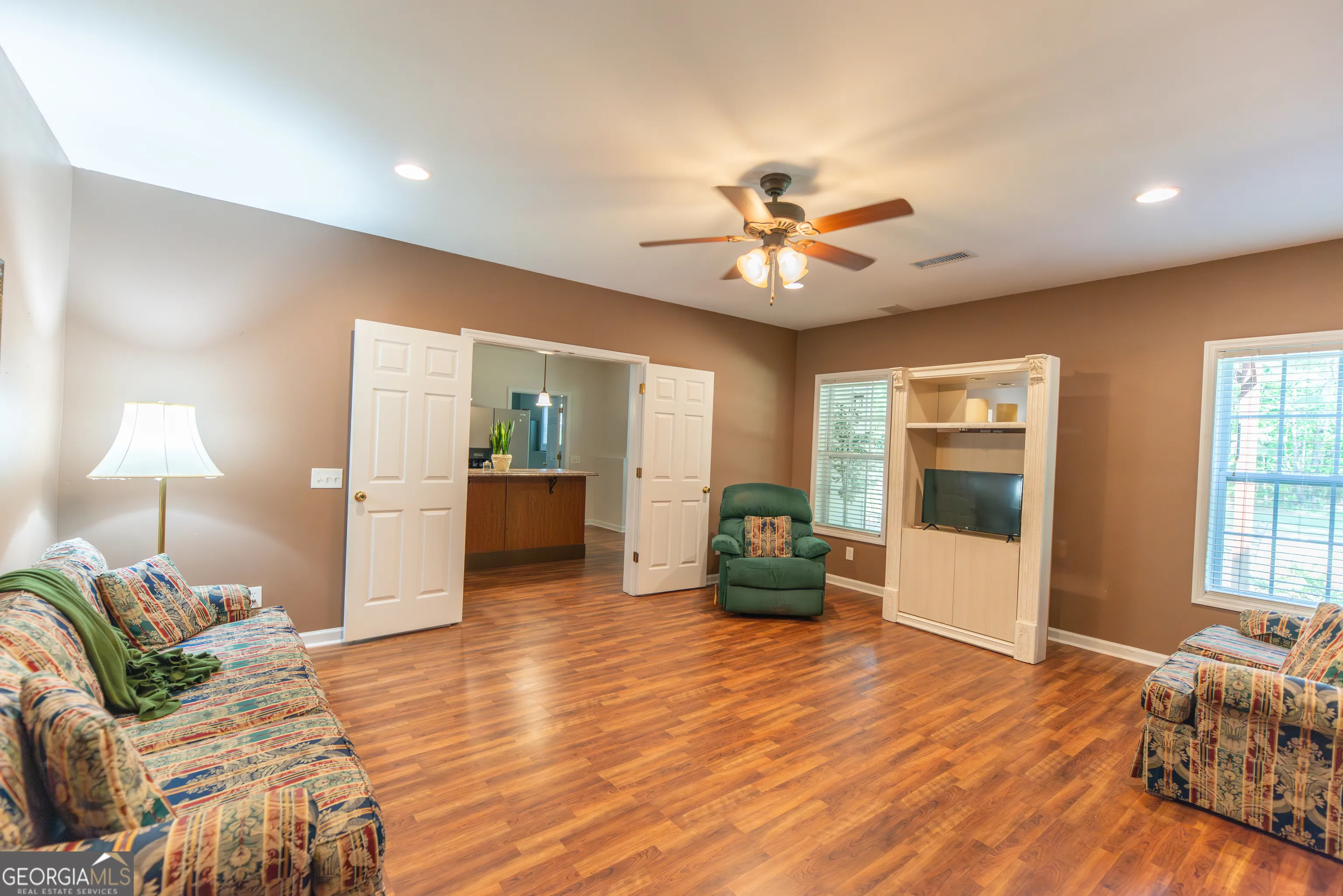This beautiful custom-built home has everything today’s buyers are looking for. Located in the highly desirable Starr’s Mill School District, this meticulously maintained property is being offered by the original owners and sits on a 1.5-acre lot in the sought-after Millpond Manor community. NEW ROOF COMING APRIL 2026! As the final home built in the neighborhood, the builder spared no expense, creating a thoughtfully designed residence offering 4,350 square feet of living space, four bedrooms, four full bathrooms, and numerous flex spaces that could easily serve as guest rooms, home offices, or hobby areas. Upon entering, you are welcomed by a stunning formal dining room featuring classic wainscoting and crown molding. Just beyond the entry is the impressive great room with soaring cathedral ceilings and a beautiful fireplace, which opens seamlessly to the kitchen and breakfast area – perfect for both everyday living and entertaining. The chef’s kitchen features custom cabinetry, granite countertops, and ample workspace. Beautiful hardwood floors, still in excellent condition, run throughout much of the main level. The primary suite is conveniently located on the main floor and includes a spacious sitting area and a luxurious ensuite bath with a jetted tub, separate shower, private water closet, dual vanities, and generous his-and-hers closets. Also on the main level is a flex room connected to a full bathroom, ideal for guests, a home office, or additional living space. A large laundry room with a sink and window adds both convenience and natural light. From the main living area, step outside onto the back deck overlooking the spacious backyard, providing the perfect place to relax or entertain. Upstairs, you will find three well-sized guest bedrooms, including one oversized bedroom. Two bedrooms feature walk-in closets, including one very large walk-in. The upstairs bathroom offers a double vanity with a private shower and toilet area. The finished terrace level adds incredible versatility with a full kitchen, dining area, living space, additional flex rooms that could be used as offices or bedrooms, and a full bathroom. This level is also handicap accessible, featuring wider doorways for wheelchair accessibility. From the terrace level, you can walk directly out to a covered patio area, creating another outdoor living space. The expansive 1.5-acre lot offers plenty of room to add a pool and enjoy the privacy of this beautifully maintained property. Residents of Millpond Manor enjoy neighborhood amenities including swimming, tennis, basketball courts, a pavilion, and direct access to Peachtree City’s renowned golf cart path system. This is a rare opportunity to own a beautifully maintained custom home with space, flexibility, and an exceptional location in one of Peachtree City’s most desirable communities.