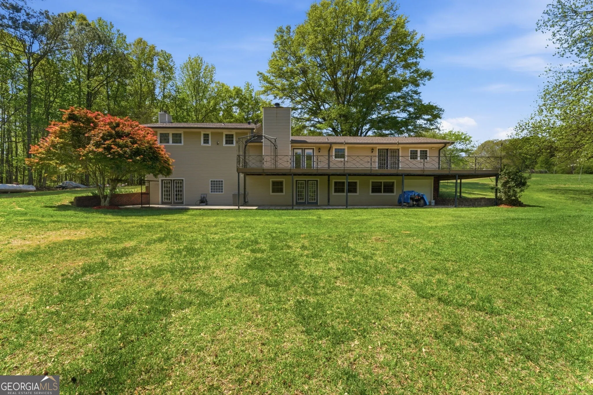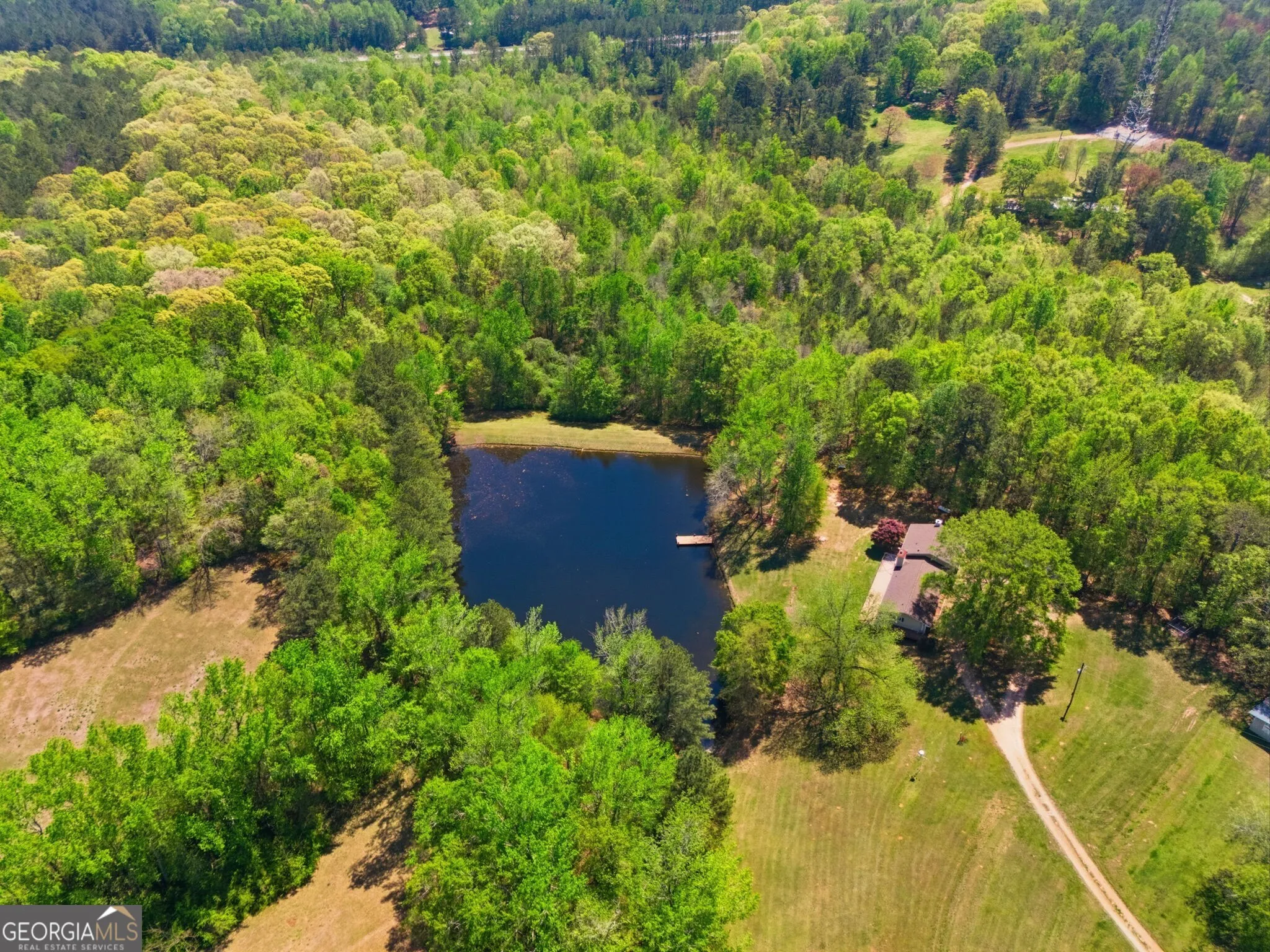 Charming Lakefront Retreat on 9.5 Acres – Private, Peaceful, and Move-In Ready! Experience serene country living on this stunning 9.5-acre property featuring a fully stocked lake with brim, bass, and catfish, and breathtaking water views from an expansive wraparound deck. Whether you’re seeking quiet relaxation or the perfect space to entertain, this home delivers both beautifully. Step inside to a light-filled, open floor plan with brand-new flooring throughout. The spacious kitchen is designed for gathering, offering a new oven, center island, oversized breakfast area, enormous laundry room, and a separate pantry. The fireside family room is warm and inviting, complete with a butler’s pantry/wet bar and seamless access to the deck ideal for indoor-outdoor entertaining. The luxurious owner’s retreat is a true sanctuary, featuring its own fireplace, a large ensuite bath with separate tub and shower, double vanities, and generous his-and-her closets. Upstairs, you’ll find three additional bedrooms, two full bathrooms, and ample closet space for family or guests. The terrace-level basement offers incredible versatility with a massive living area, home office, gym space, additional flex rooms, and abundant storage. Step outside to an oversized covered patio and uncovered patio that opens to the backyard and peaceful lake setting. The patio runs the width of the house! that opens to the backyard and peaceful lake setting. Outdoors, enjoy a large barn perfect for equipment or hobby storage, a charming garden area ready for flowers or vegetables, and a swing to take in the tranquil surroundings. This home is not only beautiful but exceptionally well-built, featuring reinforced construction with poured concrete walls, extensive rebar support, J-bolt anchoring, and durable exterior framing. The lake is thoughtfully maintained with a siphoning system that regulates water levels and protects the property. With new windows installed throughout most of the home in 2018 and a location just minutes from schools, shopping, dining, and major retail, this property offers the perfect blend of privacy and convenience. A rare opportunity to own a one-of-a-kind lakefront retreat! Don’t miss it! No AI here…just true photos of this amazing property! All public records reflect only 1.5 acres, but this is a full 9.5 acre property. Seller has the deed to prove.