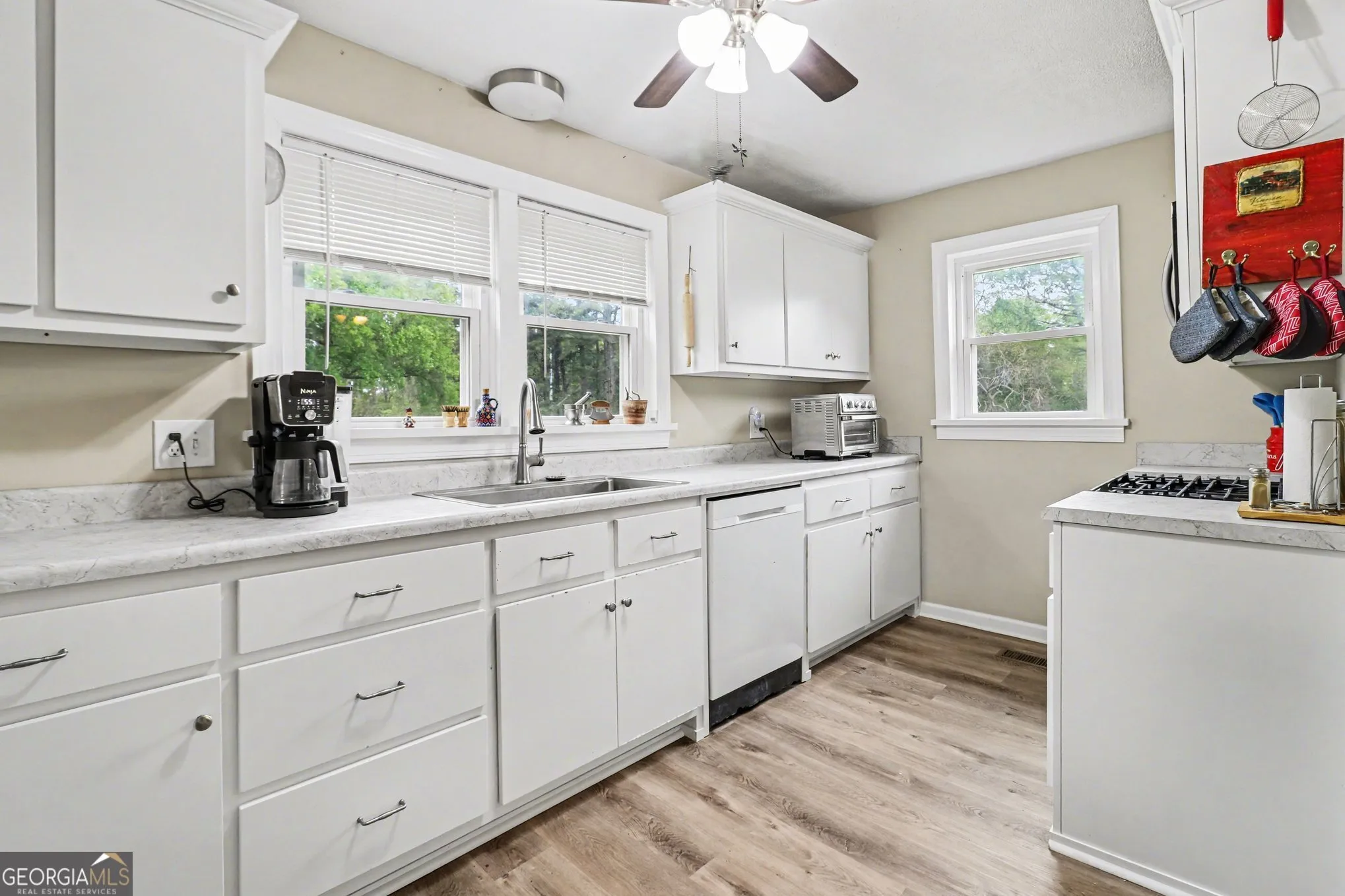AMAZING Opportunity right outside the Hogansville City Limits! SPACIOUS, 1800sq ft Ranch home on a beautiful, sprawling 2.193 Acres! This is a 3 bedroom, 2 bathroom home with a bonus room that could be used as a 4th bedroom or a hobby room/office area. There is new LVP flooring, one of the bedrooms has the original hardwoods flooring. Nice sized kitchen with stainless steel appliances (which ALL remain), a window that overlooks the beautiful backyard and there is a dining area. The second full bathroom has been fully remodeled. This home also has an oversized utility room which makes a fabulous laundry room and you could add some shelves for even more storage! There is Newer Wiring, Newer Windows, Newer Breaker Box, 2 year old Back deck, and the HVAC is a 3 ton 14 SEER Rhem installed in 2021 (All of those items were done by a previous owner). Overall this home has an INCREDIBLE amount of storage, large/deep closets everywhere you look! When you step outside you will fall in love with this gorgeous lot! So much potential for playing, entertaining or just sitting on the back deck watching the sunset. The plastic storage on the back side of the home is easily moveable anywhere you want. Great Location… Home is close to town, shopping, Interstate 85 and approximately 45 minutes to the Atlanta Airport! And GREAT Hogansville Schools… Hogansville Elementary, Callaway Middle and High School! NO HOA, USDA-eligible location, and a spacious ranch set on beautiful land-what more could you ask for? Schedule your showing today!
