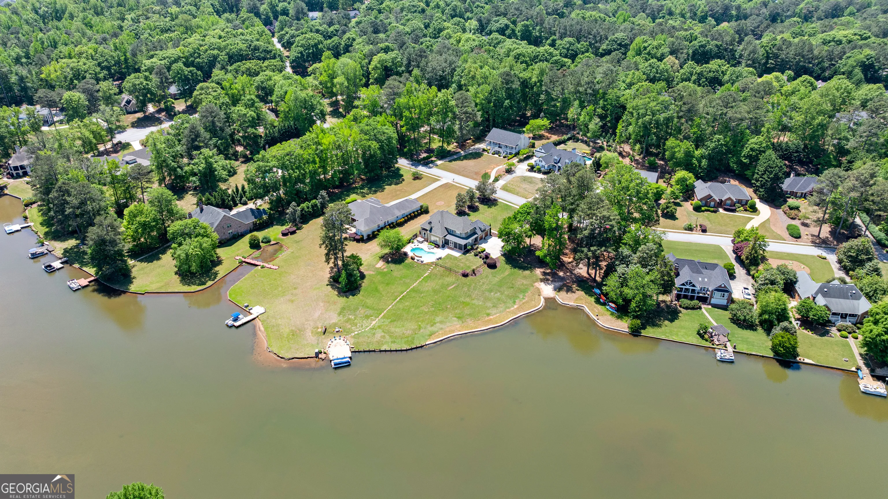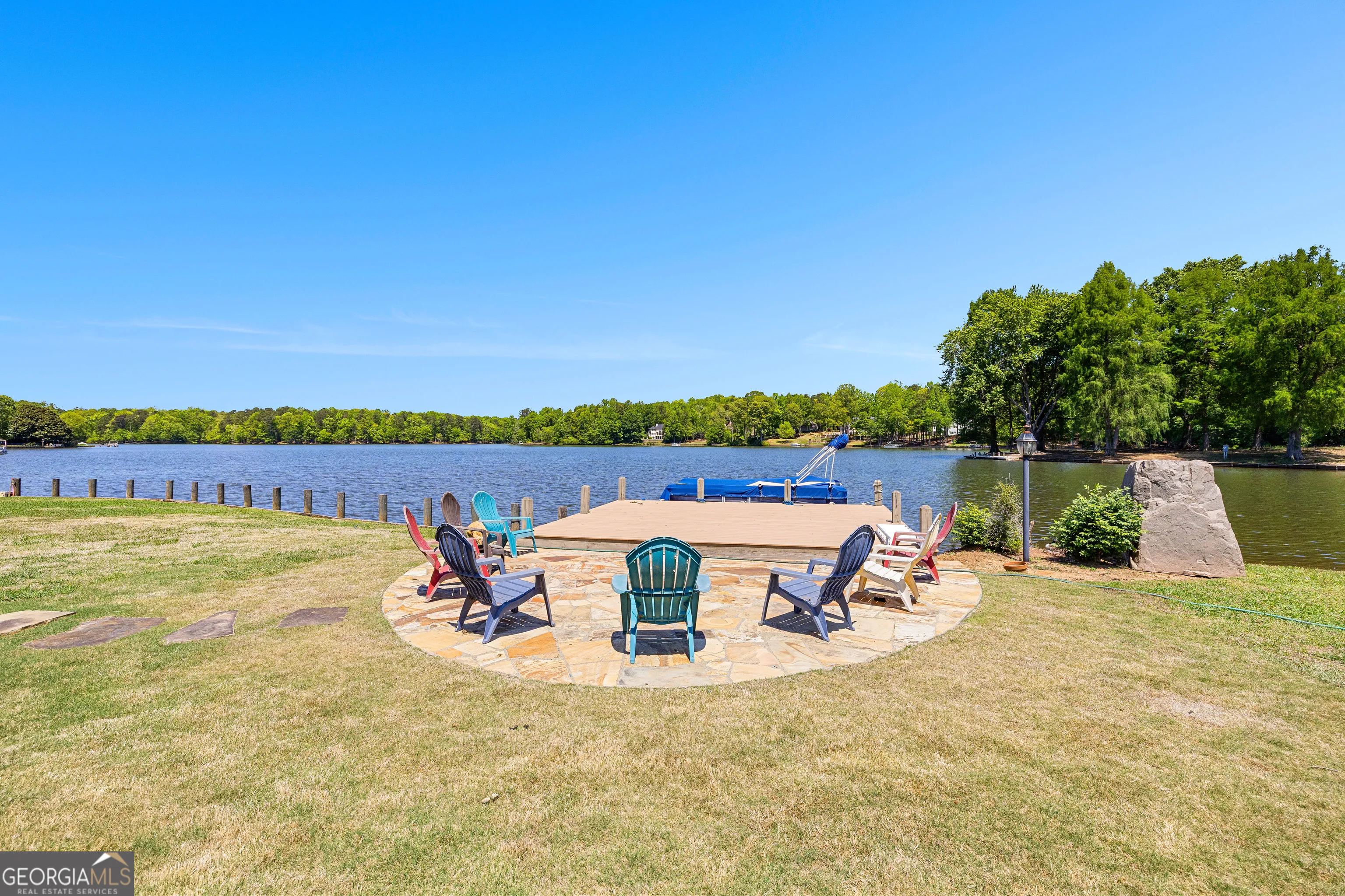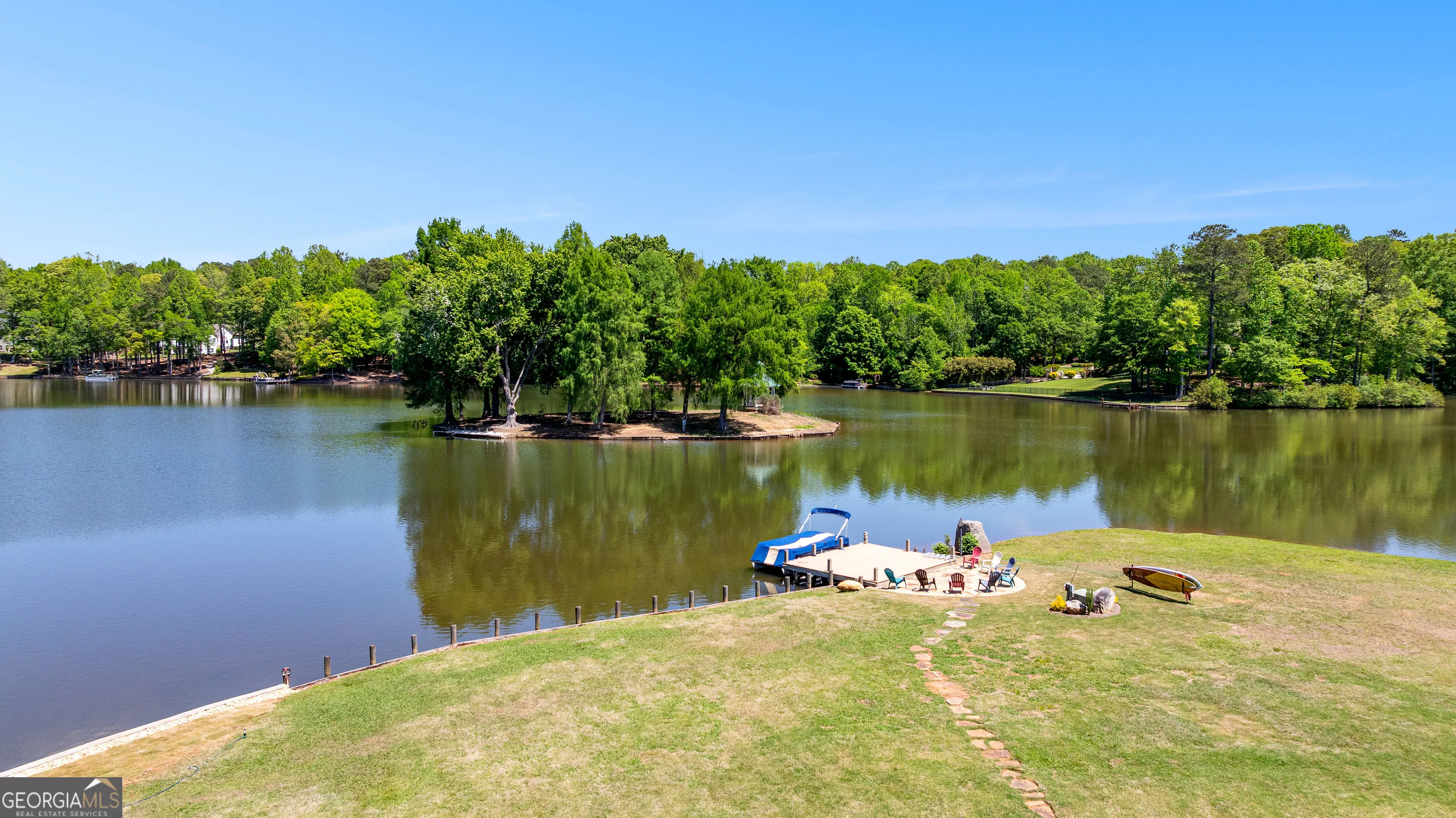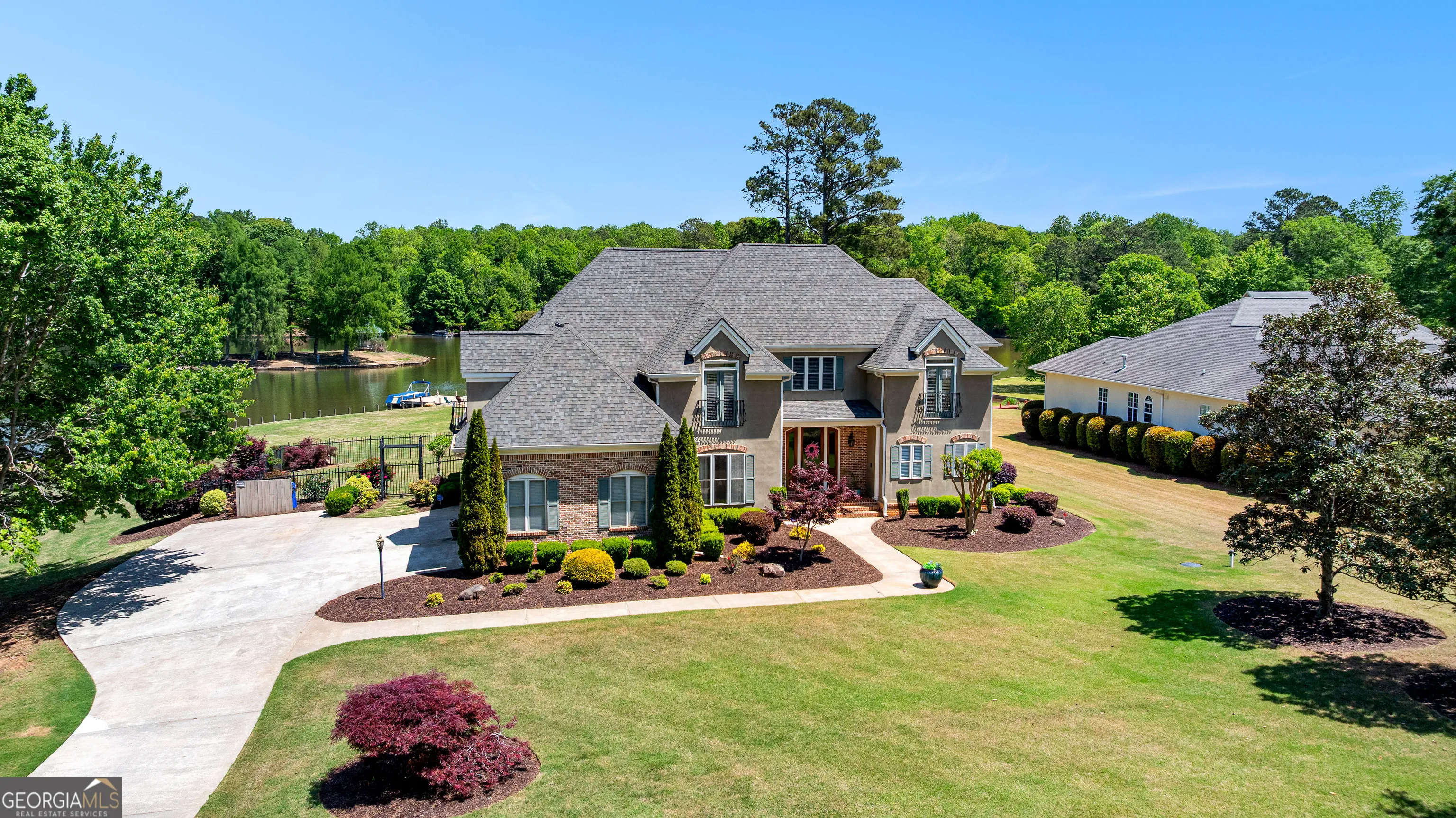 Showstopping lakefront home in highly sought-after Lake Redwine. Fully renovated with top-of-the-line finishes and perfectly positioned on an incredibly rare, flat 1.3-acre lot with direct lake access-this property is as functional as it is stunning. Offering over 3,900 square feet, this home is packed with luxury features: 4 bedrooms, 3.5 baths, a screened porch, swimming pool, hot tub, lakeside patio, and private dock-all set against a breathtaking waterfront backdrop. Inside, a grand foyer (spacious enough for a piano) welcomes you, flanked by custom library shelving. The living room impresses with floor-to-ceiling windows overlooking the lake, a dramatic arched fireplace, and a hidden media closet. The spacious dining room flows seamlessly into a fully updated chef’s kitchen designed for both entertaining and everyday living. The mudroom goes far beyond expectations-featuring floor-to-ceiling pantry cabinetry, a built-in command center desk, secondary sink, and laundry. The oversized primary suite is a retreat of its own with custom trim and a sitting area, but the true showpiece is the spa-like bath: a walk-in shower with multiple sprayers, freestanding tub, dual vanities, makeup station, custom cabinetry, designer lighting, and an expansive custom closet. Upstairs, you’ll find three additional bedrooms, two full baths, a loft, a bonus room, and two charming Juliet balconies that bring the outdoors in. Outside is where this property truly shines-flat terrain with minimal steps, a massive yard, mature trees, flagstone pathways, lakeside patio, pool, hot tub, and private dock. And a rare bonus: no neighbor to the left, offering added privacy and space.