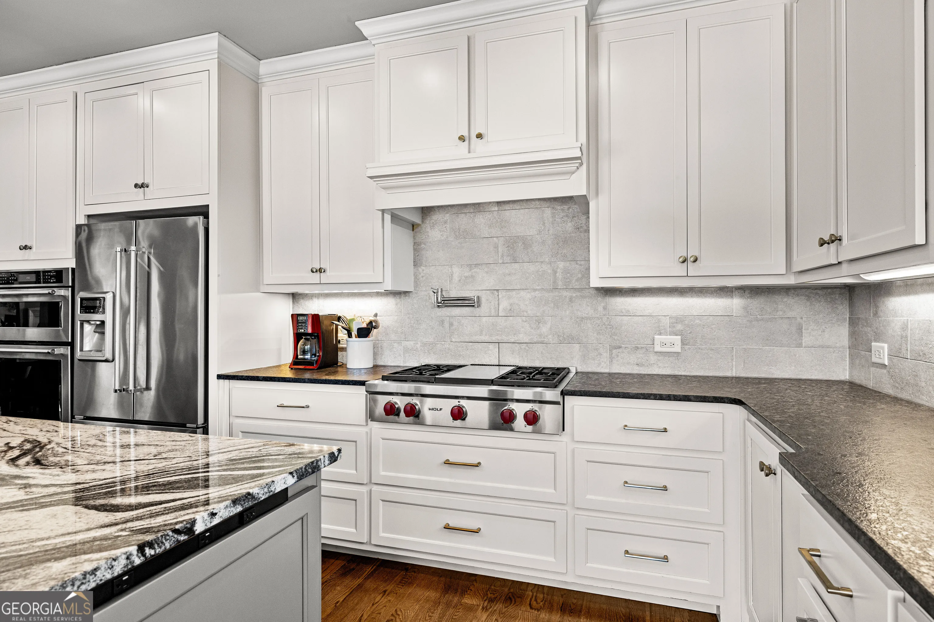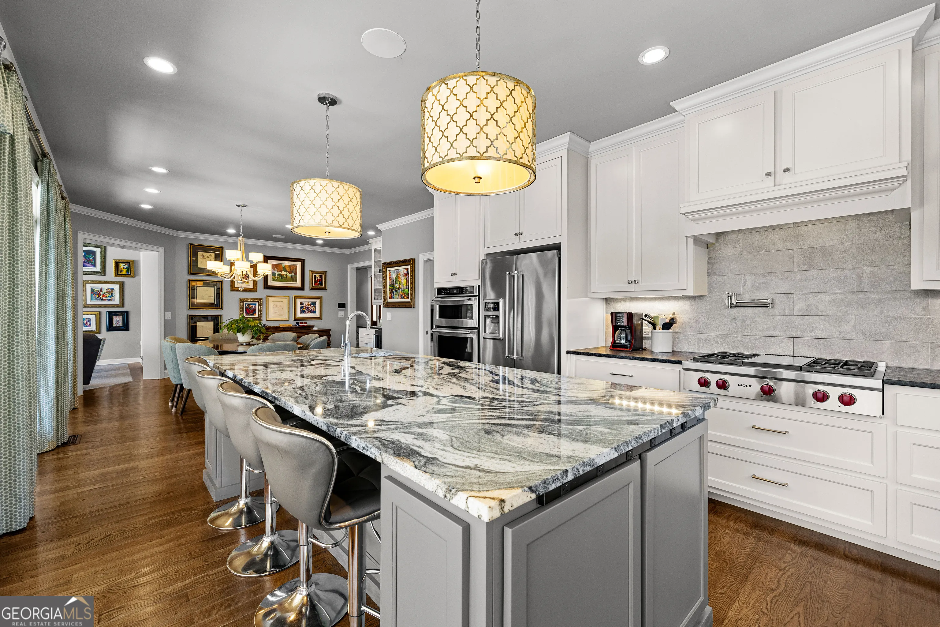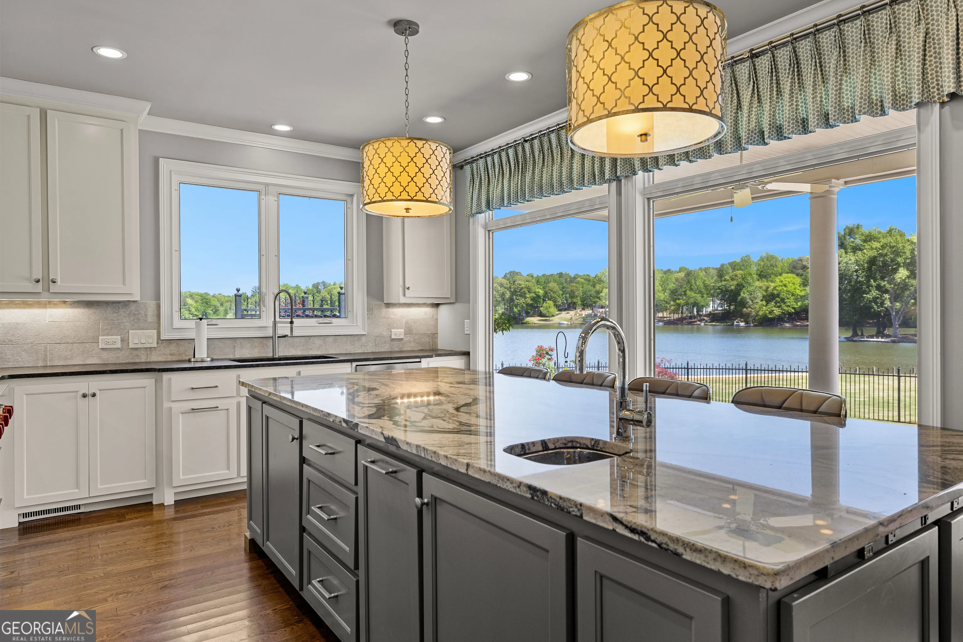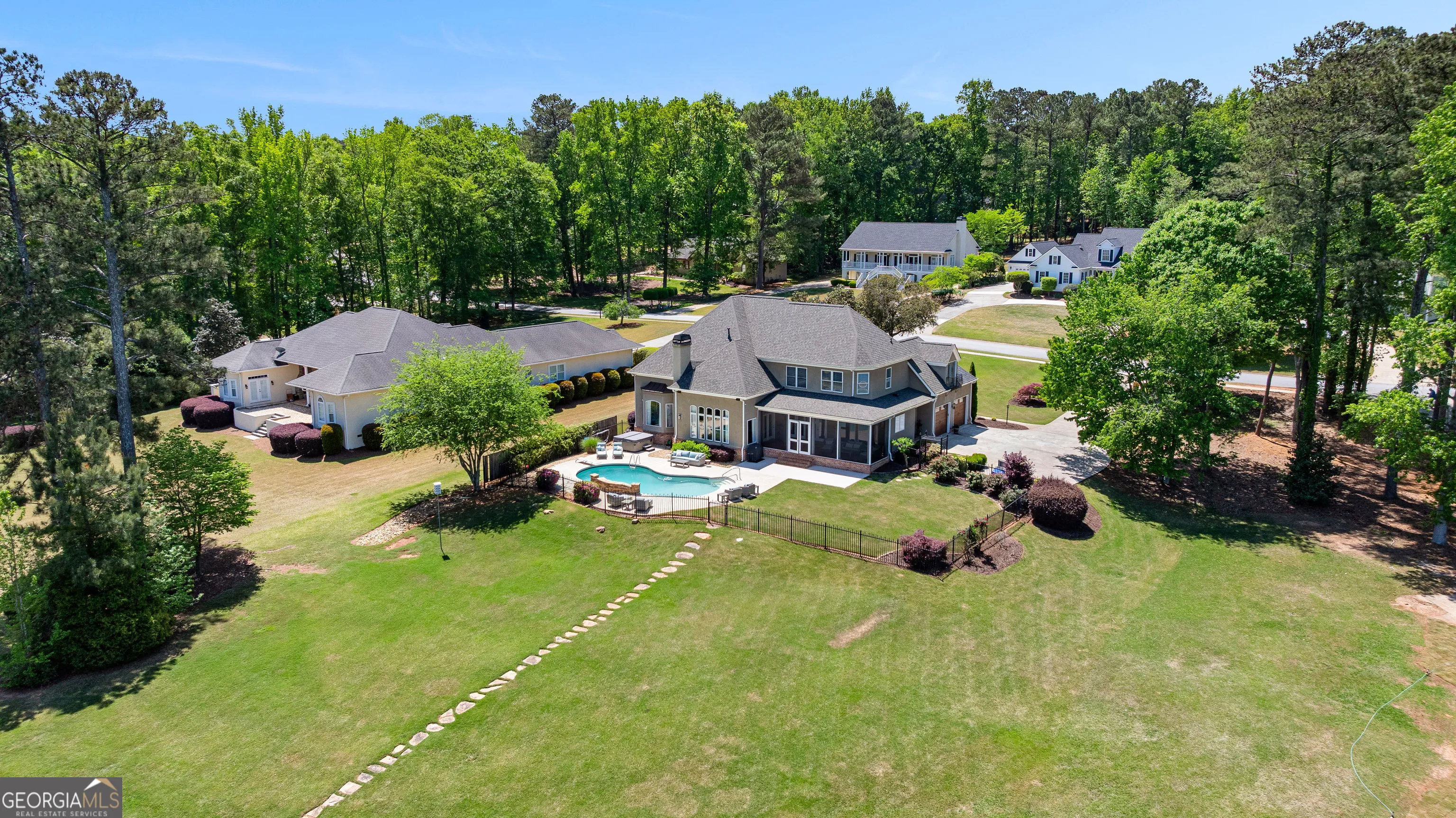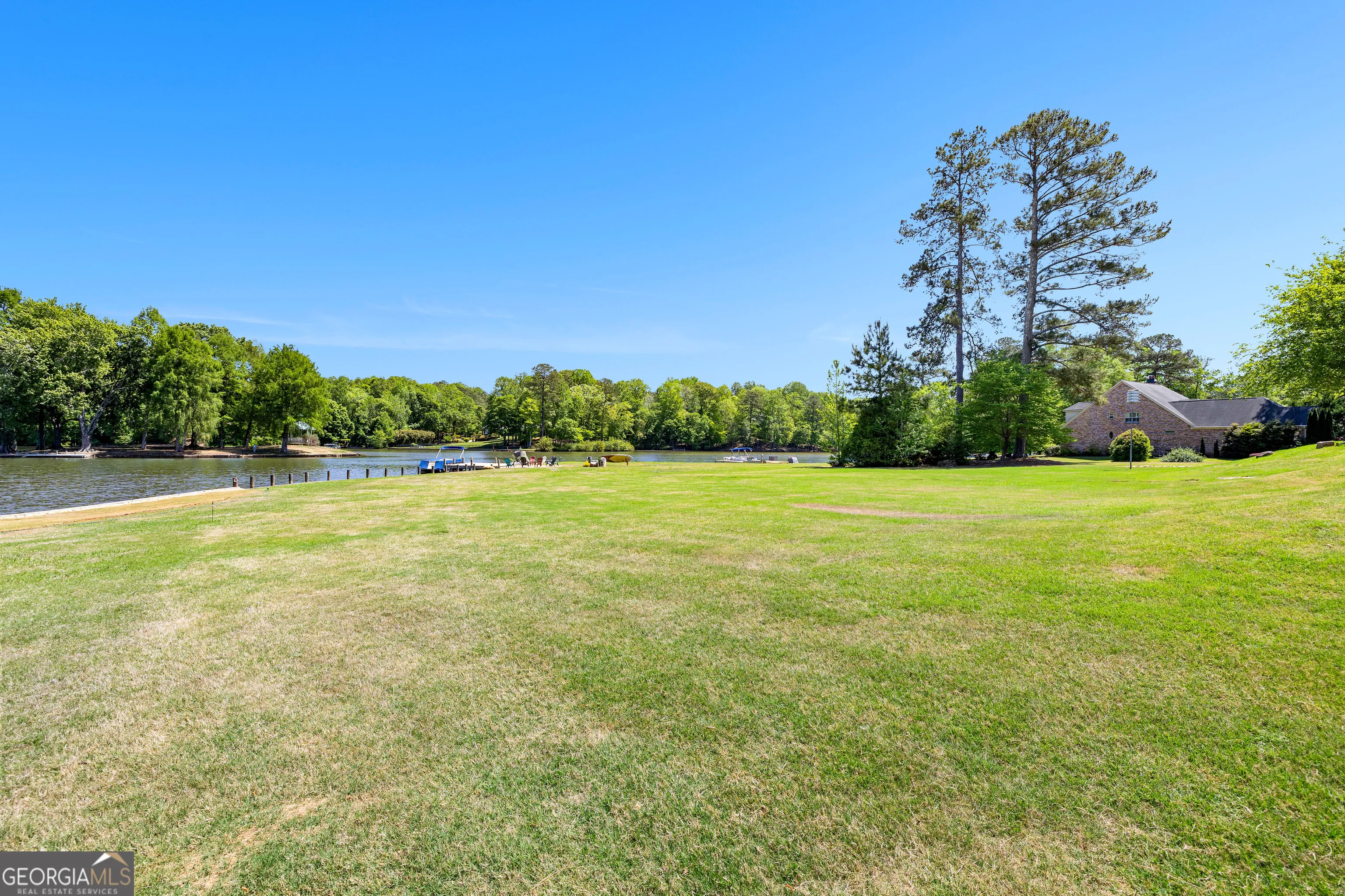 Showstopping lakefront home in highly sought-after Lake Redwine. Fully renovated with top-of-the-line finishes and perfectly positioned on an incredibly rare, flat 1.3-acre lot with direct lake access-this property is as functional as it is stunning. Offering over 3,900 square feet, this home is packed with luxury features: 4 bedrooms, 3.5 baths, a screened porch, swimming pool, hot tub, lakeside patio, and private dock-all set against a breathtaking waterfront backdrop. Inside, a grand foyer (spacious enough for a piano) welcomes you, flanked by custom library shelving. The living room impresses with floor-to-ceiling windows overlooking the lake, a dramatic arched fireplace, and a hidden media closet. The spacious dining room flows seamlessly into a fully updated chef’s kitchen designed for both entertaining and everyday living. The mudroom goes far beyond expectations-featuring floor-to-ceiling pantry cabinetry, a built-in command center desk, secondary sink, and laundry. The oversized primary suite is a retreat of its own with custom trim and a sitting area, but the true showpiece is the spa-like bath: a walk-in shower with multiple sprayers, freestanding tub, dual vanities, makeup station, custom cabinetry, designer lighting, and an expansive custom closet. Upstairs, you’ll find three additional bedrooms, two full baths, a loft, a bonus room, and two charming Juliet balconies that bring the outdoors in. Outside is where this property truly shines-flat terrain with minimal steps, a massive yard, mature trees, flagstone pathways, lakeside patio, pool, hot tub, and private dock. And a rare bonus: no neighbor to the left, offering added privacy and space.