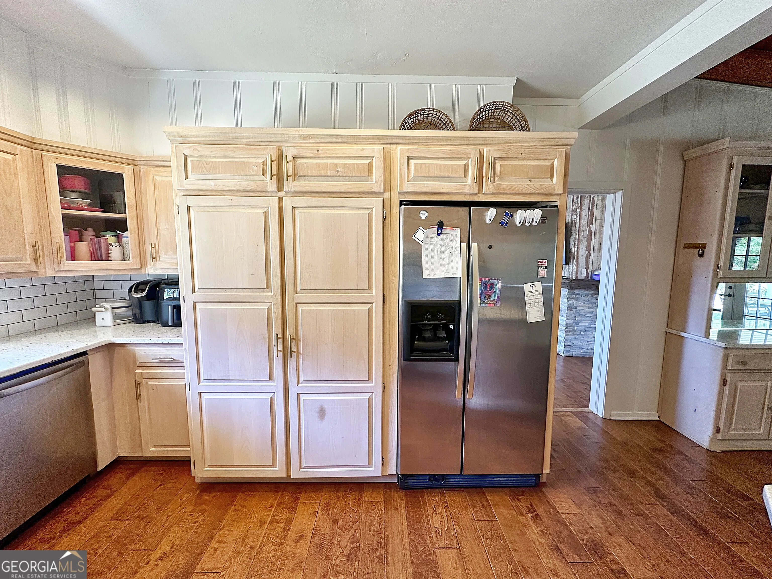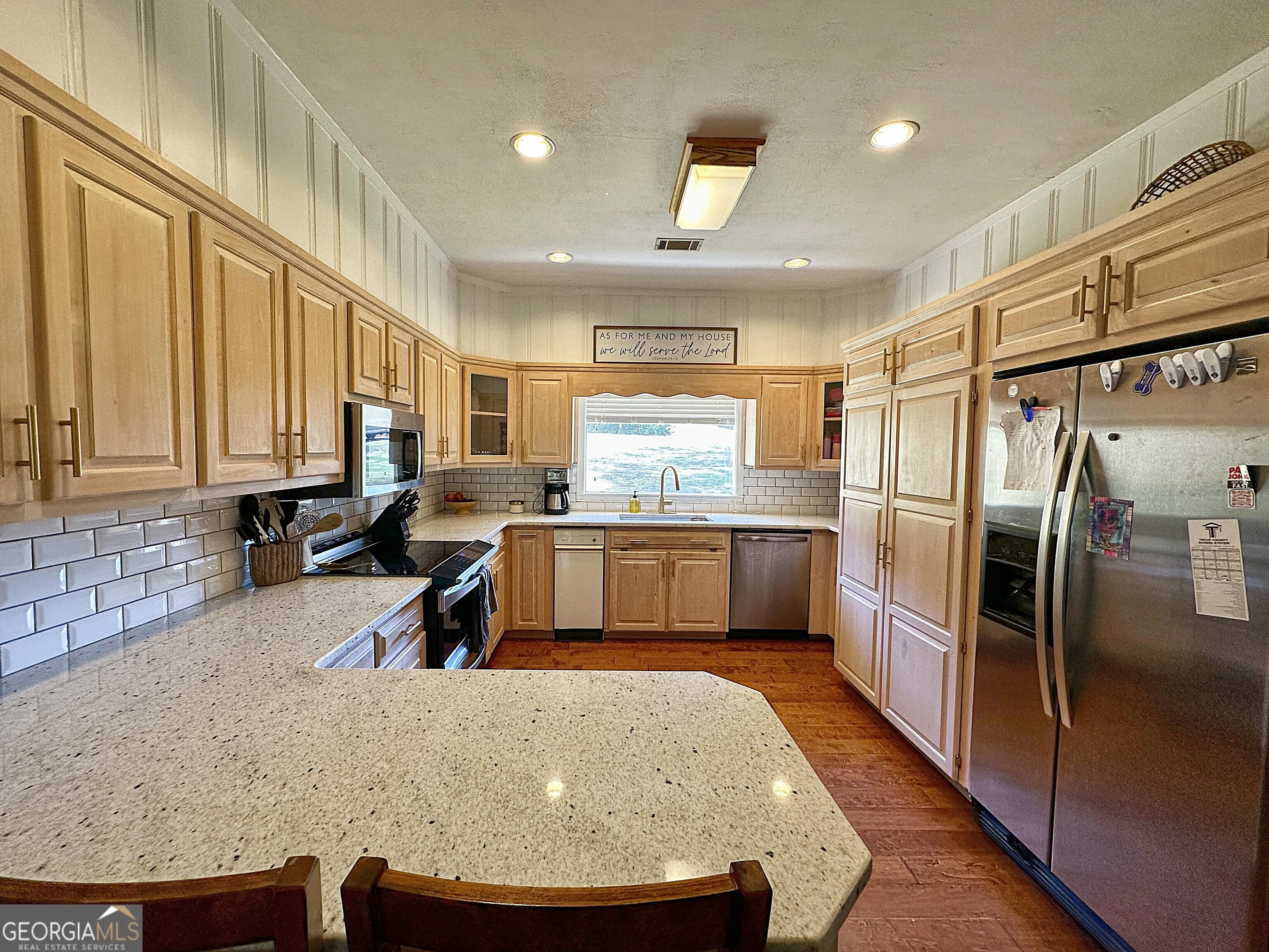 Back on the market at no fault of the Seller. Showings to begin Tuesday, April 21st. Charming In-Town Living in Sought-After Hollis Hand School District! Welcome to 450 Gordon Circle, where charm, character, and convenience come together in one beautifully maintained home. Nestled in a prime in-town location, this 3 bedroom, 2 bath property offers both comfort and versatility for today’s lifestyle. Step inside and you’ll immediately notice the engineered hardwood flooring throughout and the warm, inviting feel of the home. The den is a true showstopper, featuring coffered ceilings and a cozy gas fireplace-perfect for relaxing or entertaining guests. The dining area is full of character with exposed wood beams and custom built-ins, creating a space that feels both functional and unique. The updated kitchen is equipped with granite countertops, double oven and a built-in pantry with sliding drawers, offering both style and smart storage. The spacious master suite includes a beautifully tiled bathroom and an oversized walk-in closet you’ll love. Need extra space? The large family room, currently being used as a 4th bedroom, provides incredible flexibility for a growing family, home office, or bonus space. Step outside to your covered back porch featuring a working fireplace, overlooking a fully fenced backyard-perfect for entertaining, relaxing, or enjoying game days with friends and family. Located in the highly desirable Hollis Hand School District, this home combines location, charm, and functionality-a rare find in today’s market.